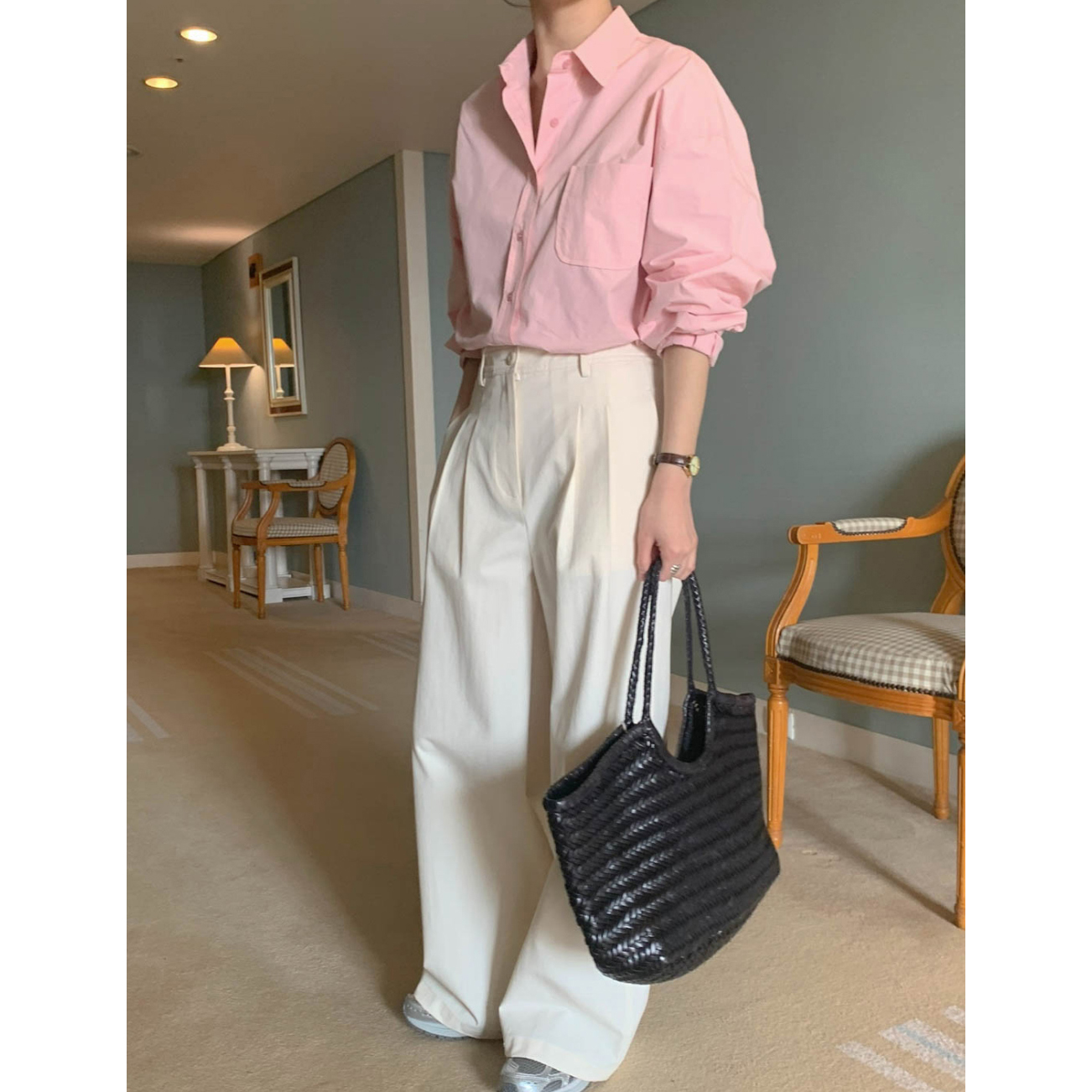 옅은색상의 명품 가방이나