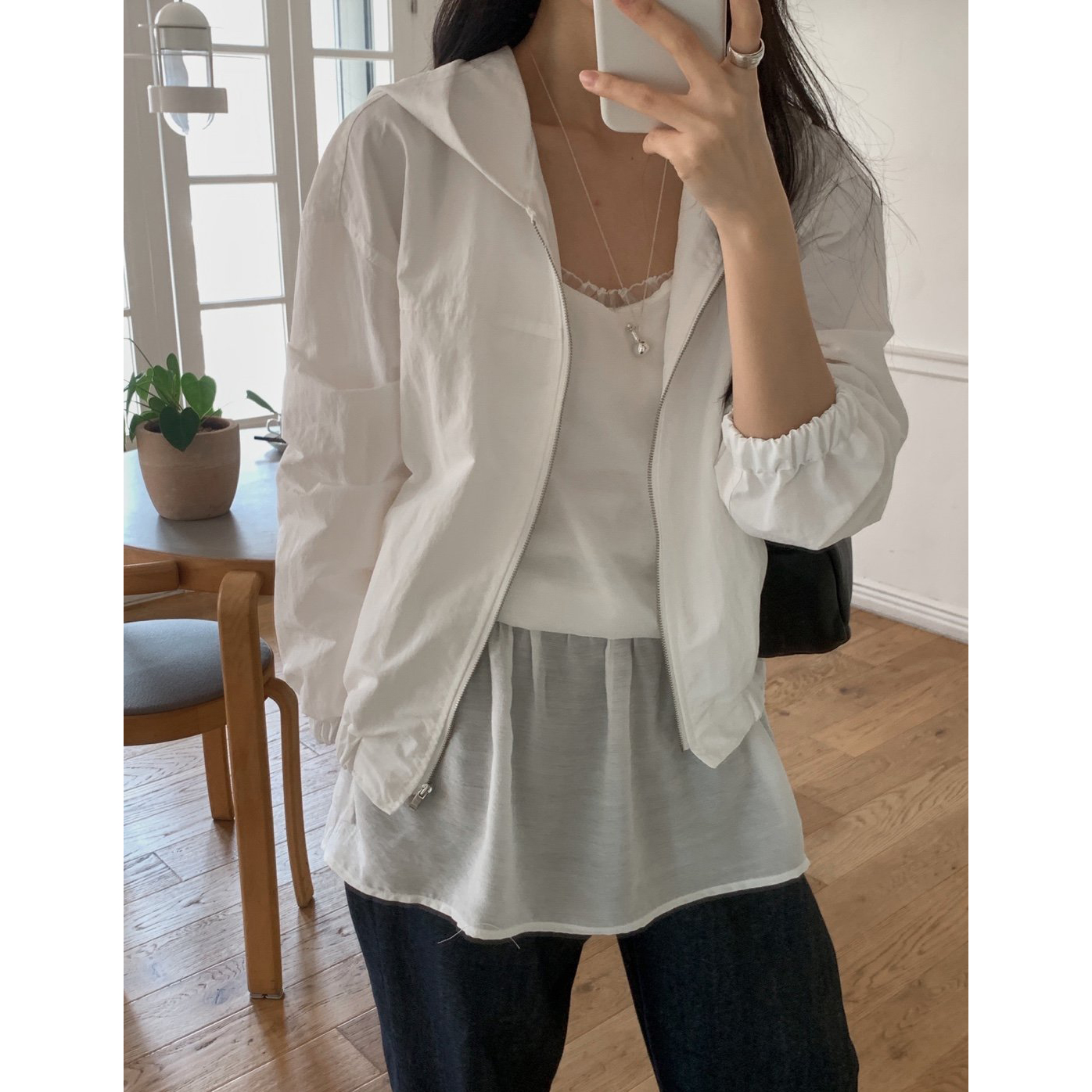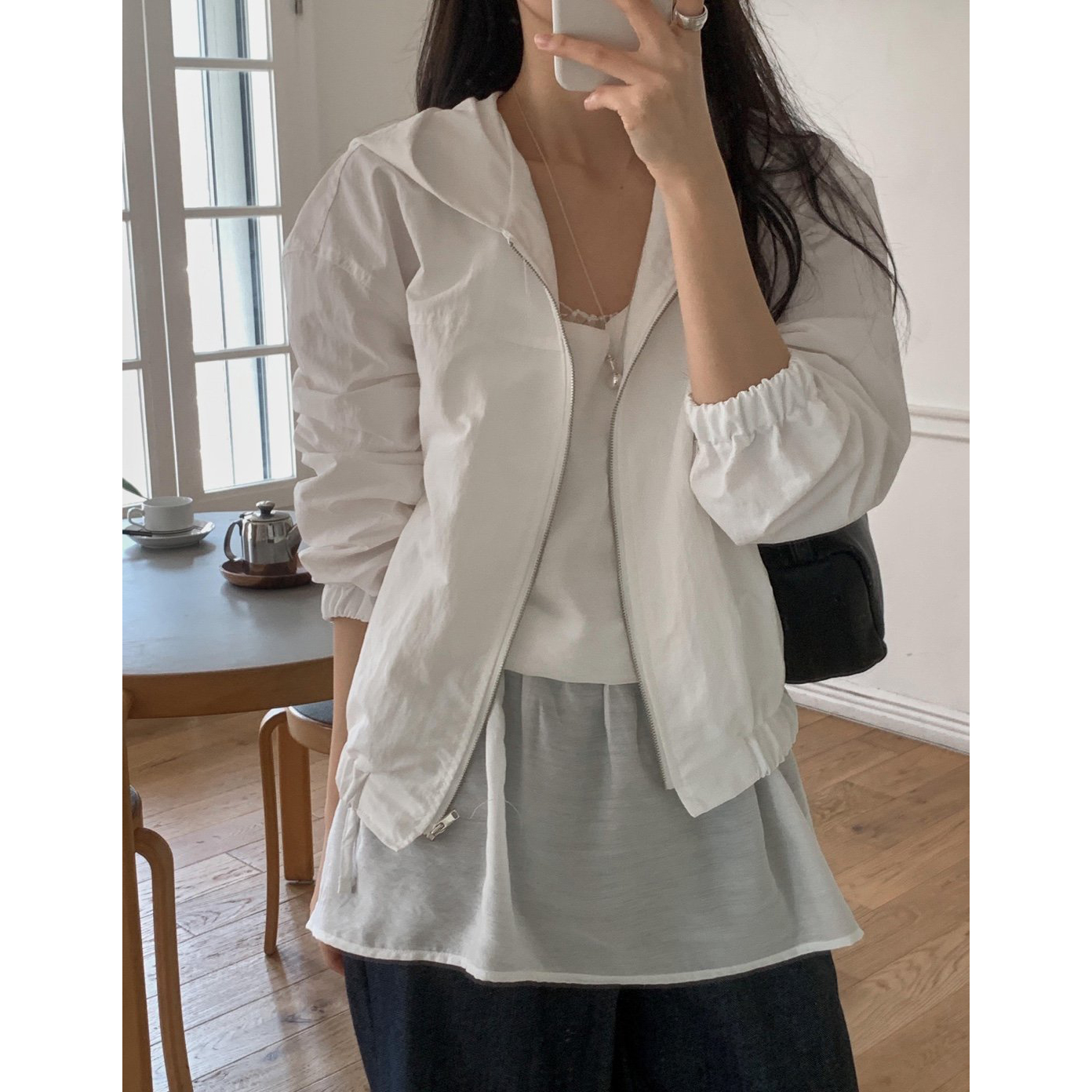 미래 후드 아노락 바람막이 점퍼