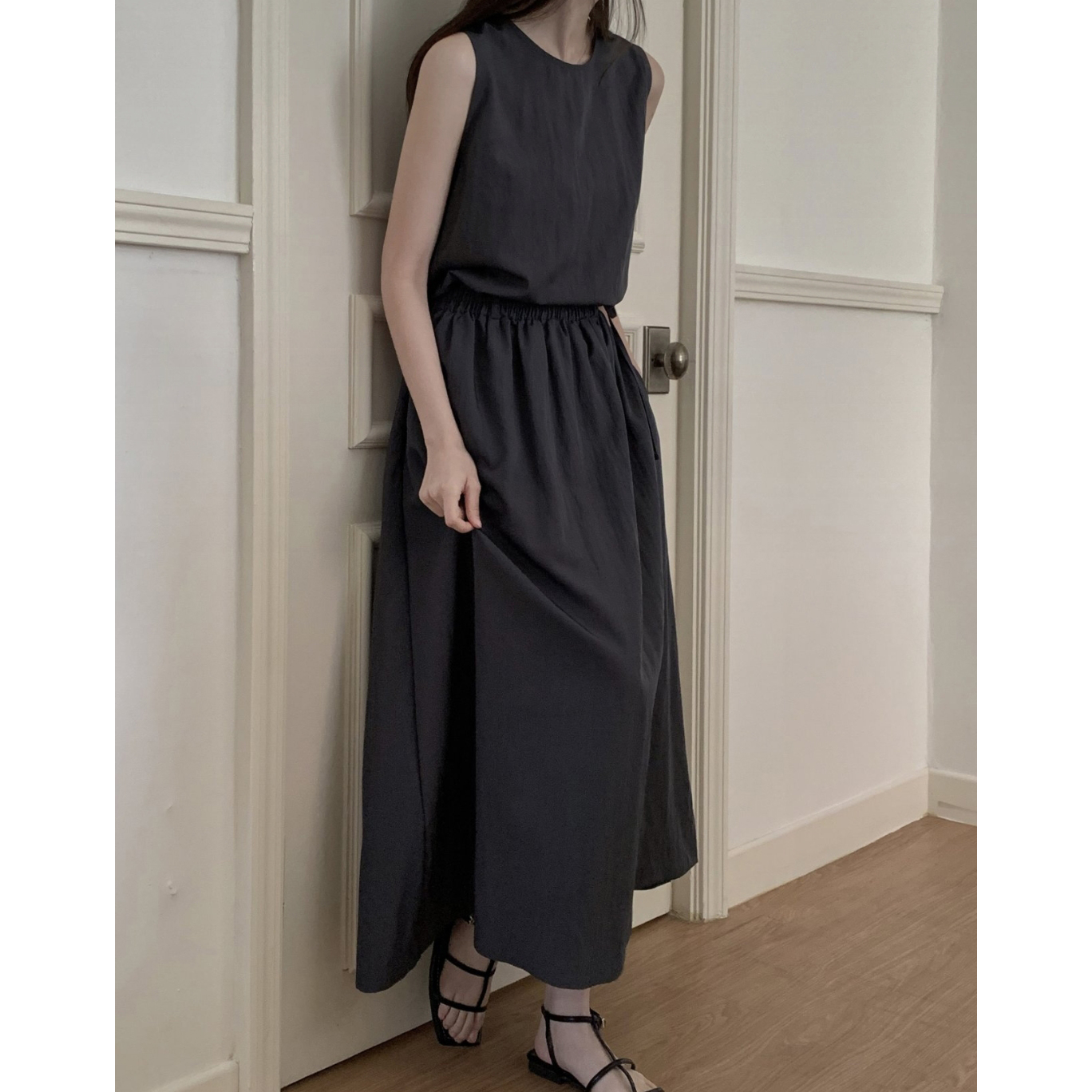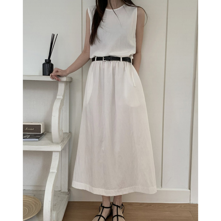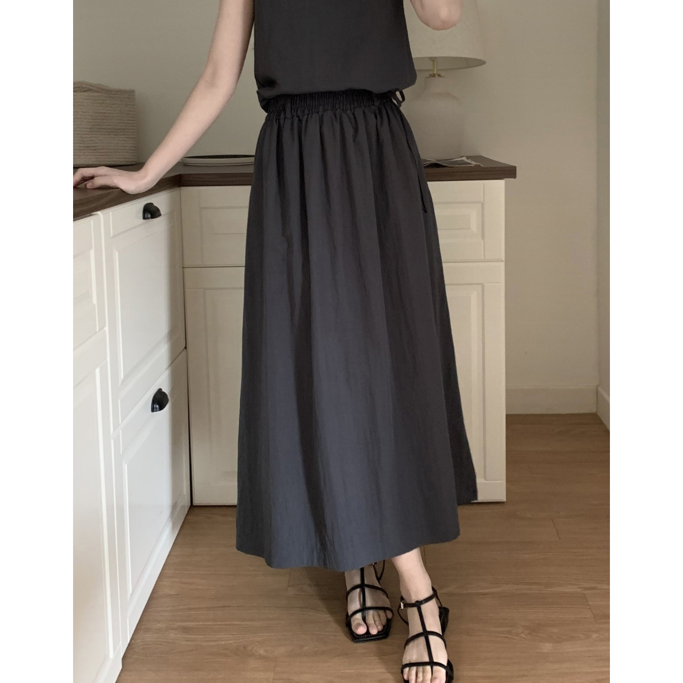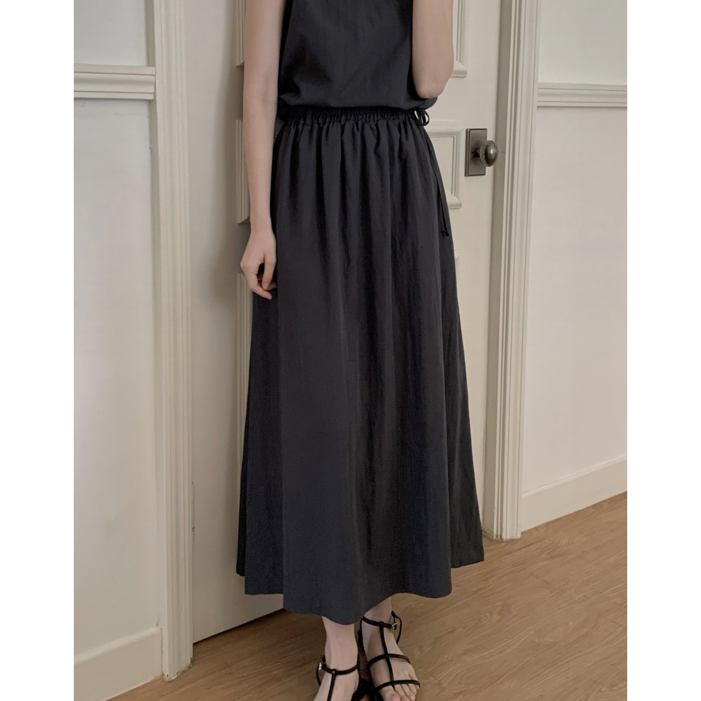 아렌 바스락 밴딩 플레어 롱스커트
