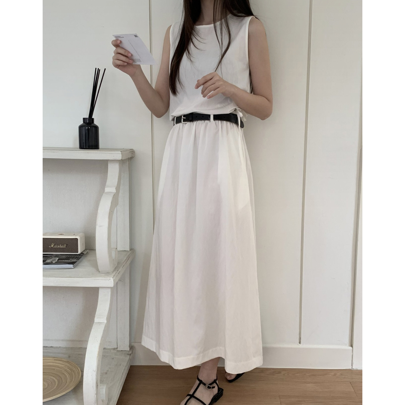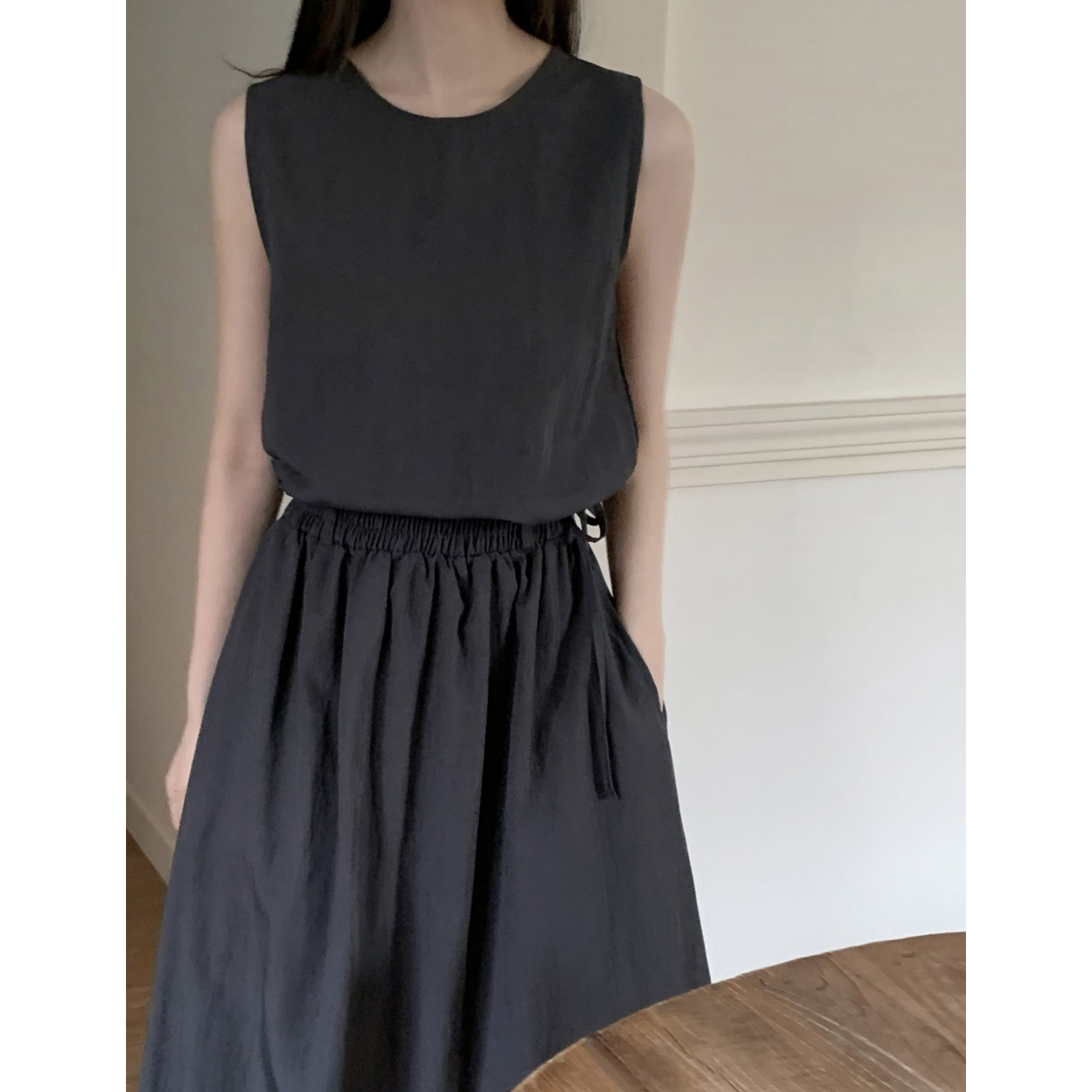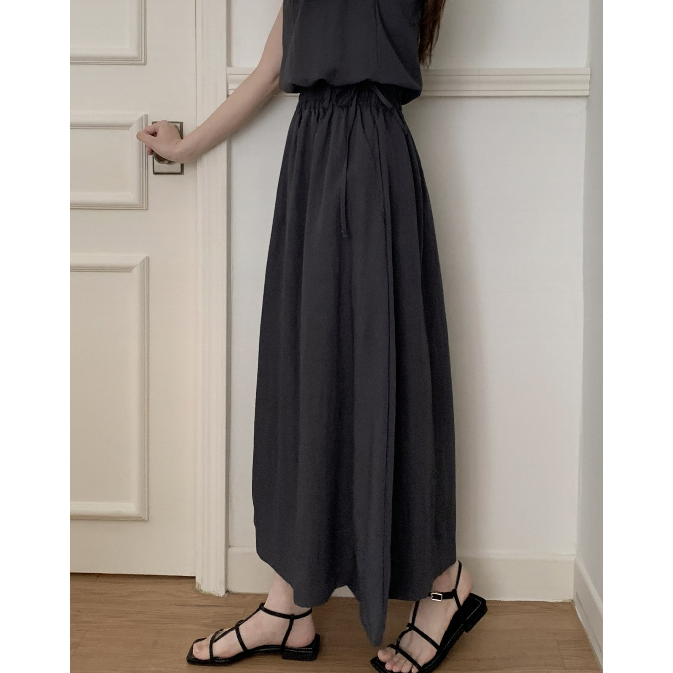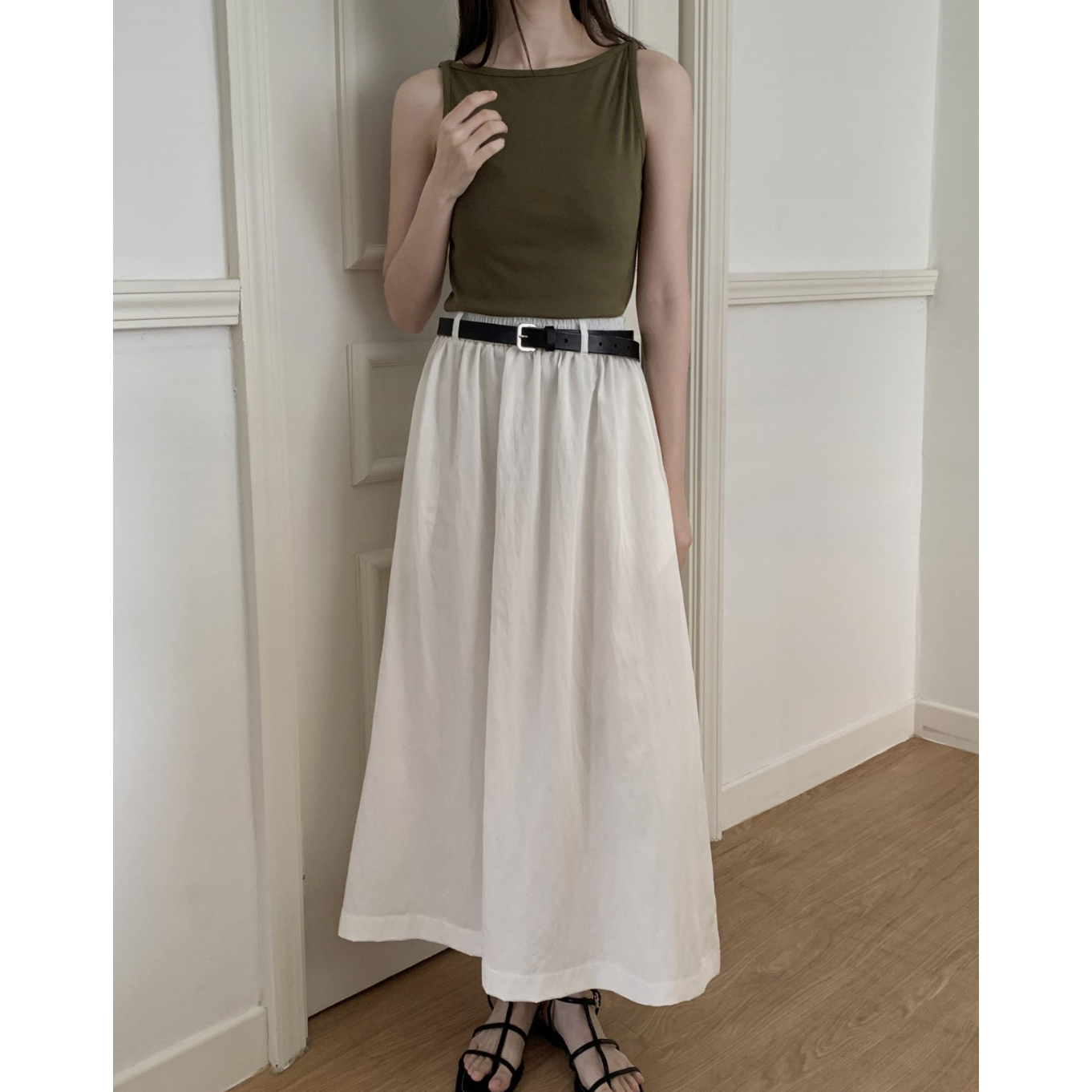 아렌 바스락 밴딩 플레어 롱스커트