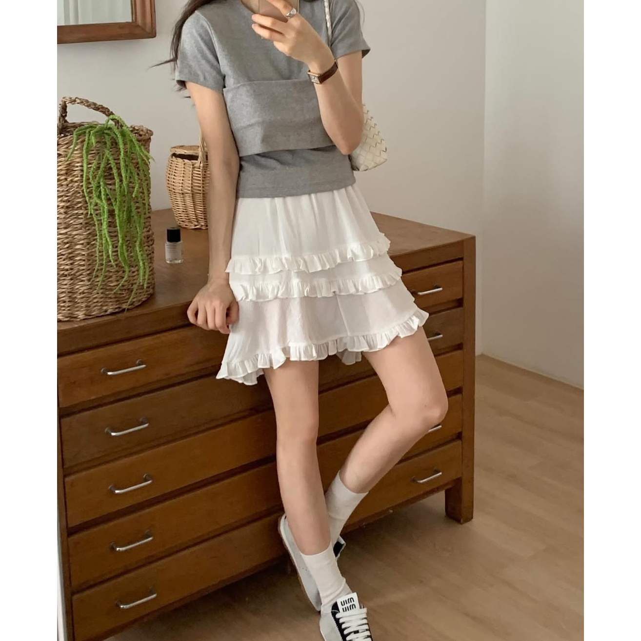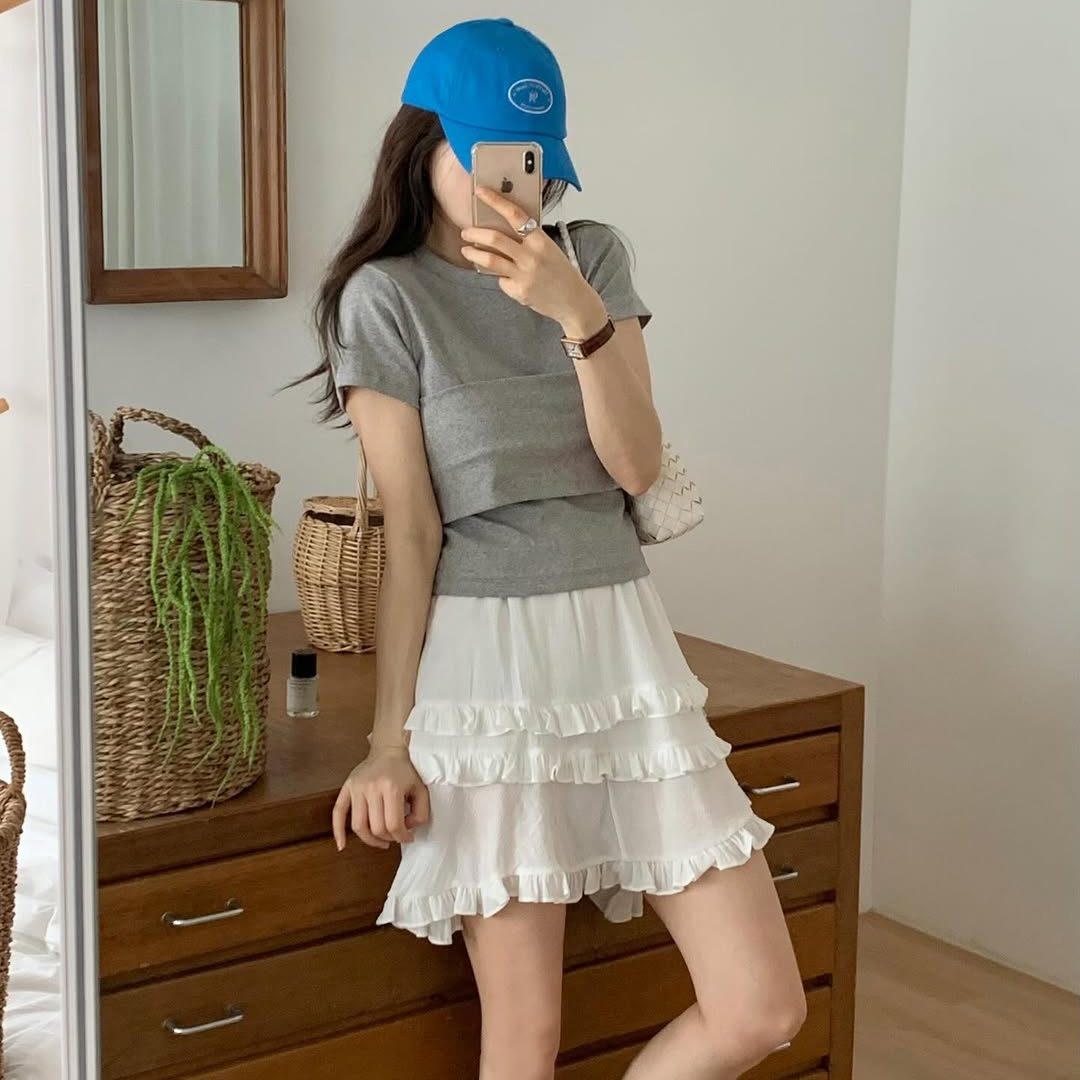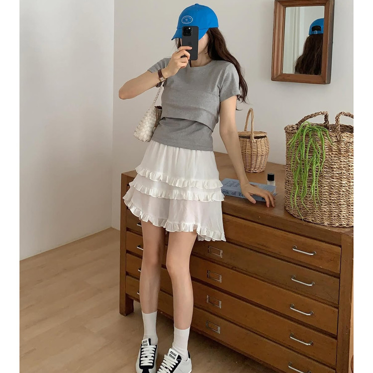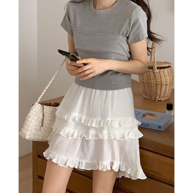 요루 프릴 캉캉 언발 미니 스커트