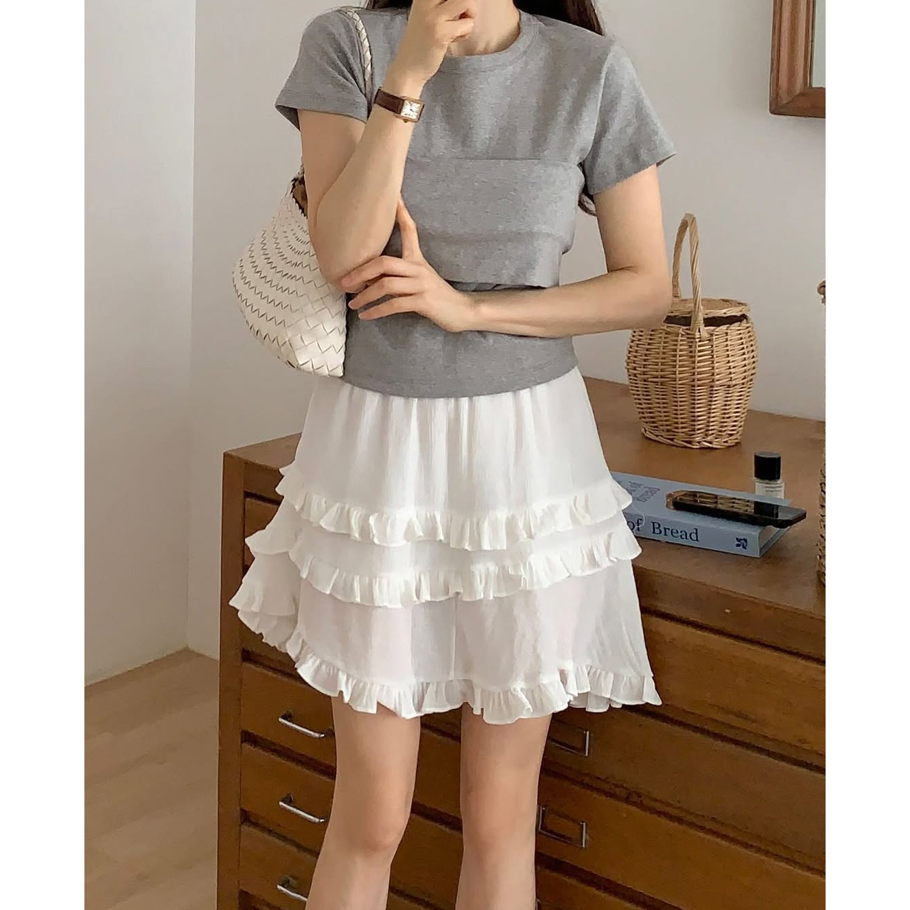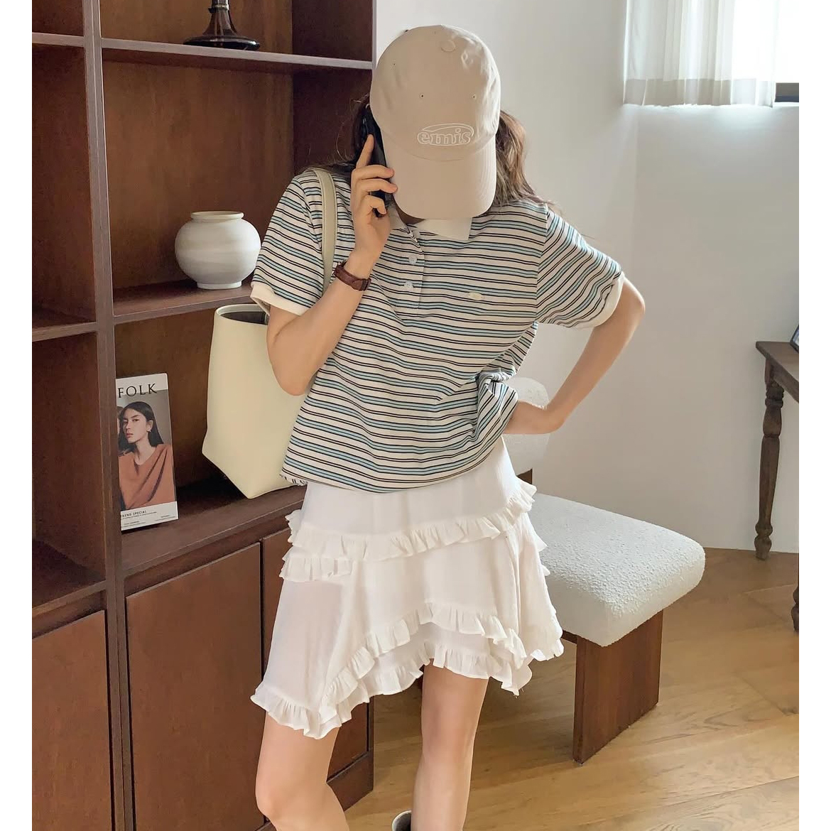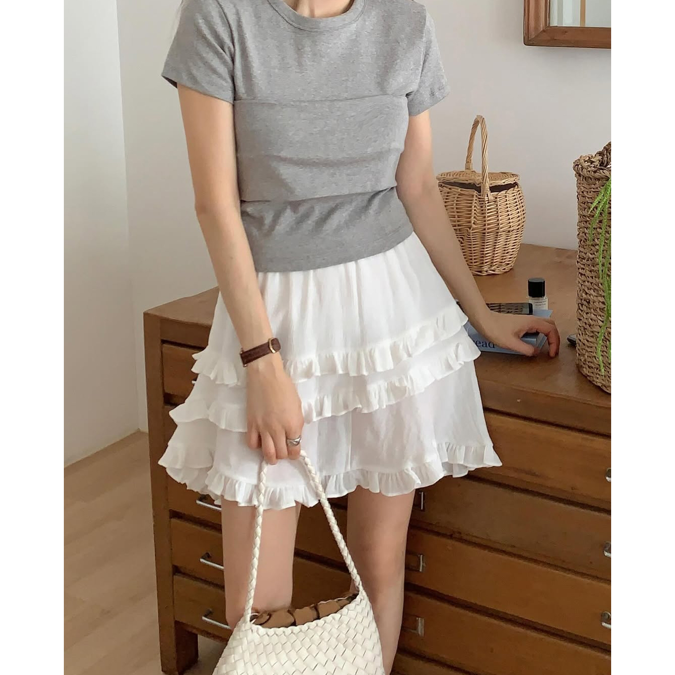 요루 프릴 캉캉 언발 미니 스커트