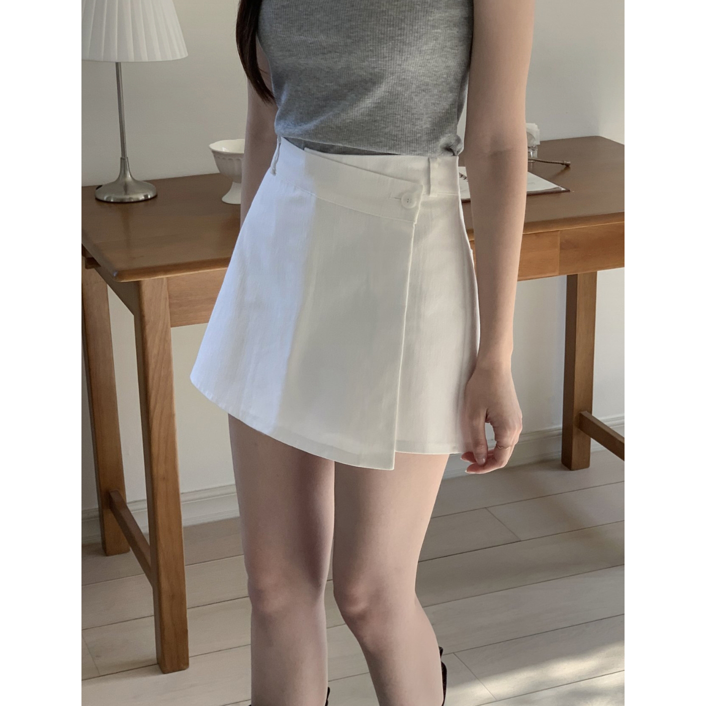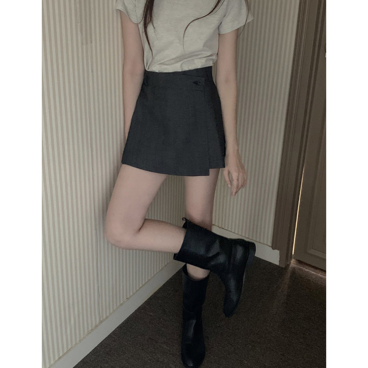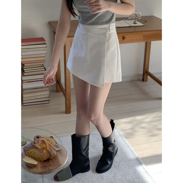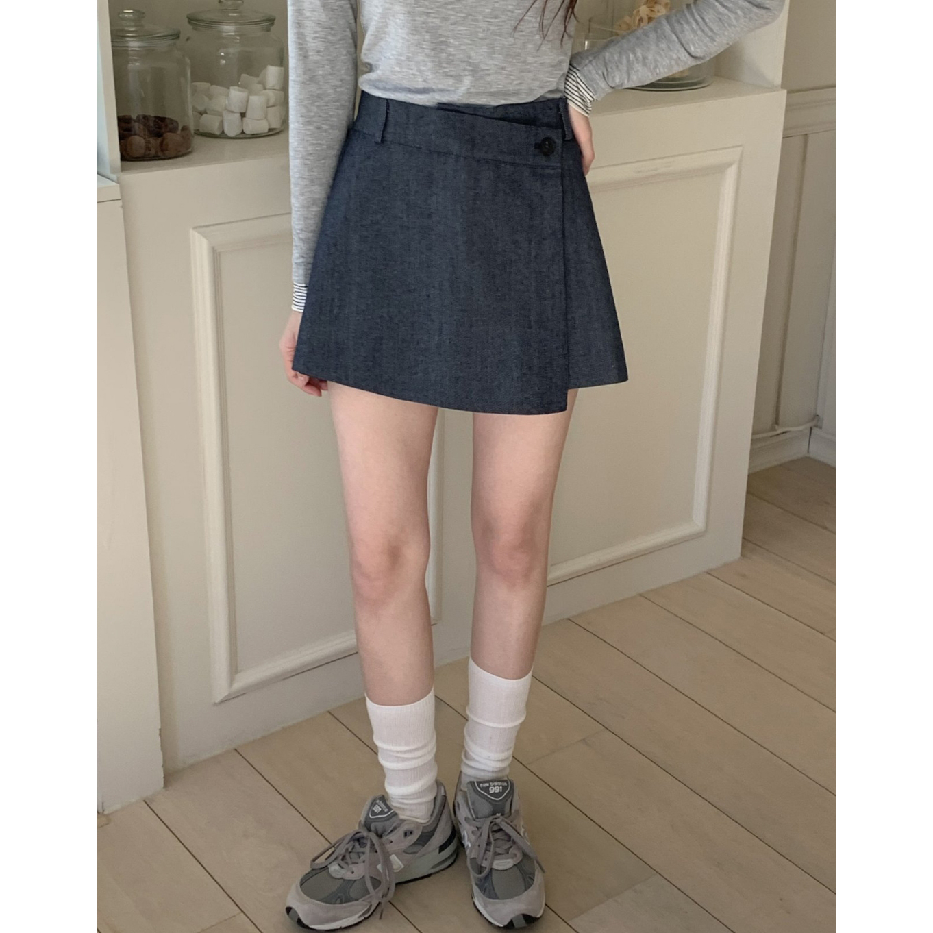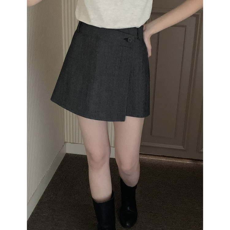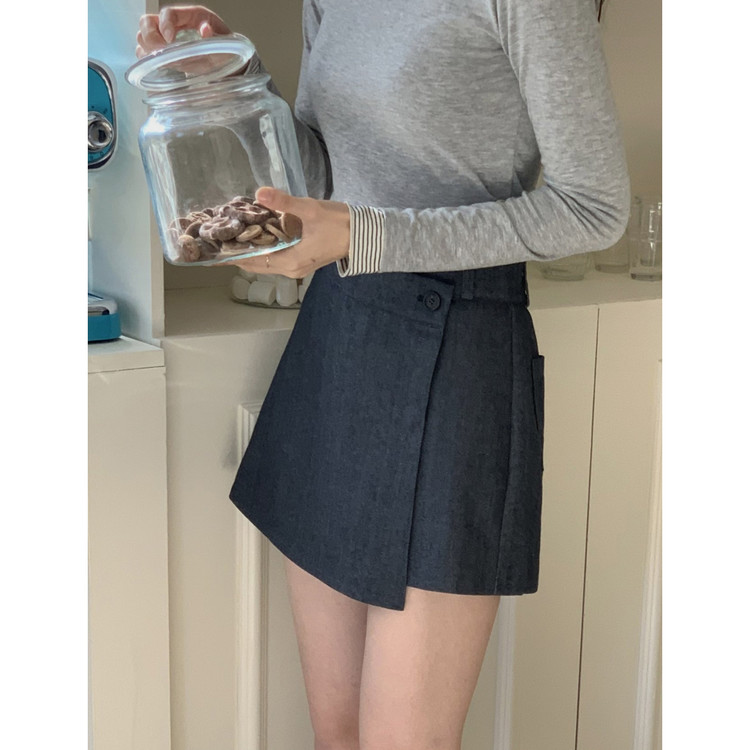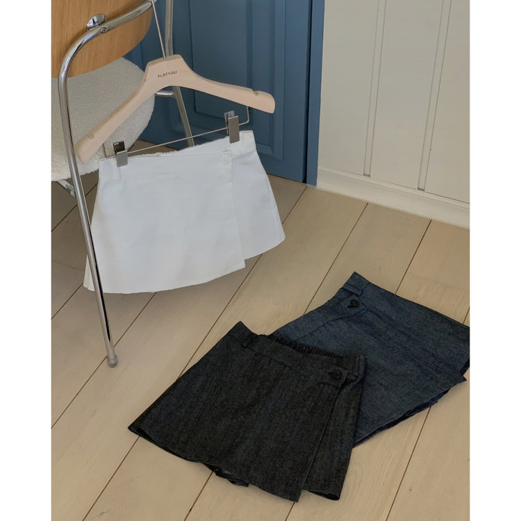 유 데님 랩 반바지 스커트 팬츠