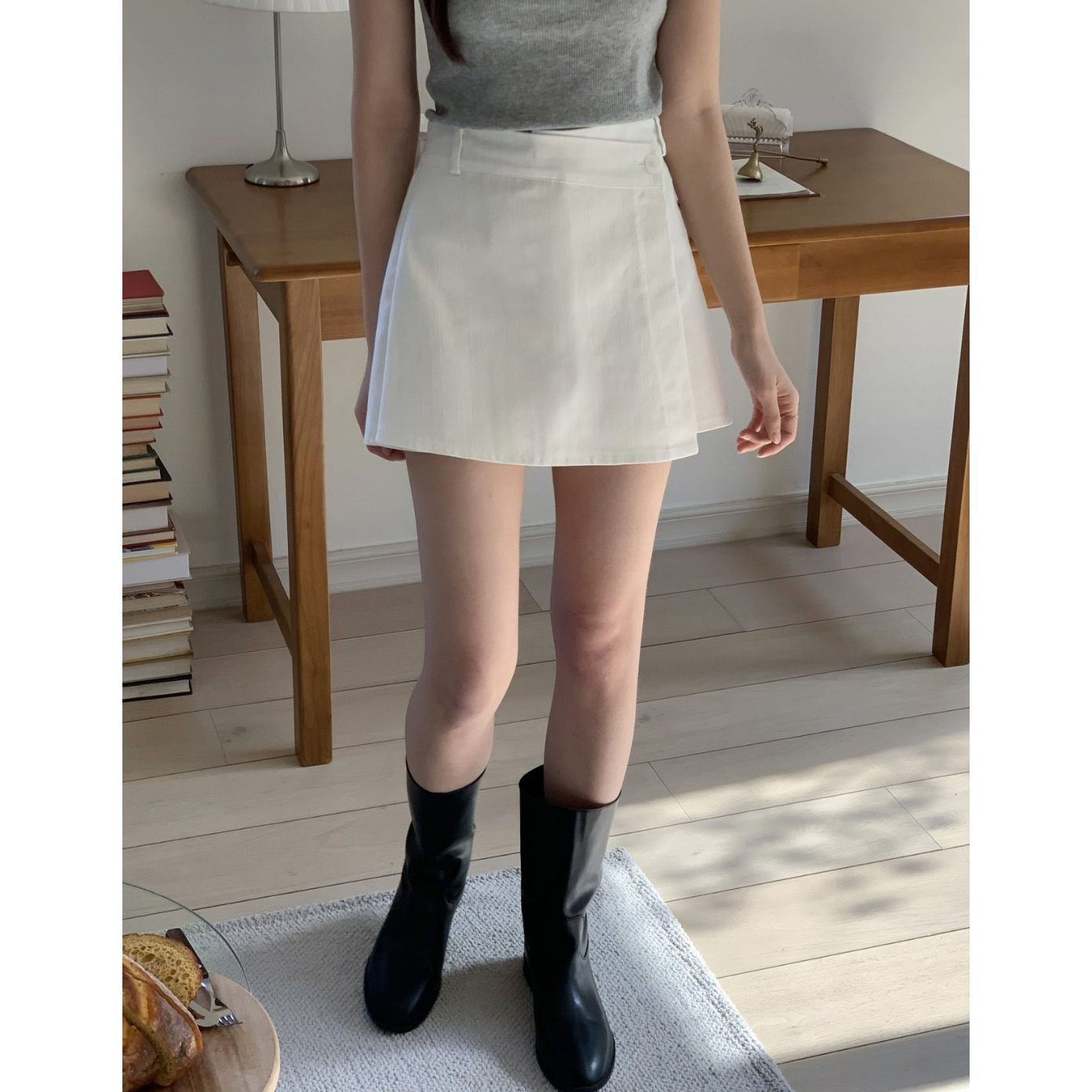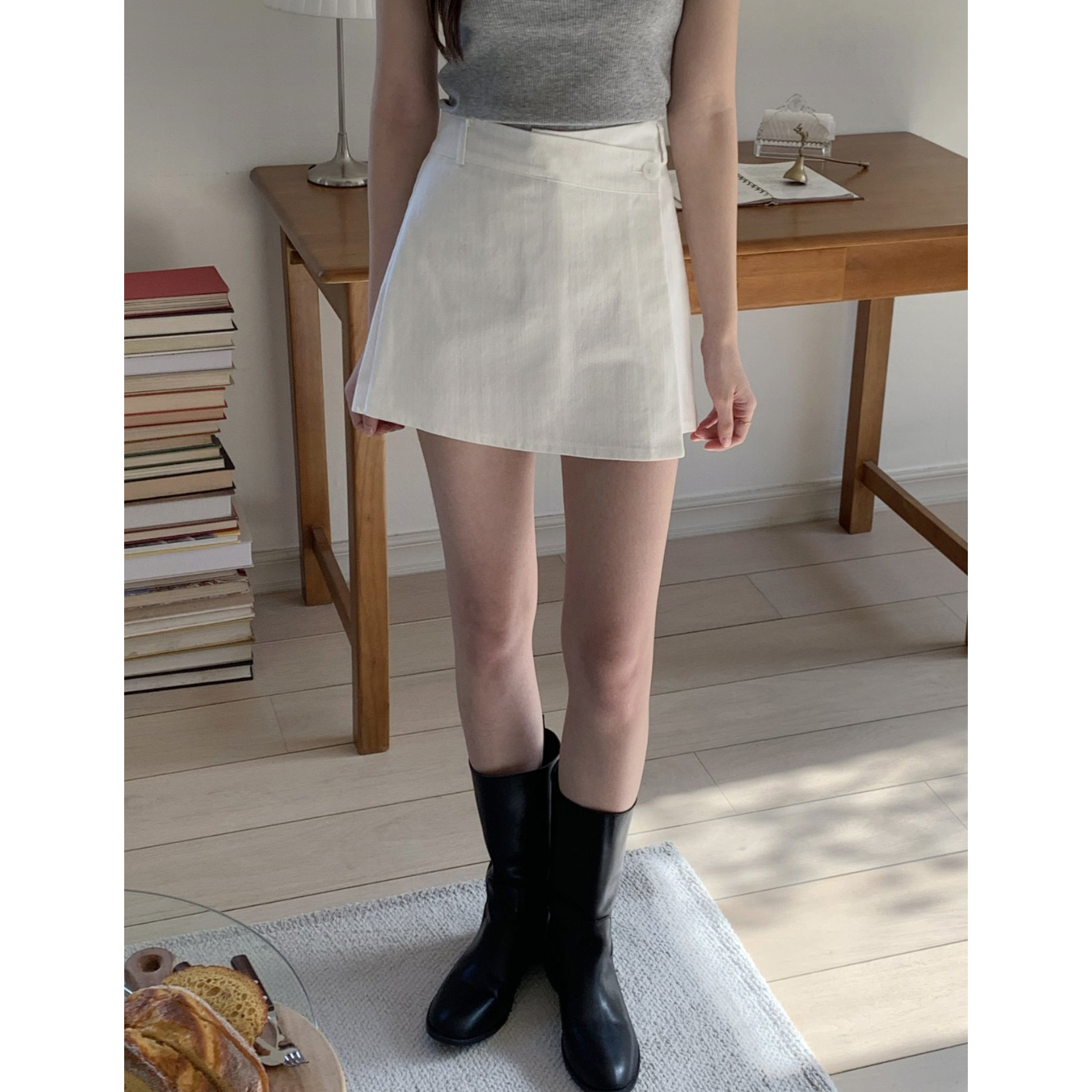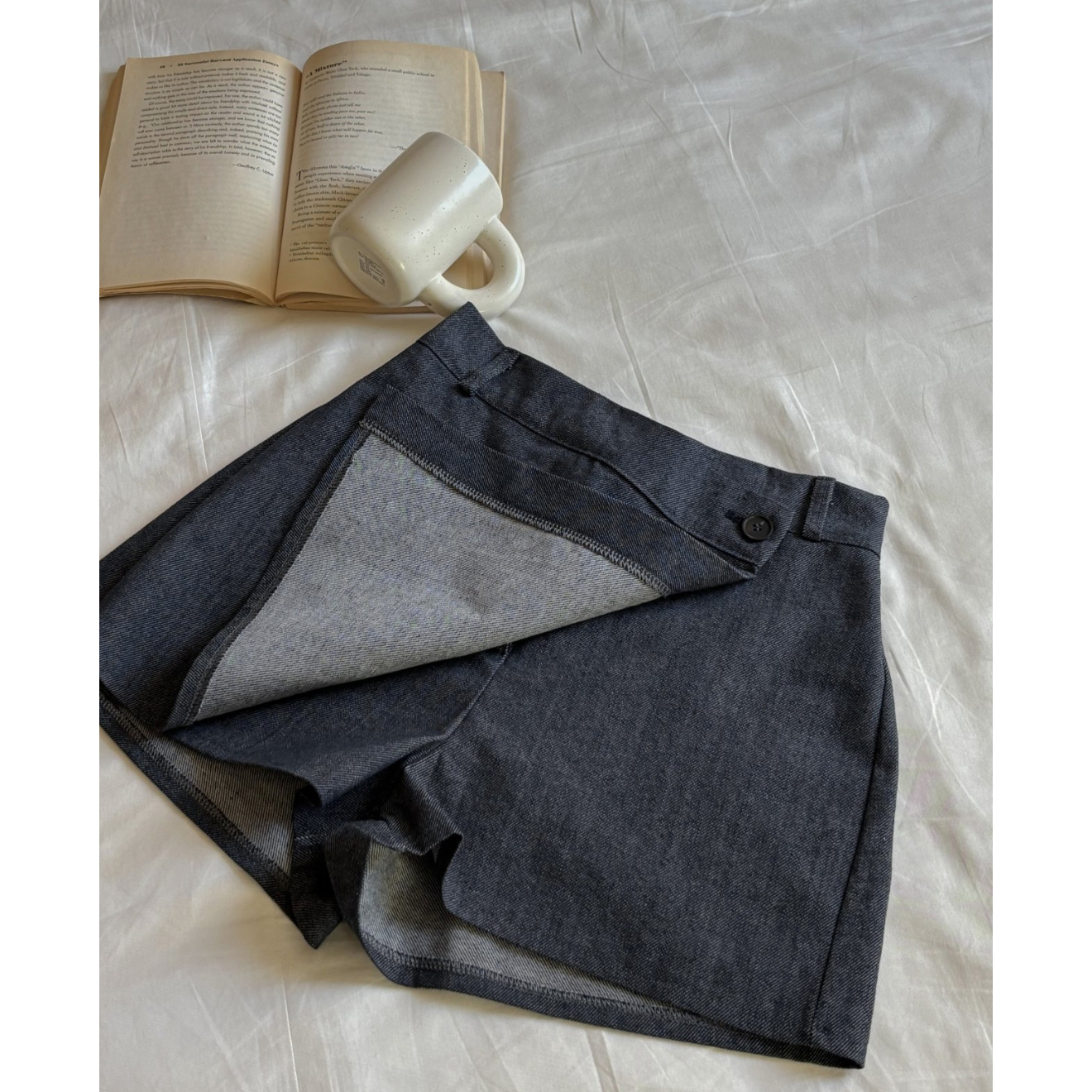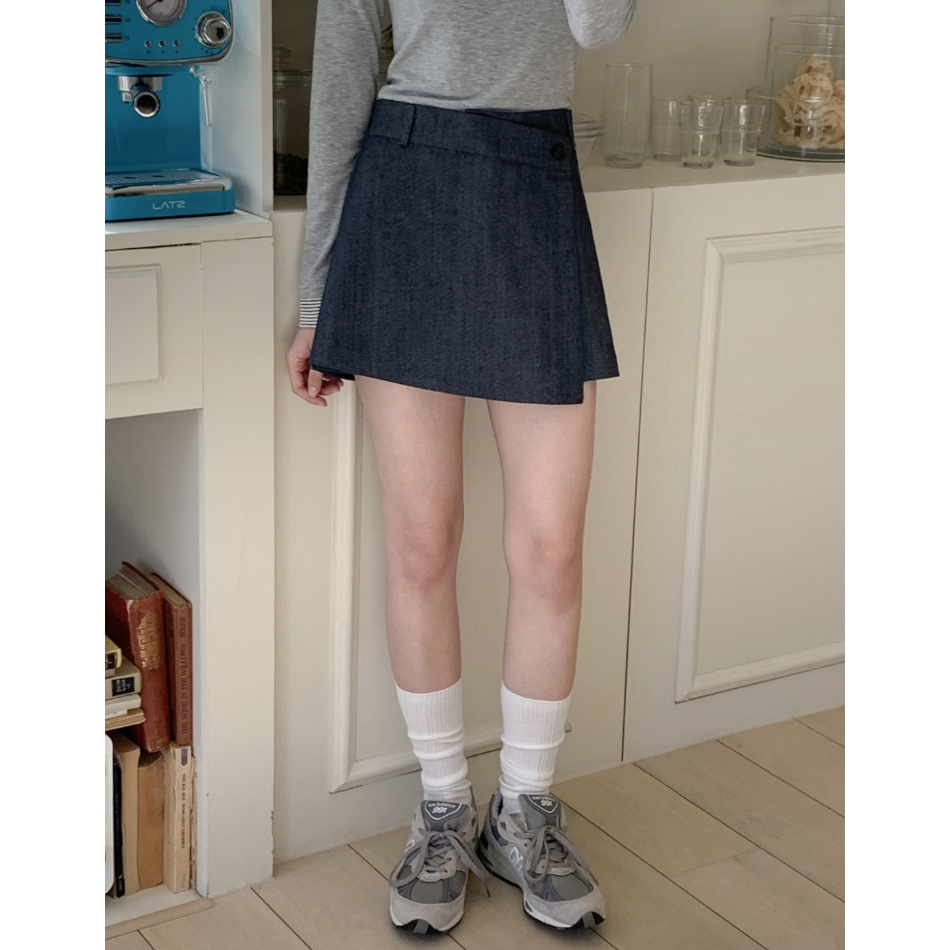 유 데님 랩 반바지 스커트 팬츠
