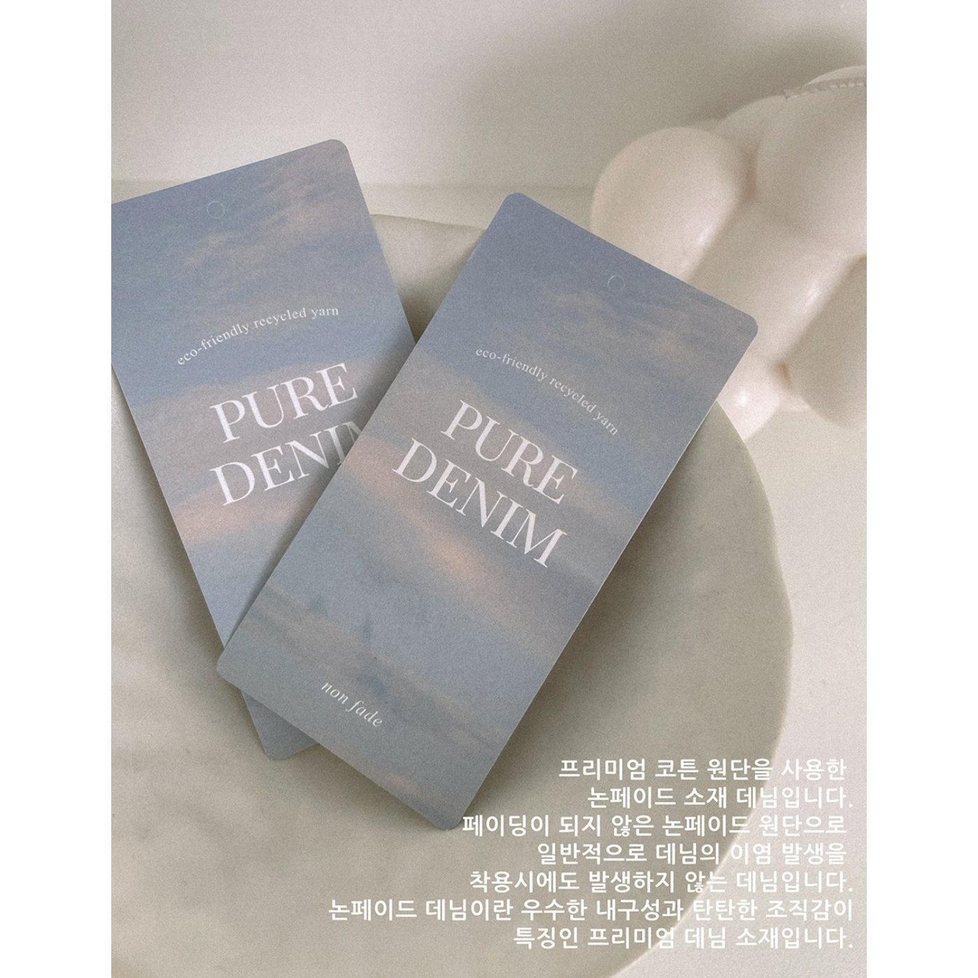 데님 원단은 염료 특성상 물빠짐 또는 이염이 있을 수 있습니다