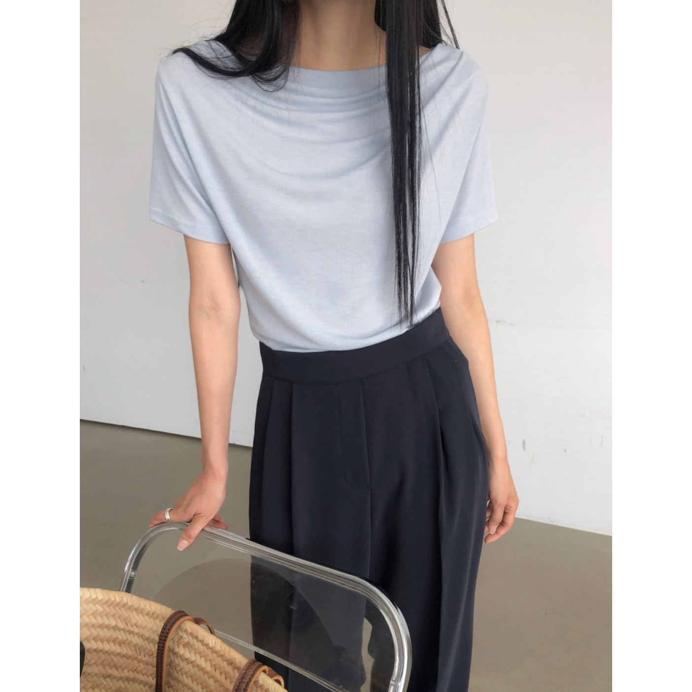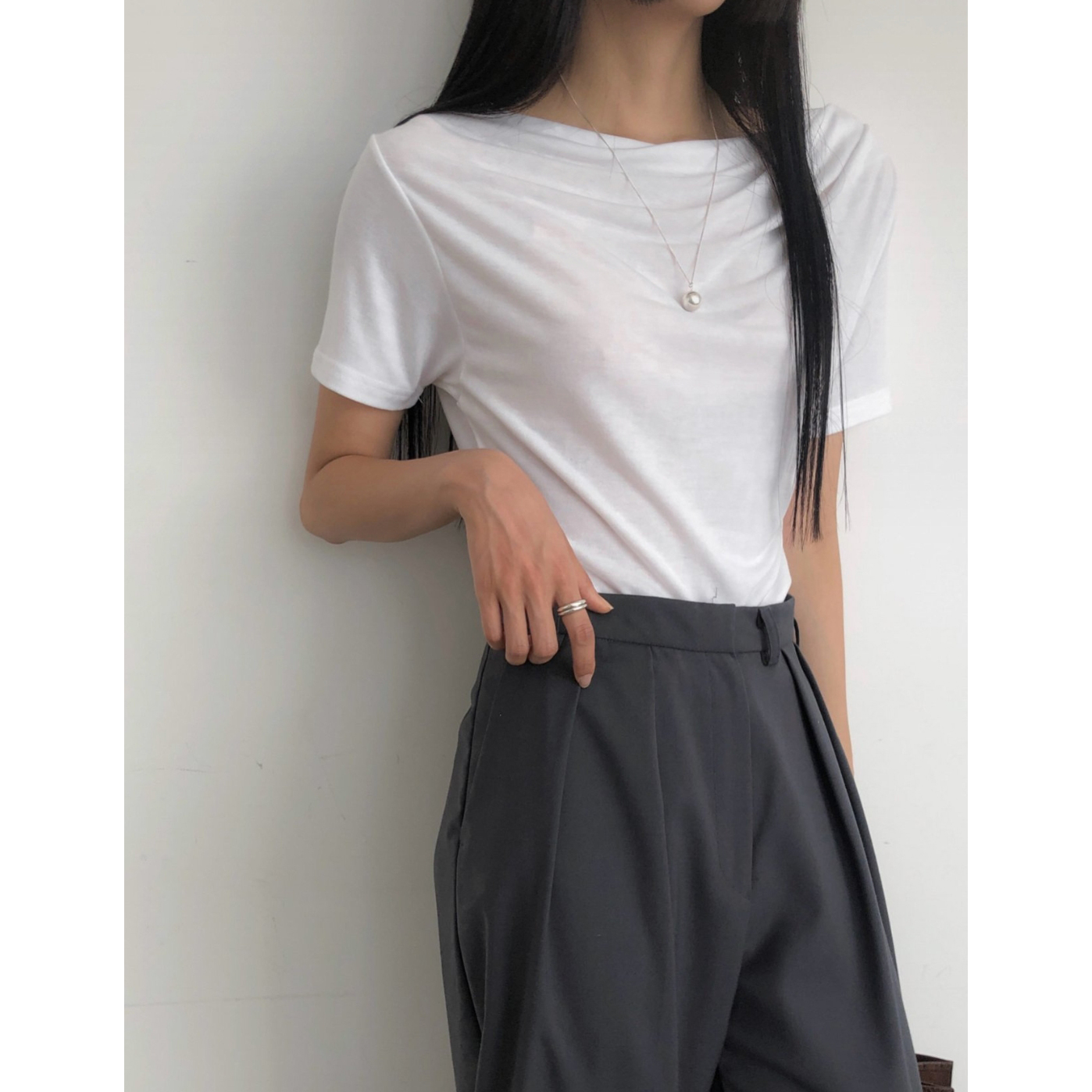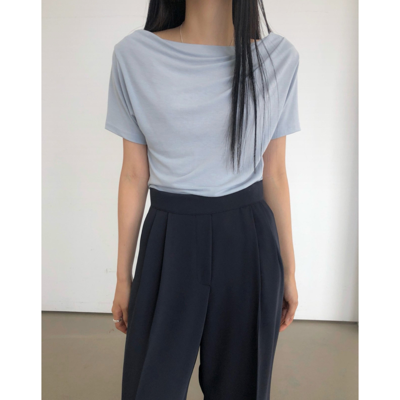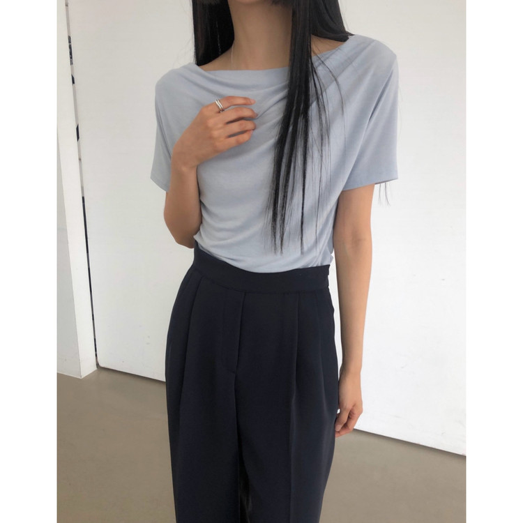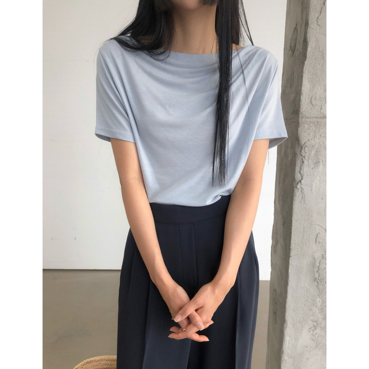 드레이프 셔링 보트넥 오프숄더 반팔티