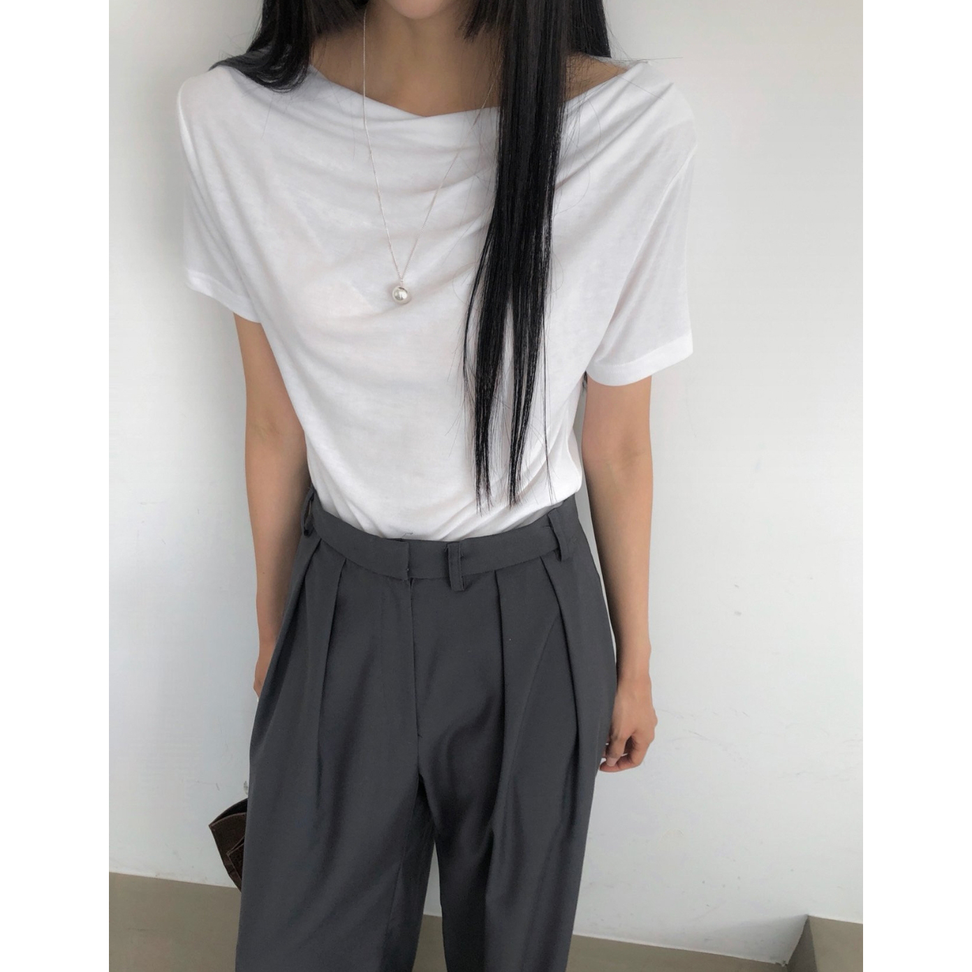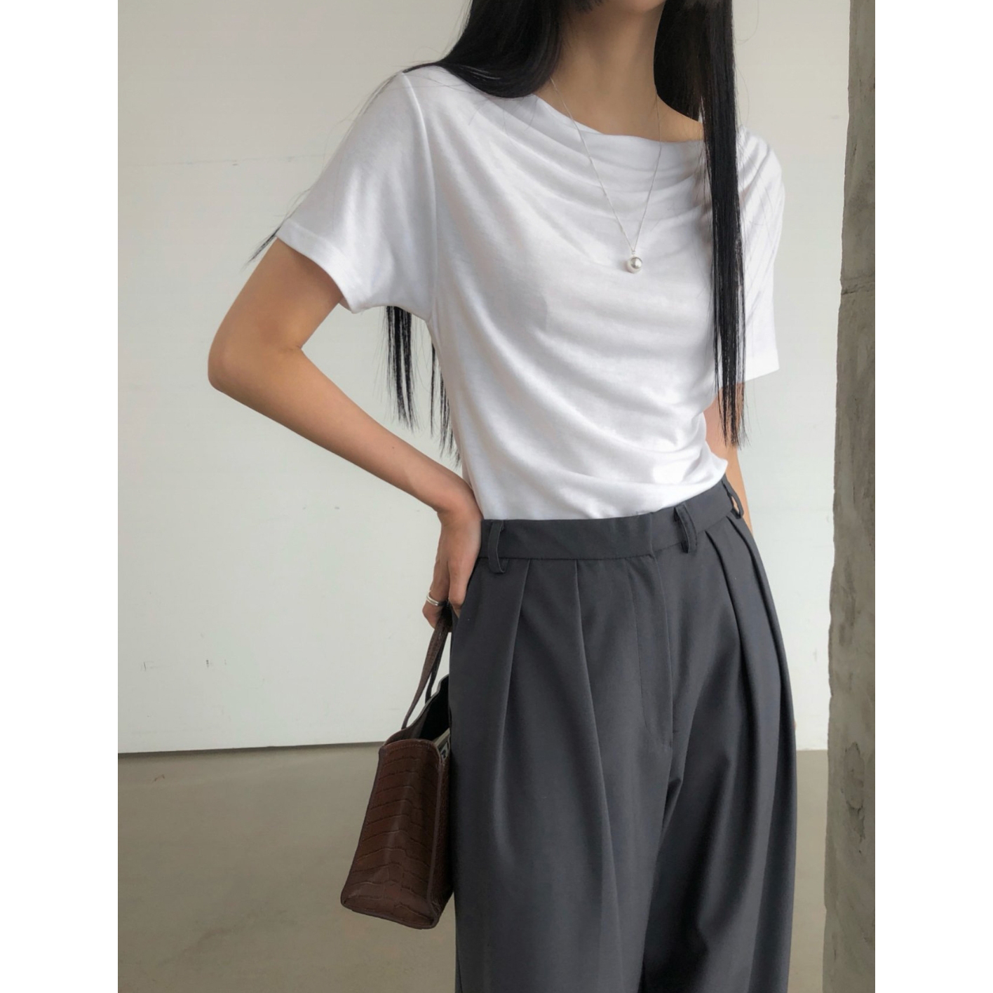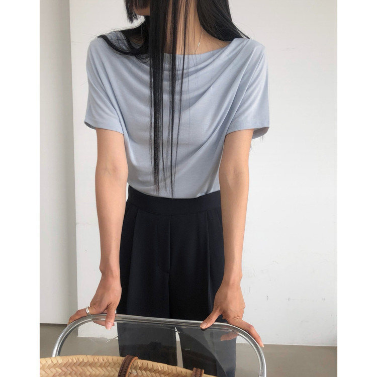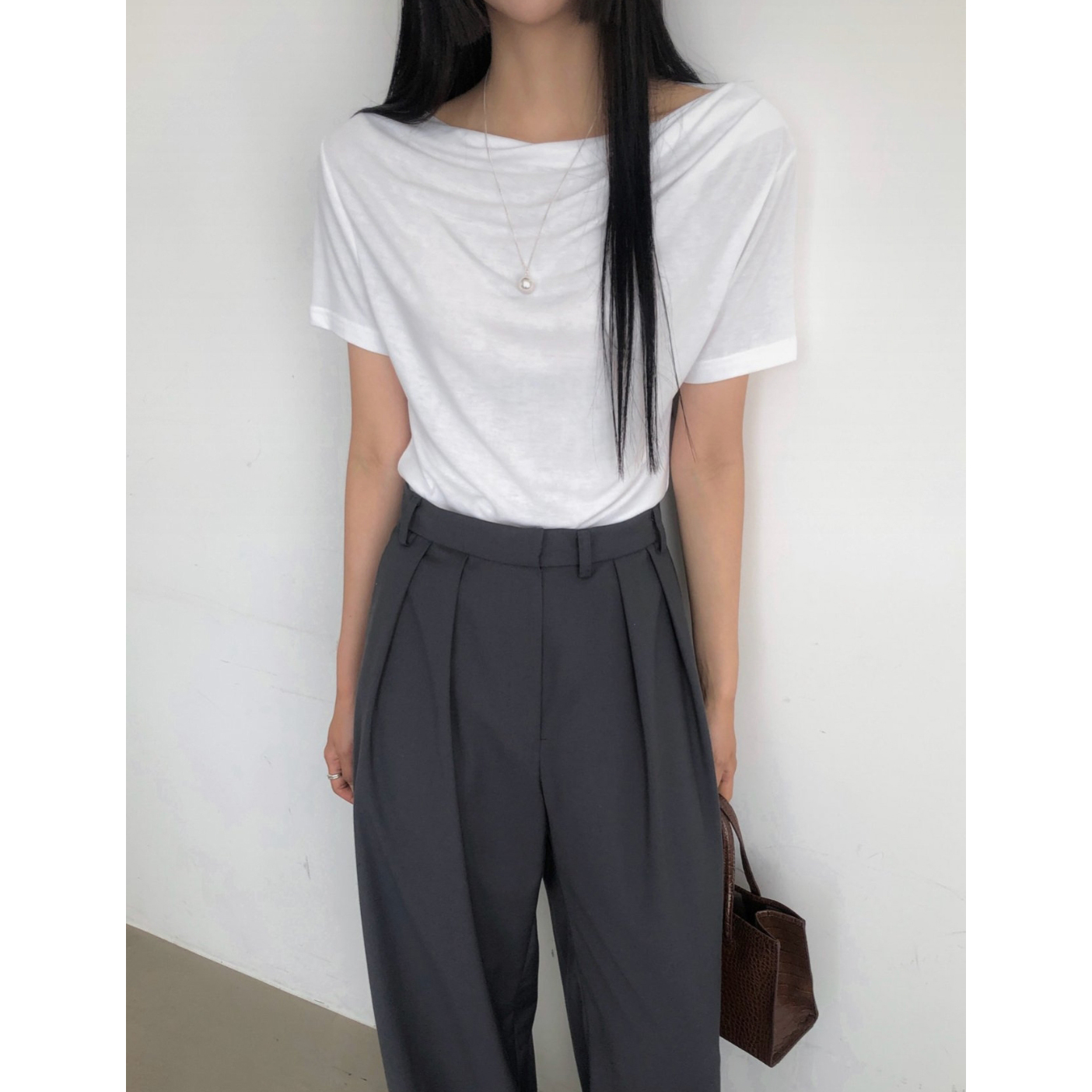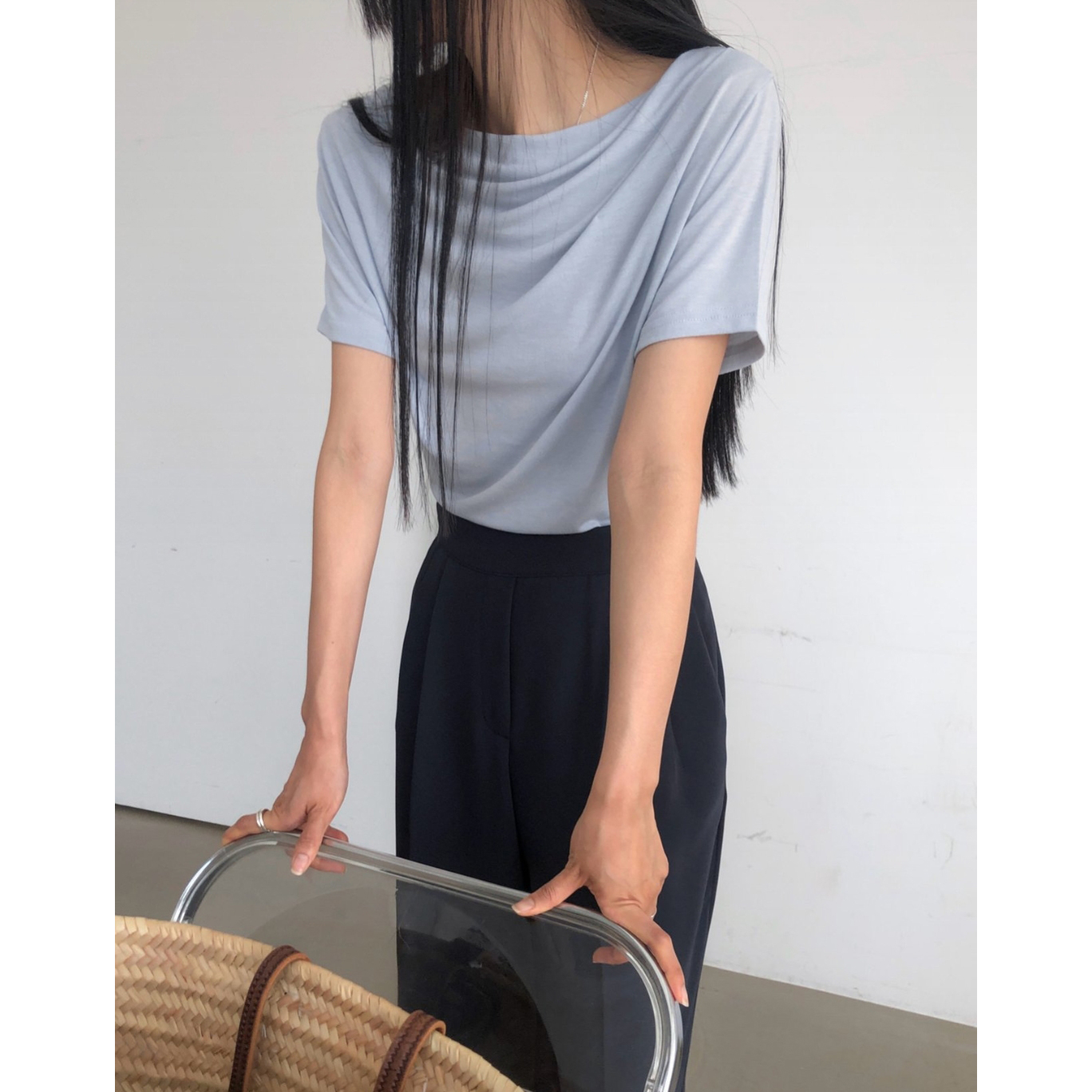 드레이프 셔링 보트넥 오프숄더 반팔티