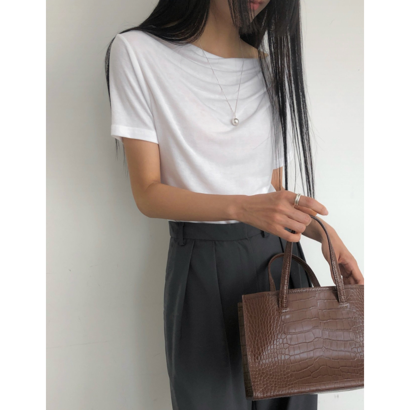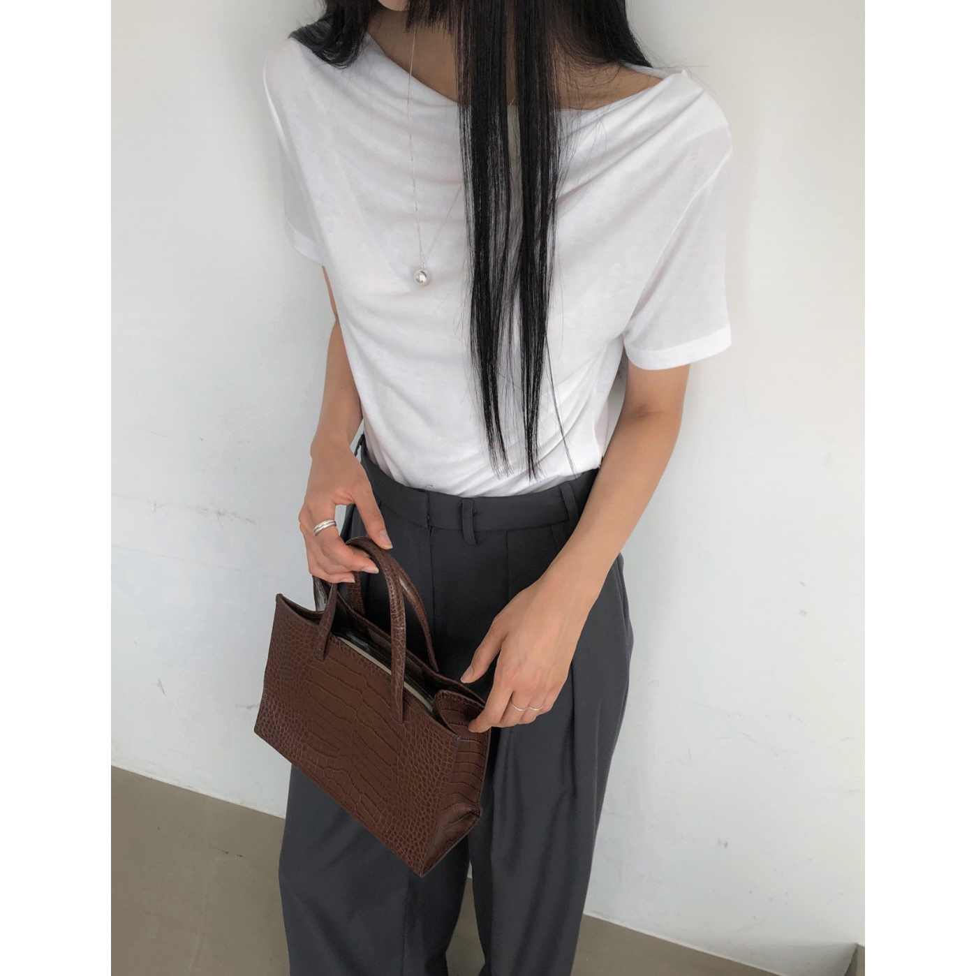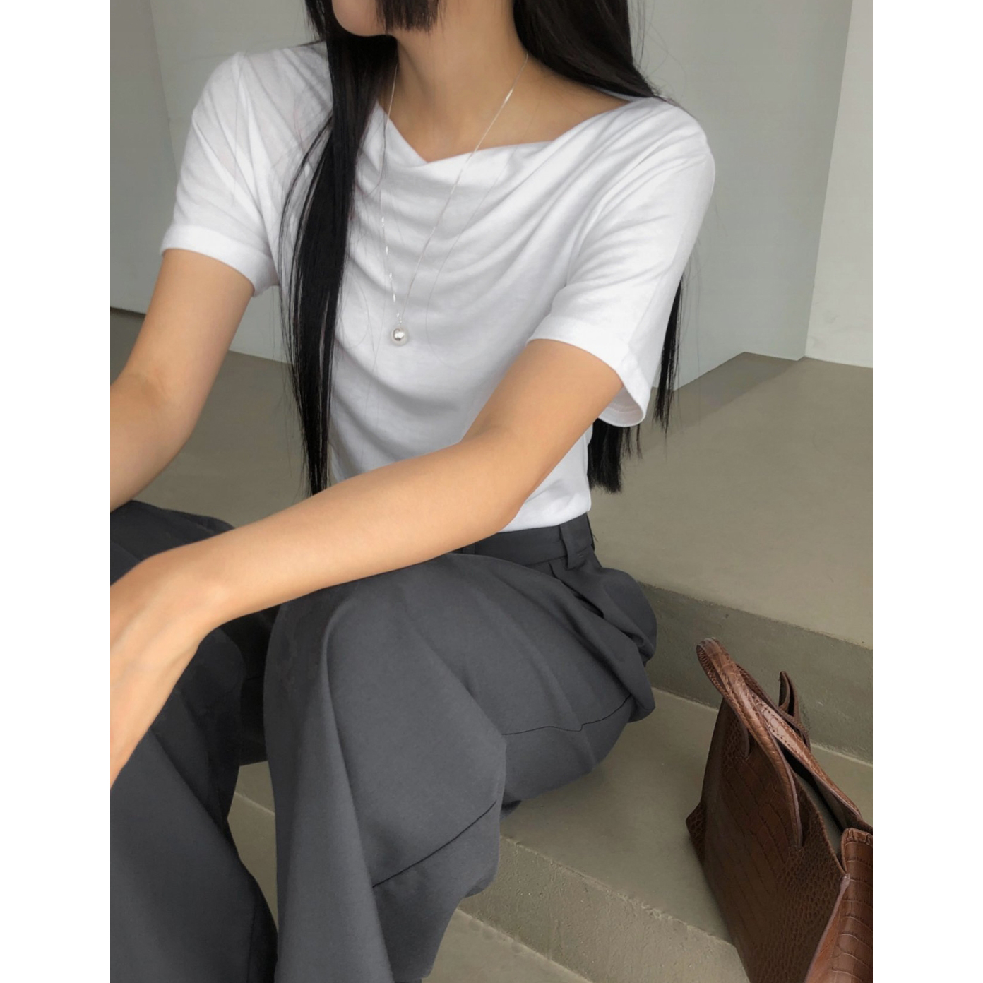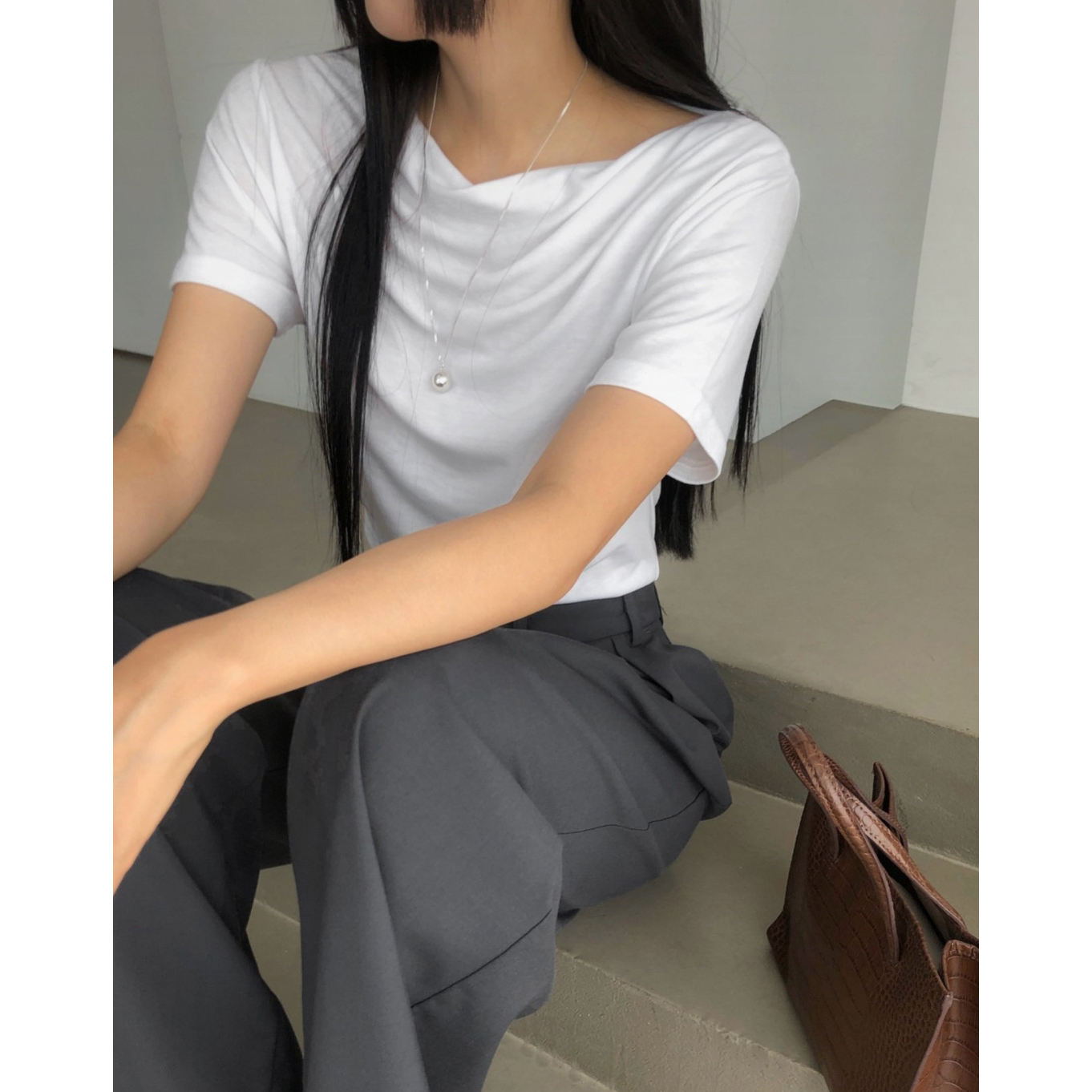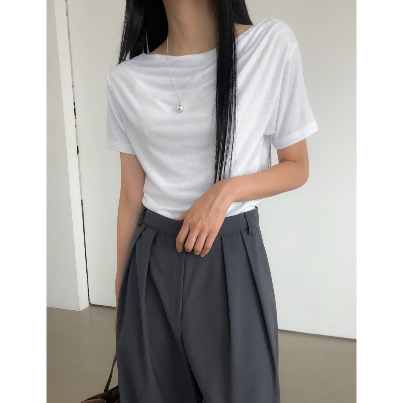 드레이프 셔링 보트넥 오프숄더 반팔티