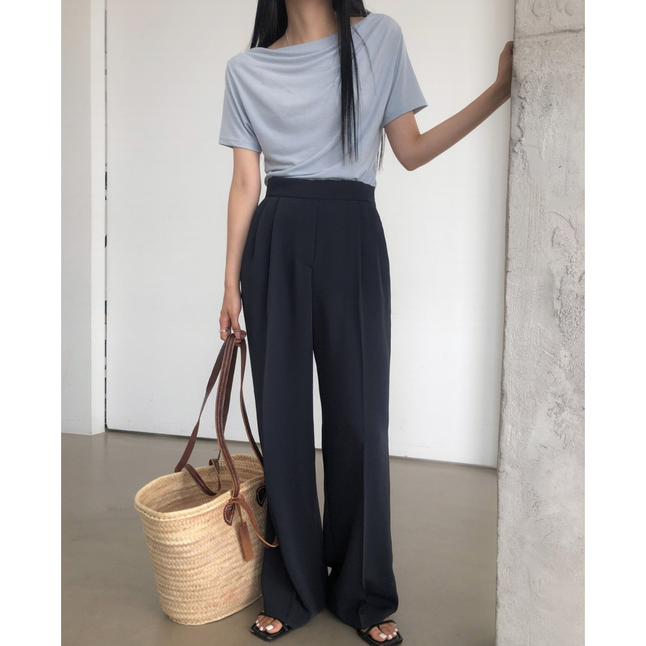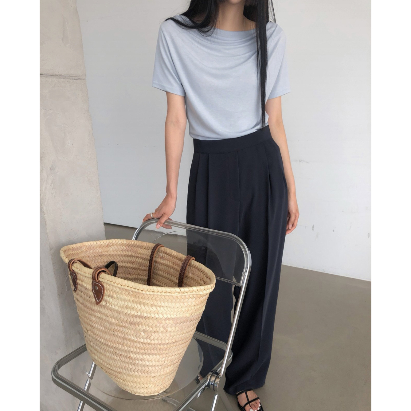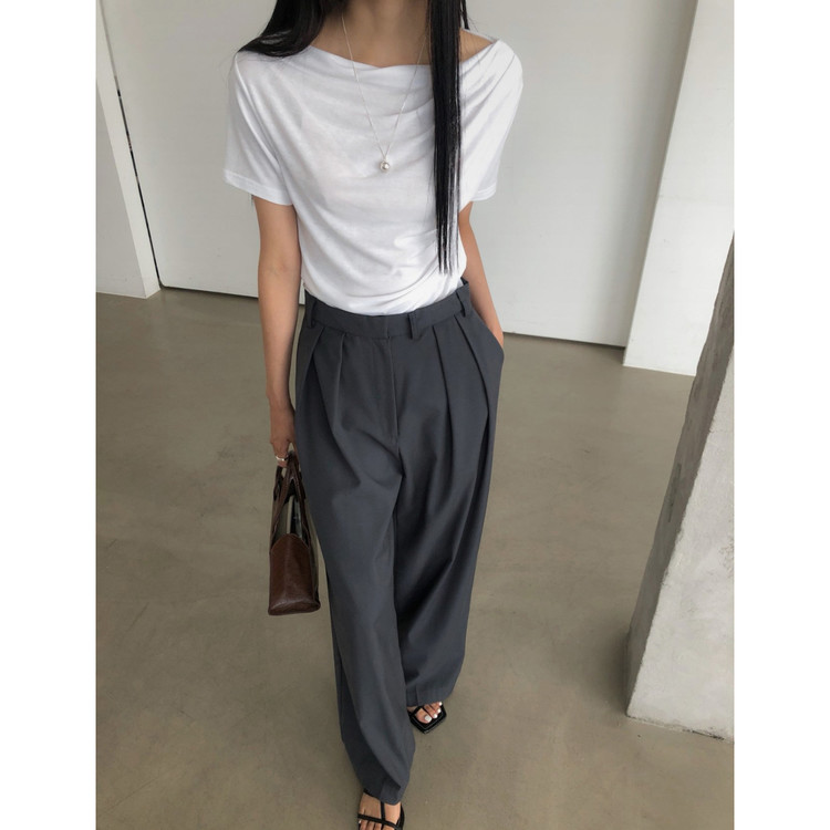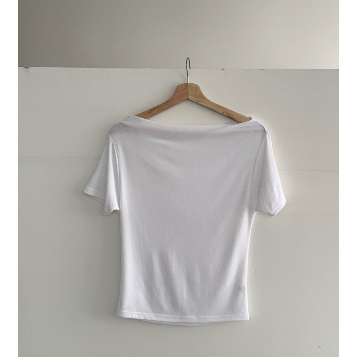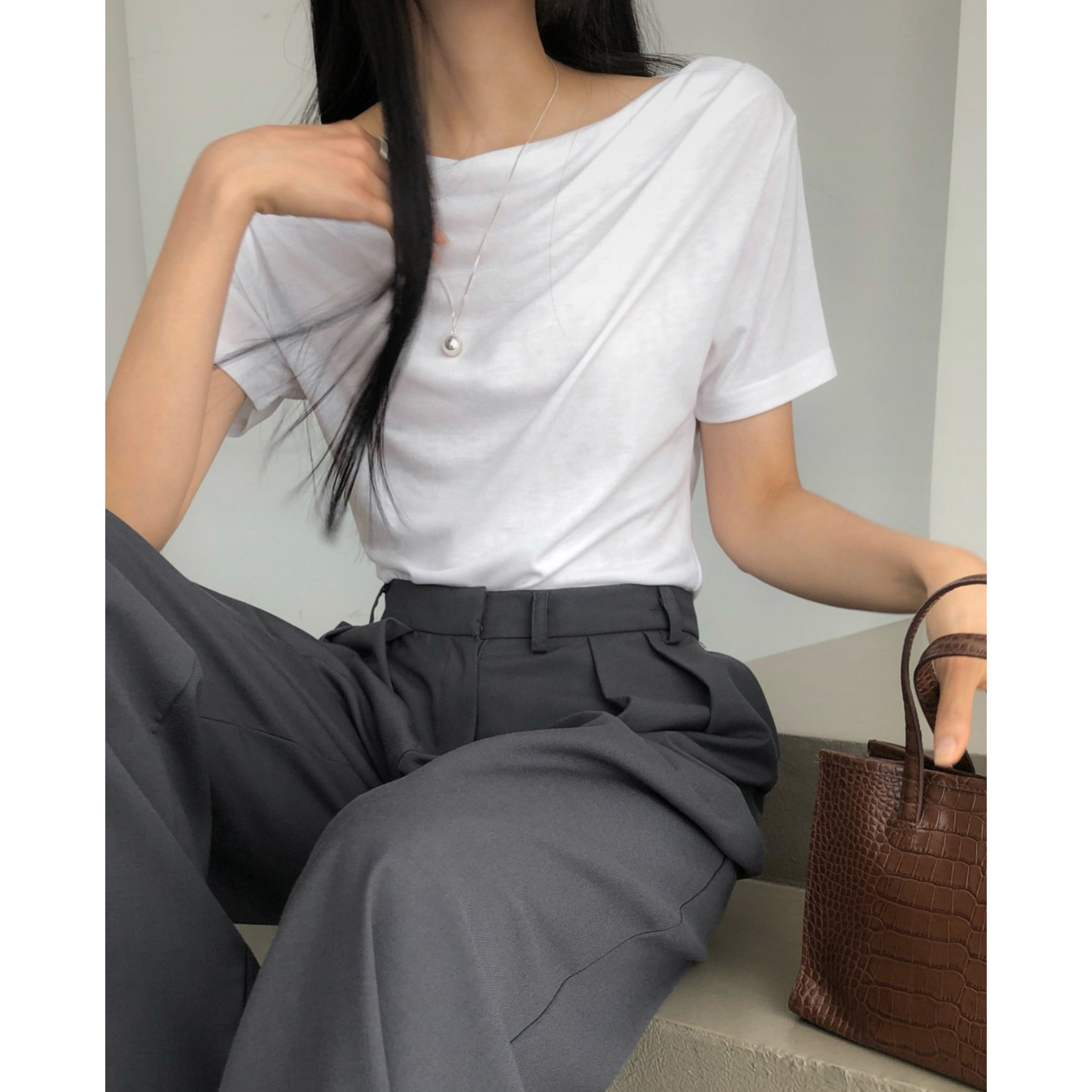 드레이프 셔링 보트넥 오프숄더 반팔티
