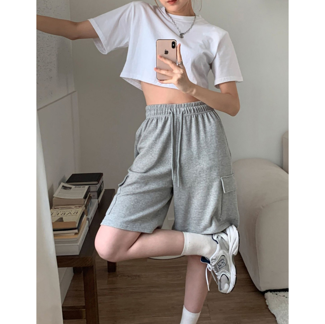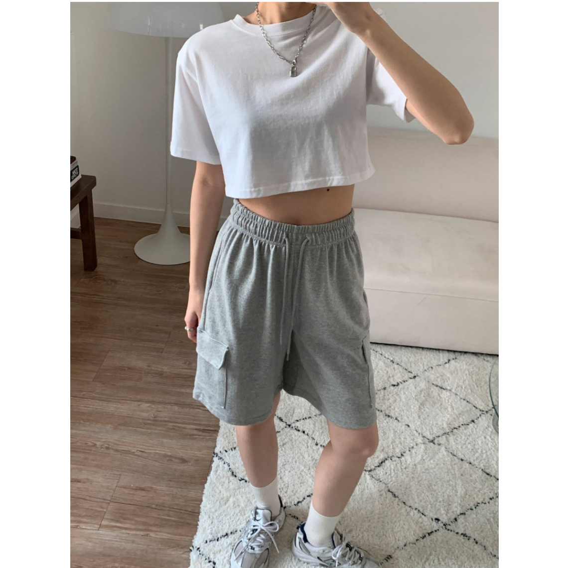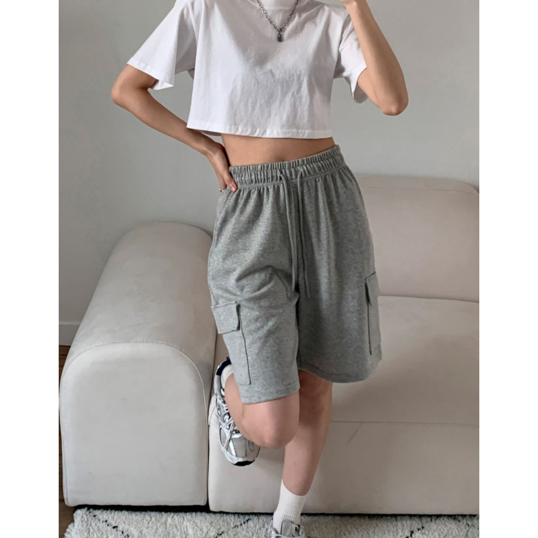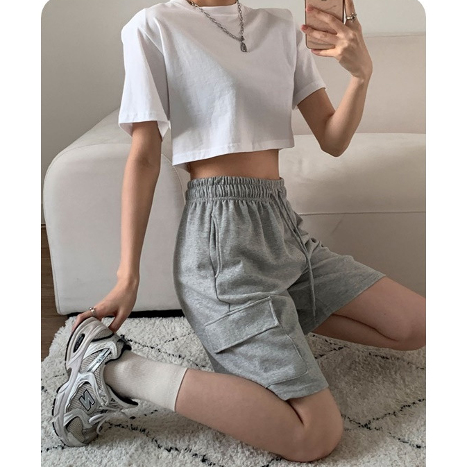잇 쭈리 카고 밴딩 하프 트레이닝 팬츠