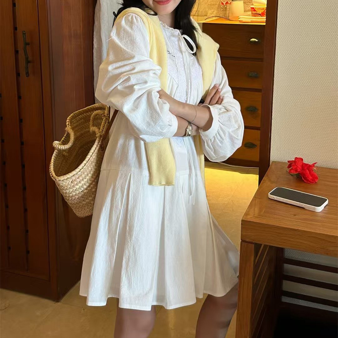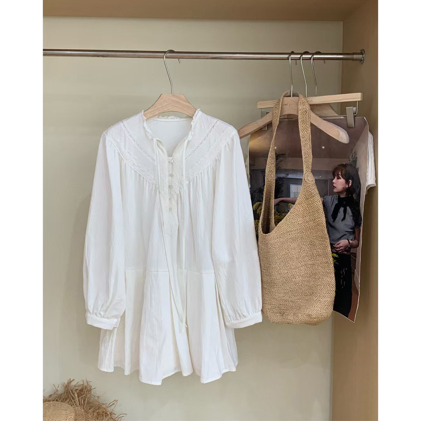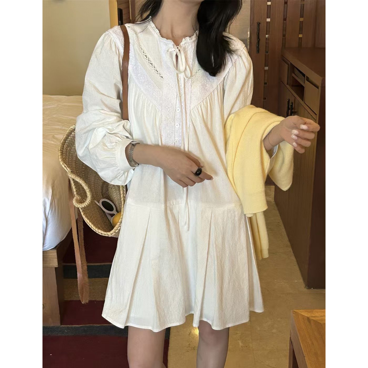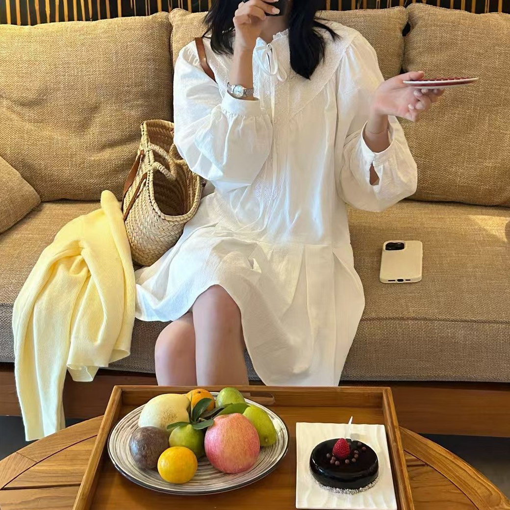 바로발송 미로 루즈핏 코튼 긴팔 미니 원피스