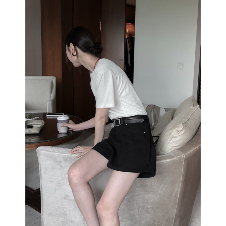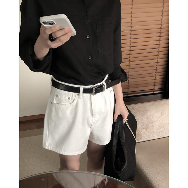 코튼 데님 쇼츠 블랙진 화이트진 반바지