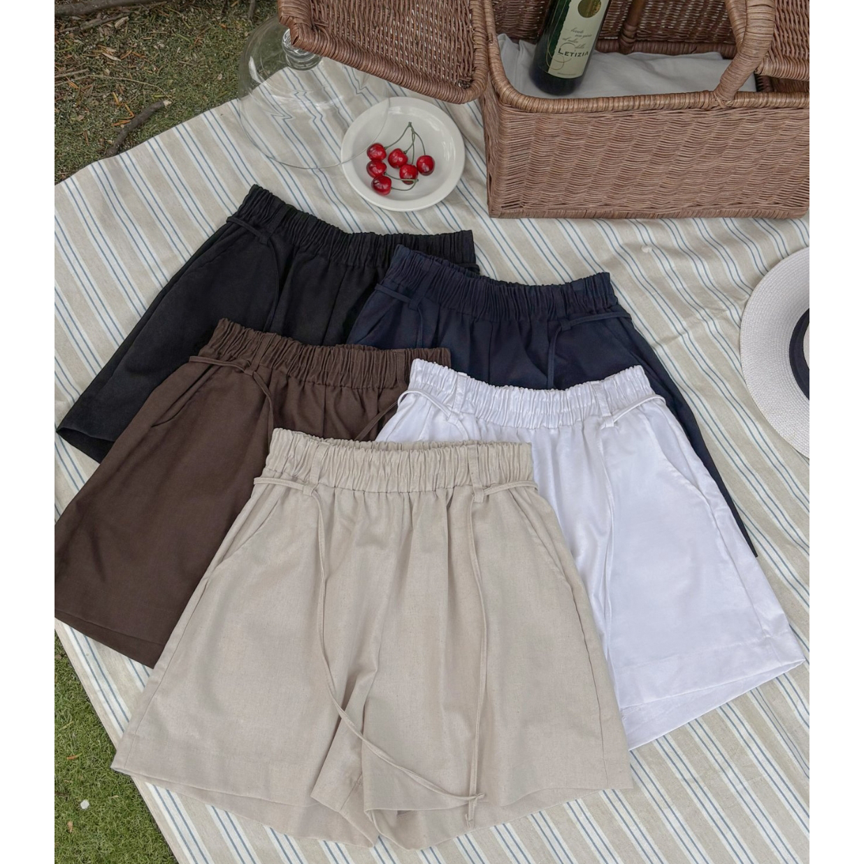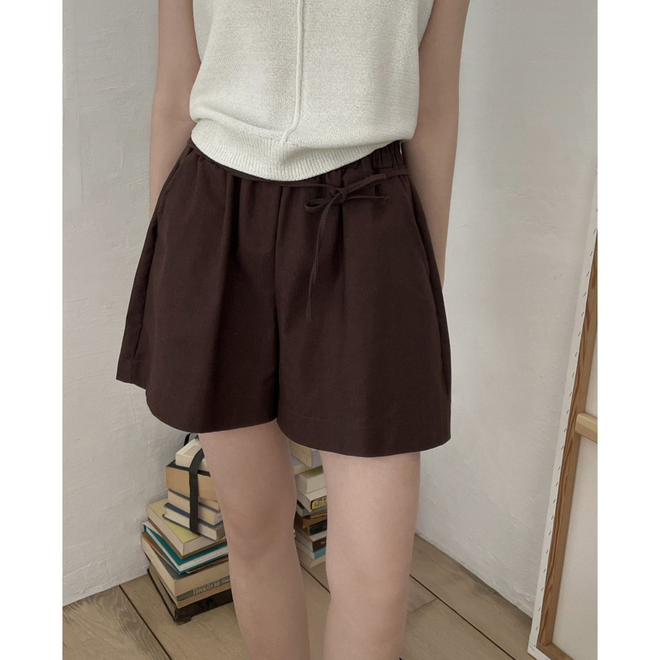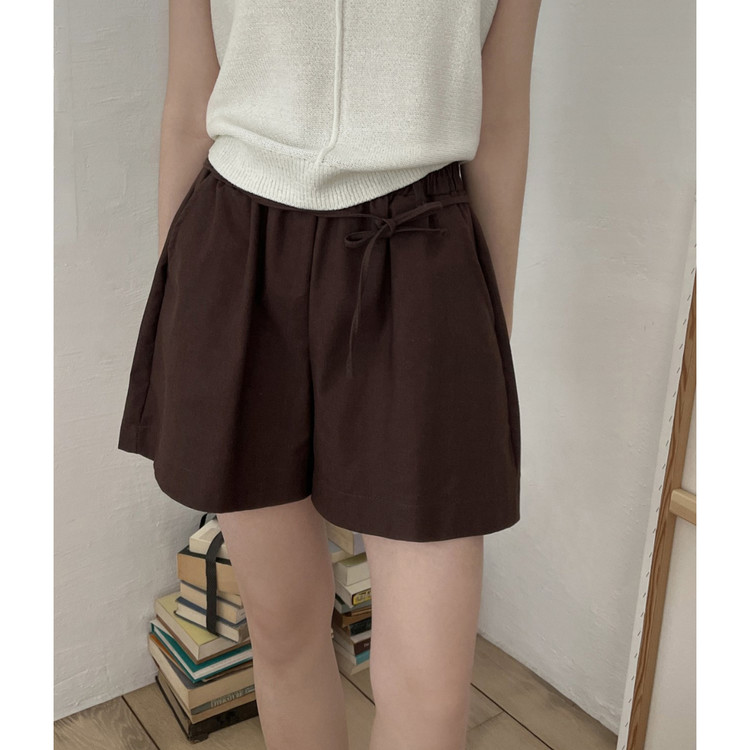 바이오 린넨 밴딩 와이드 숏 반바지