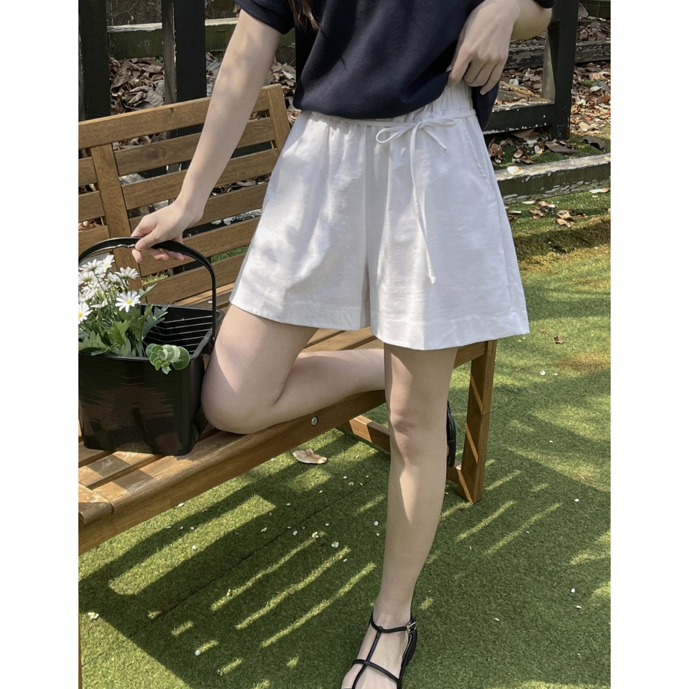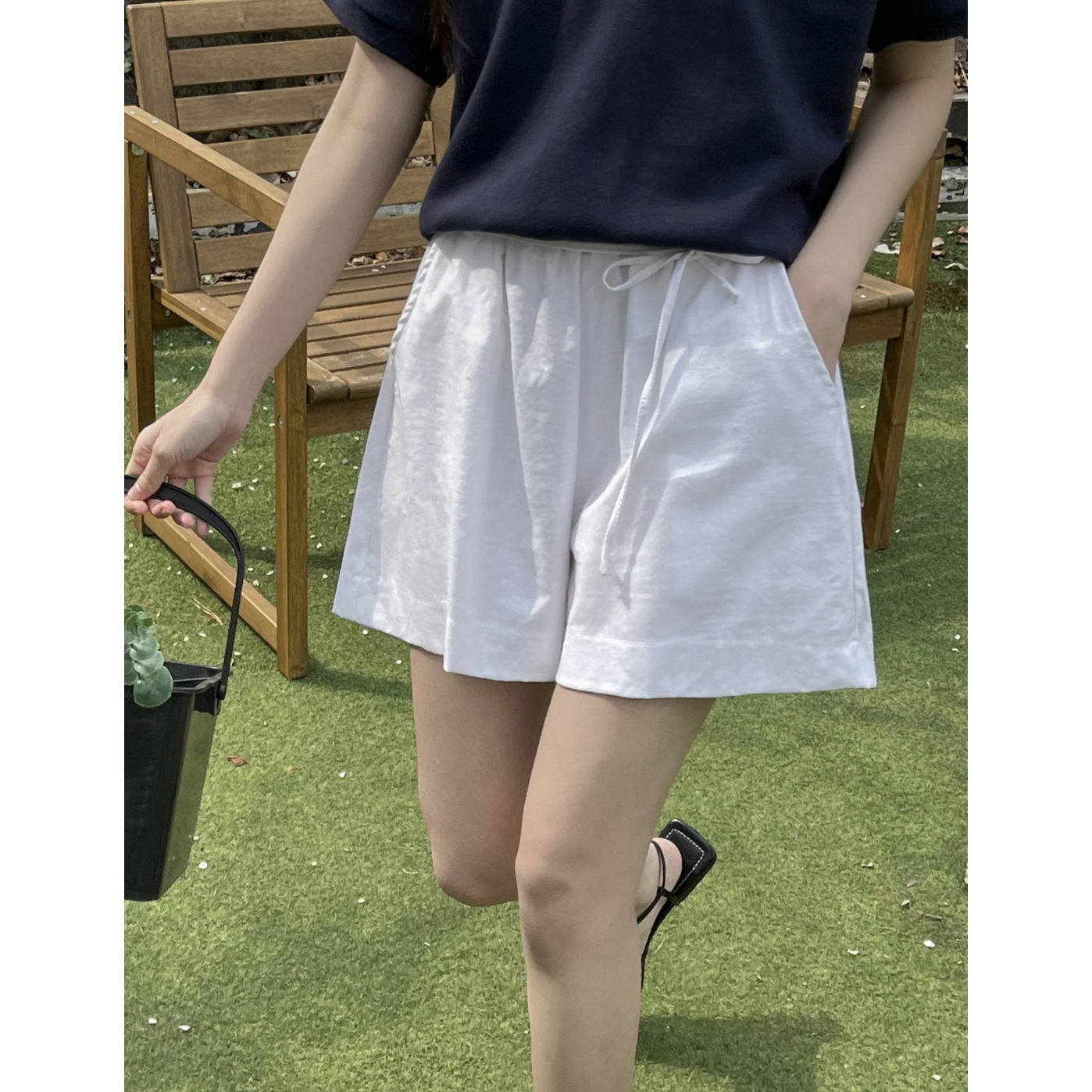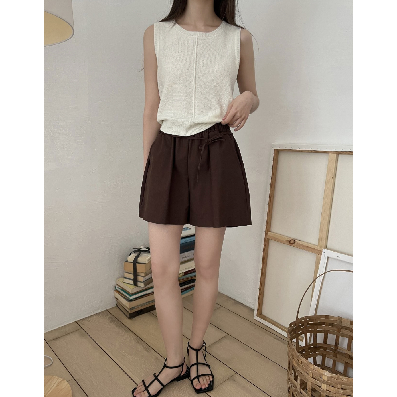 바이오 린넨 밴딩 와이드 숏 반바지