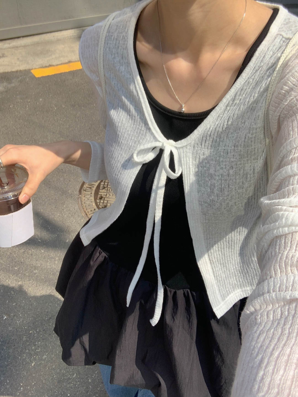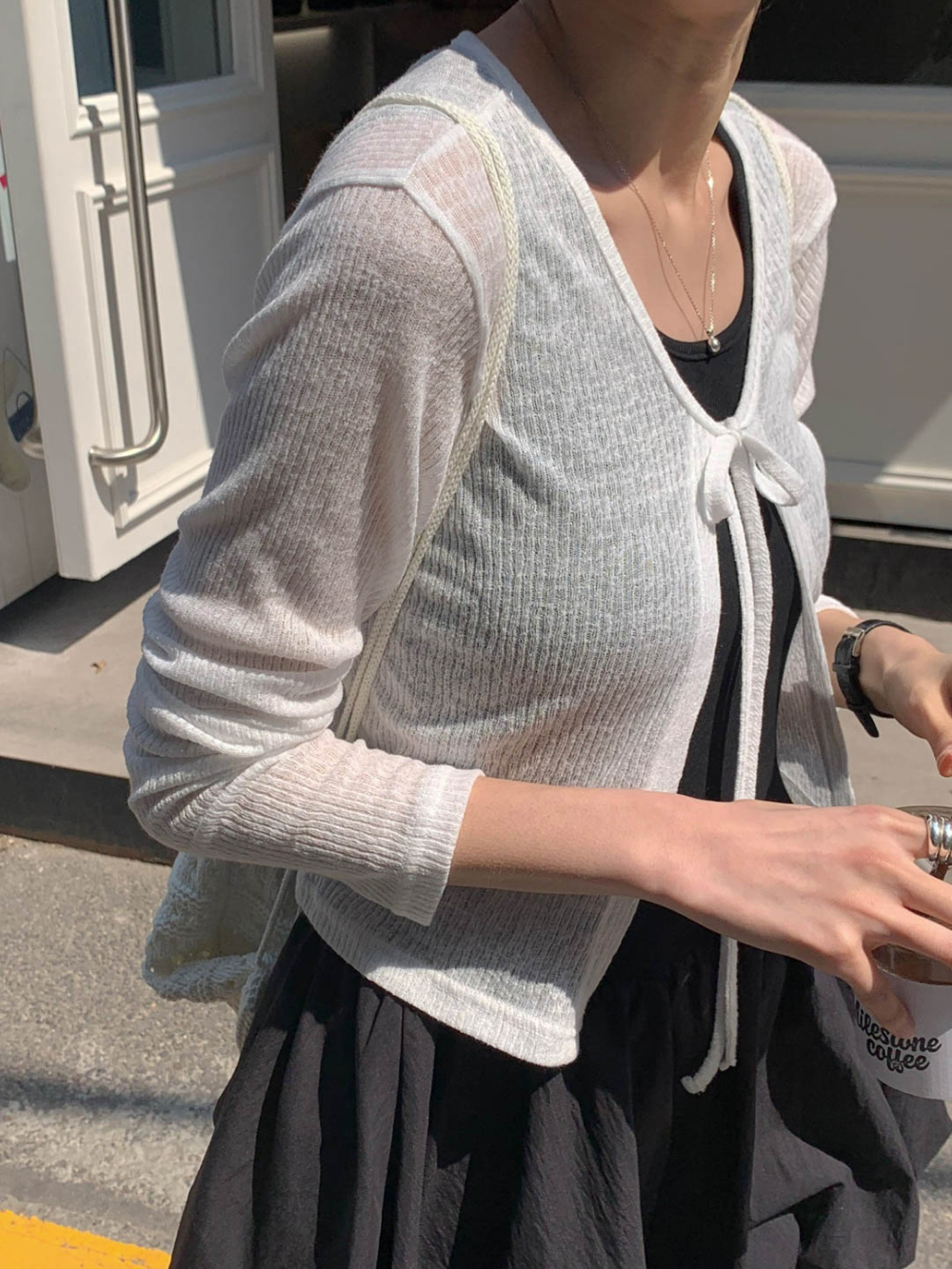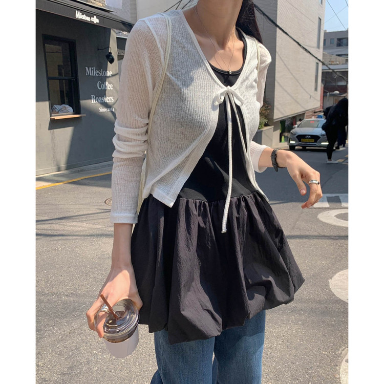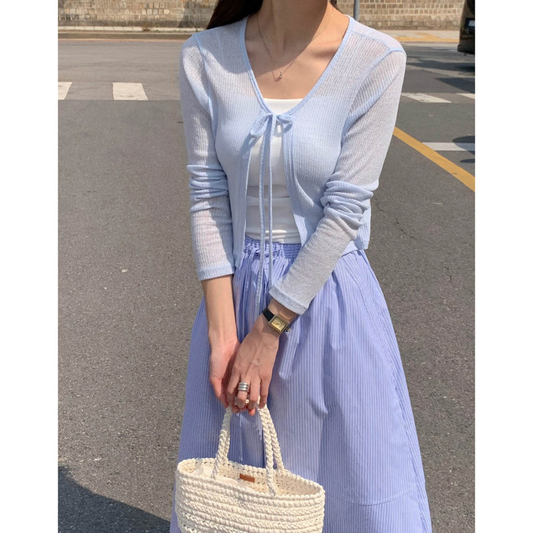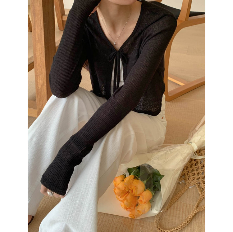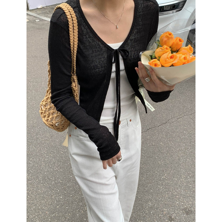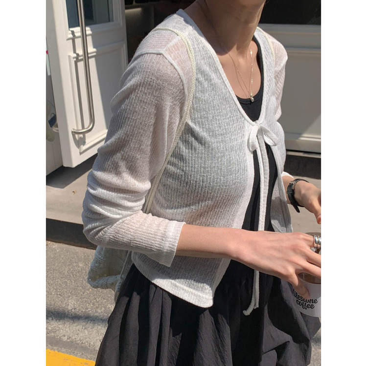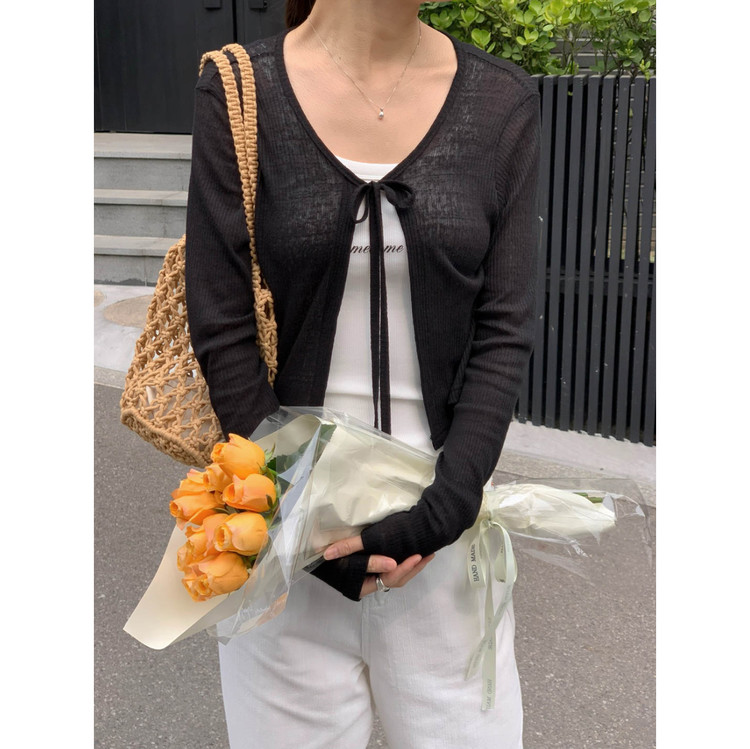 바로발송 린디 시스루 볼레로 리본 가디건