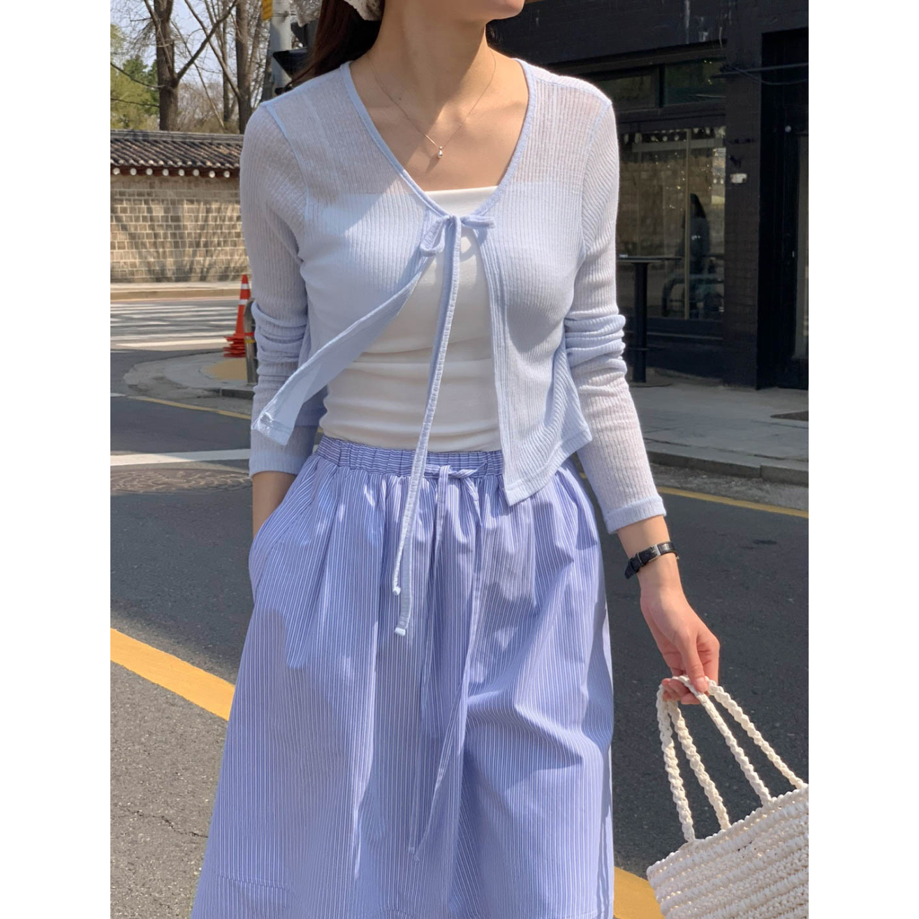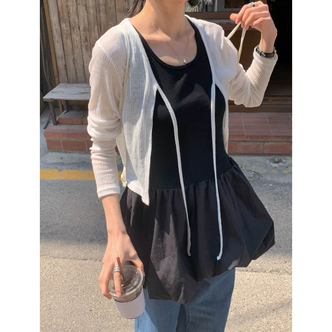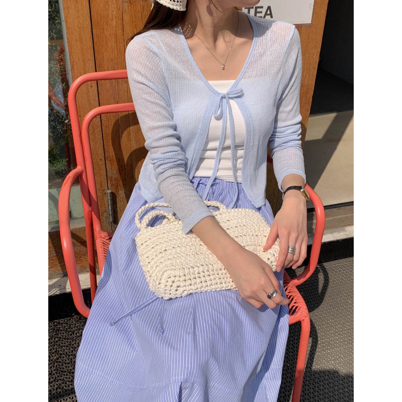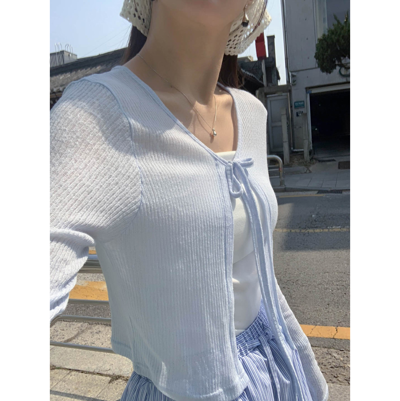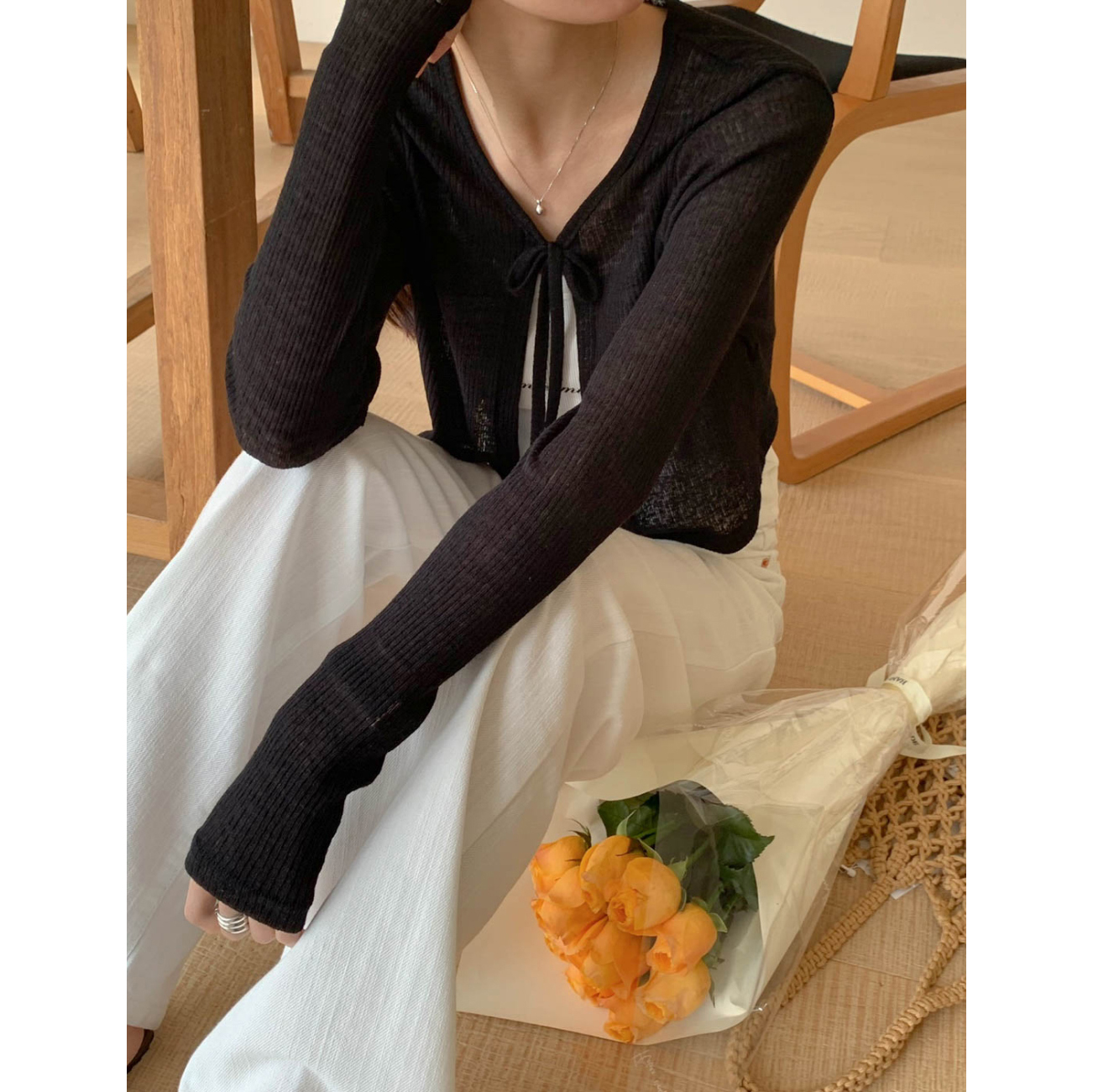 바로발송 린디 시스루 볼레로 리본 가디건