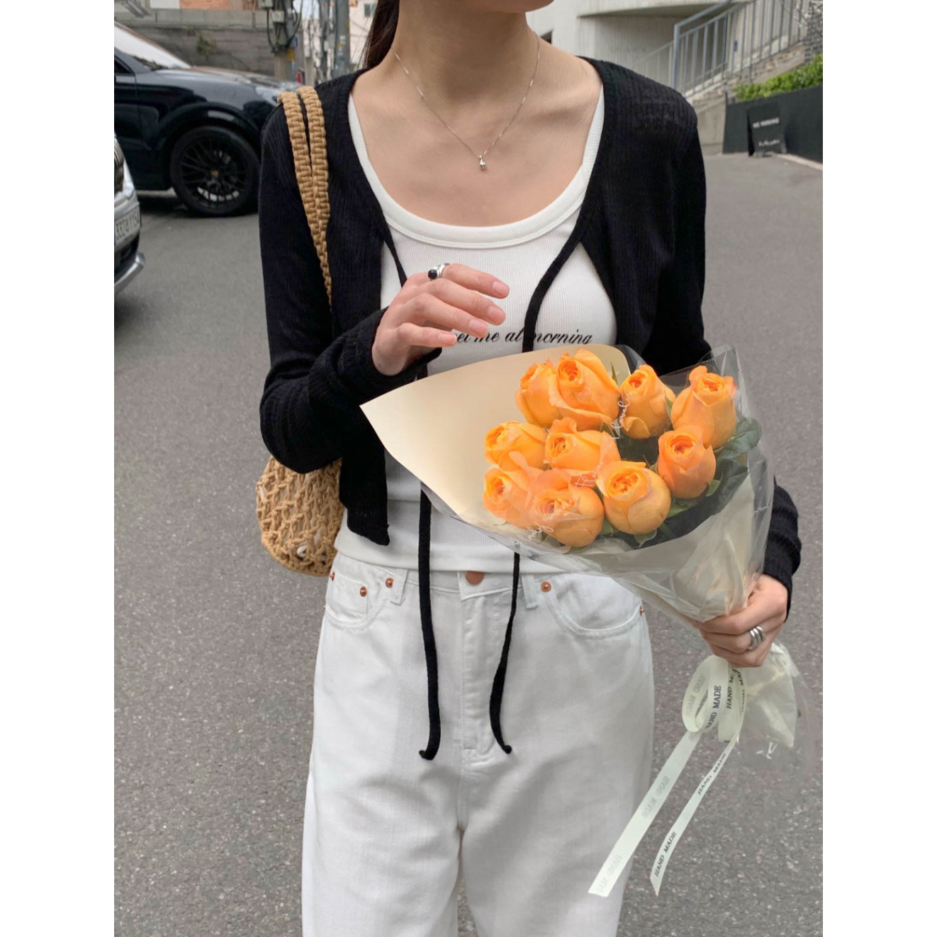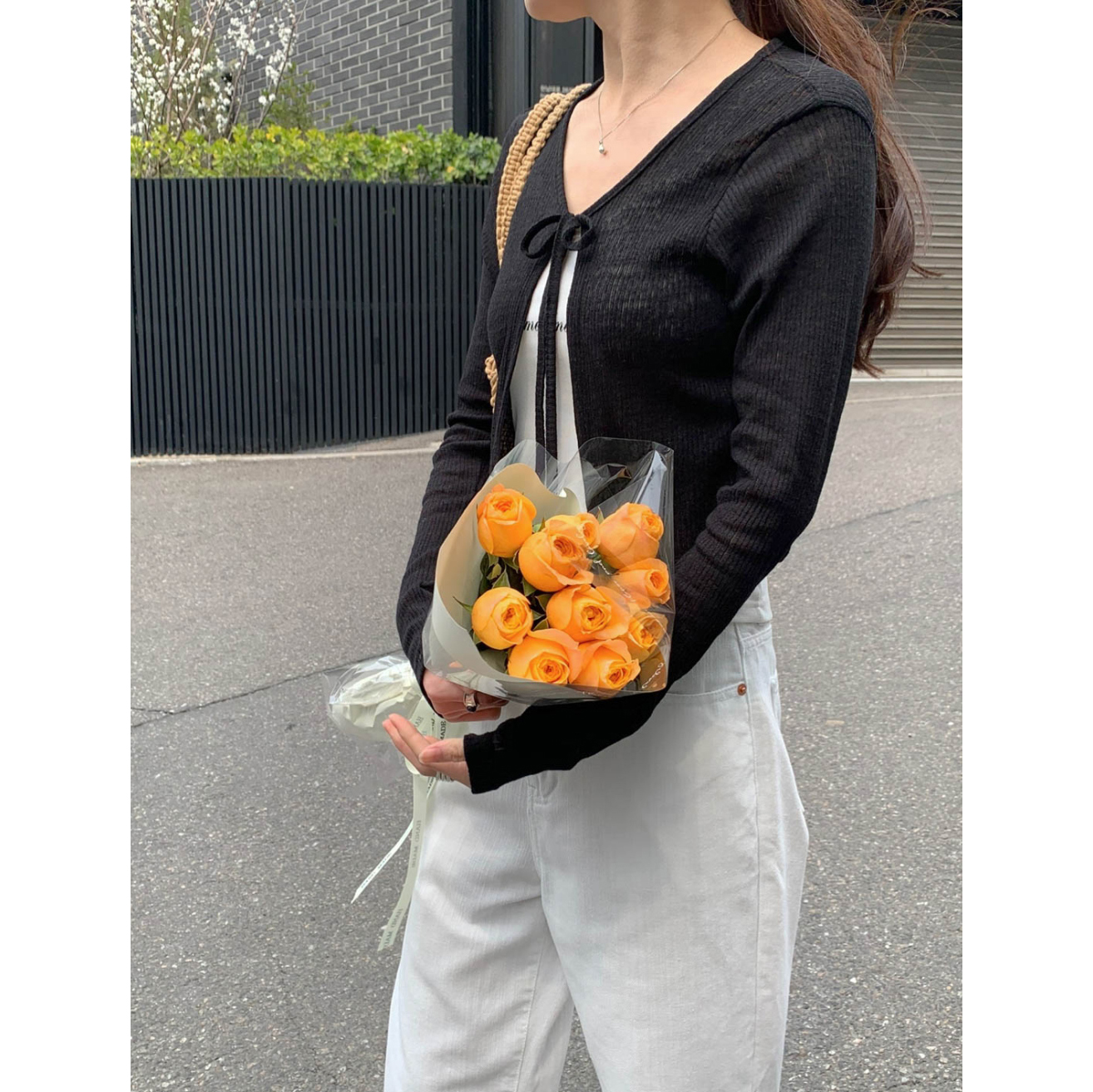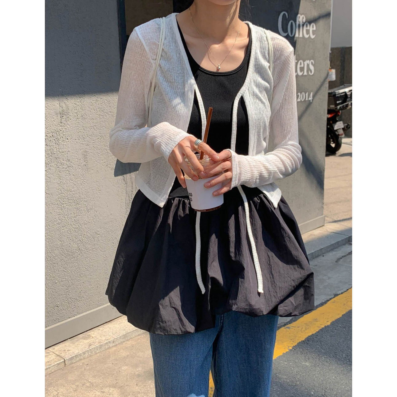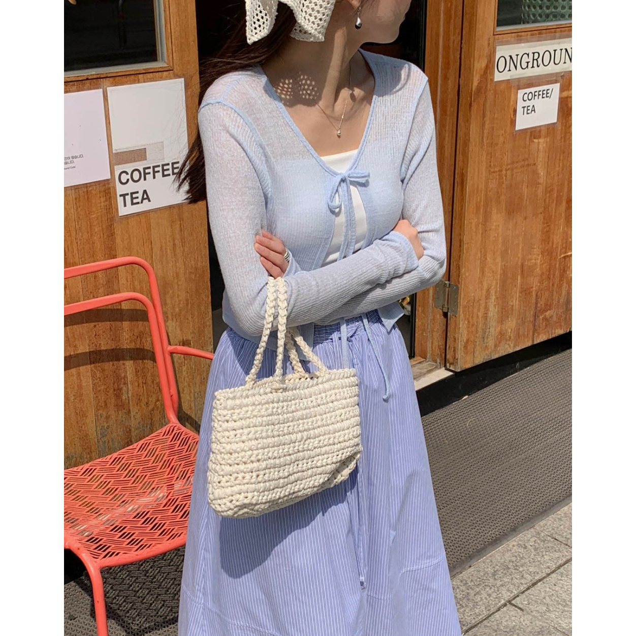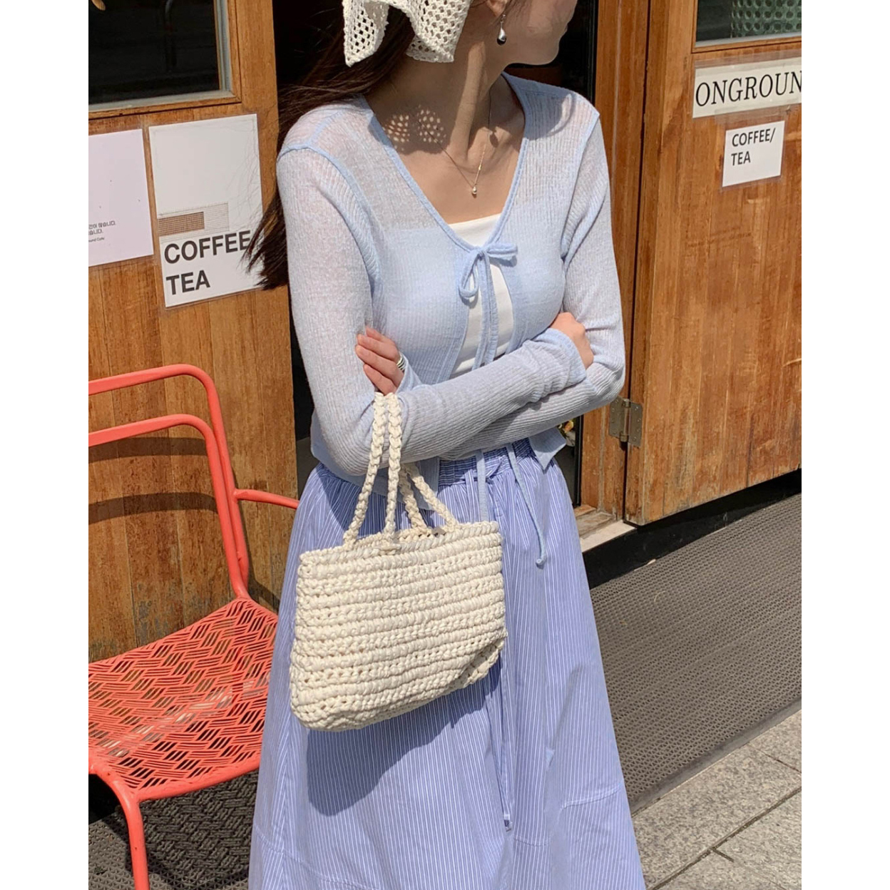 바로발송 린디 시스루 볼레로 리본 가디건