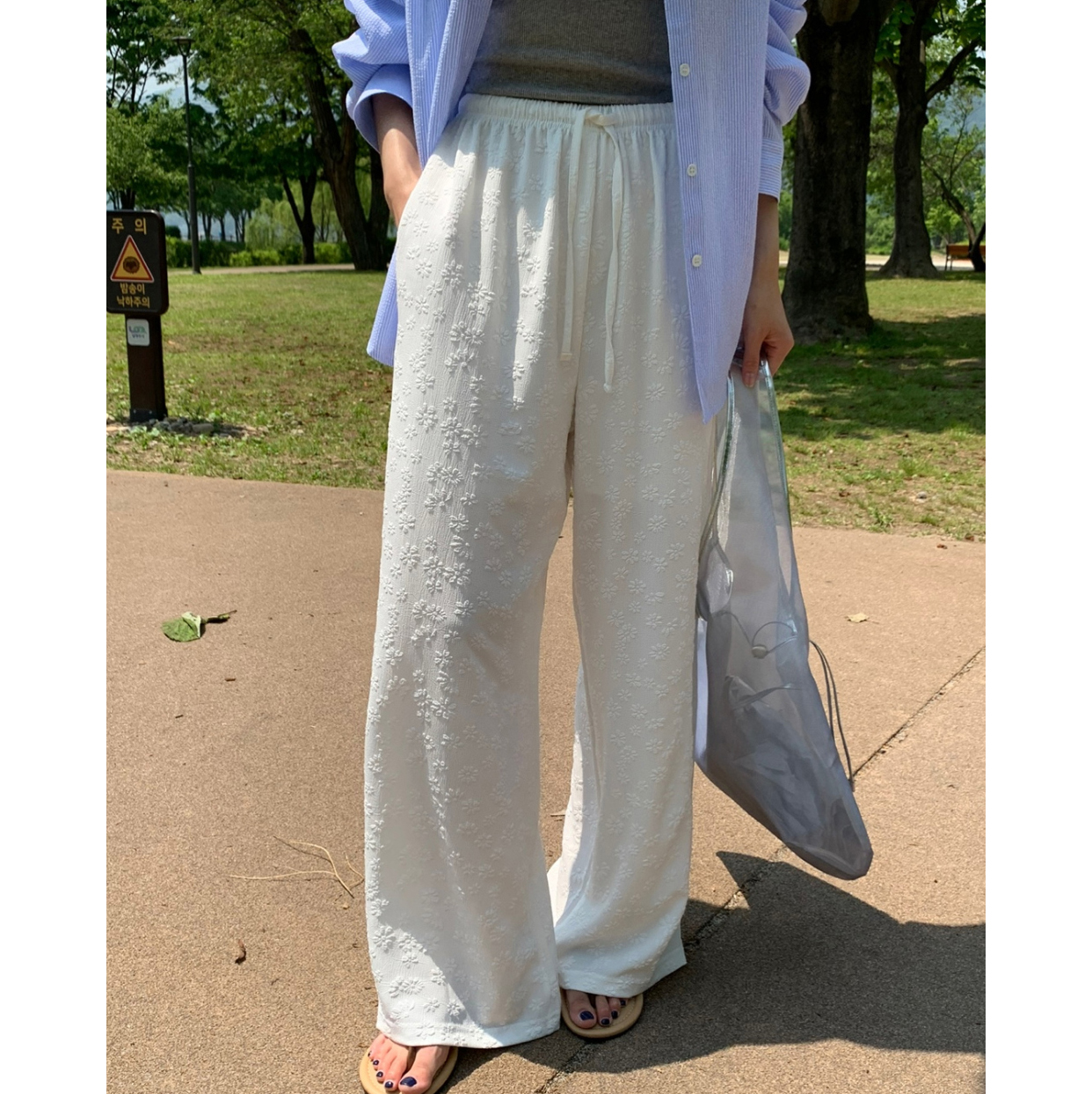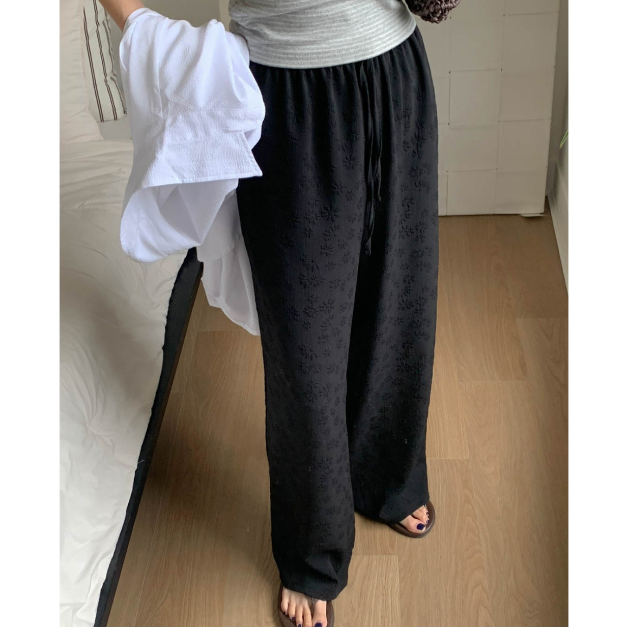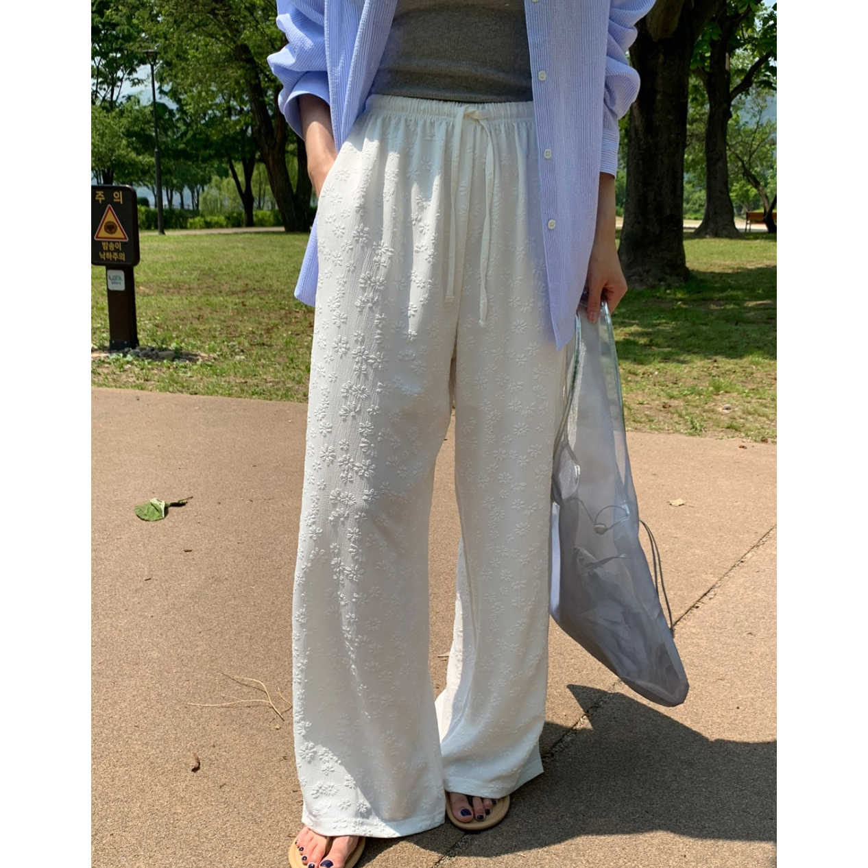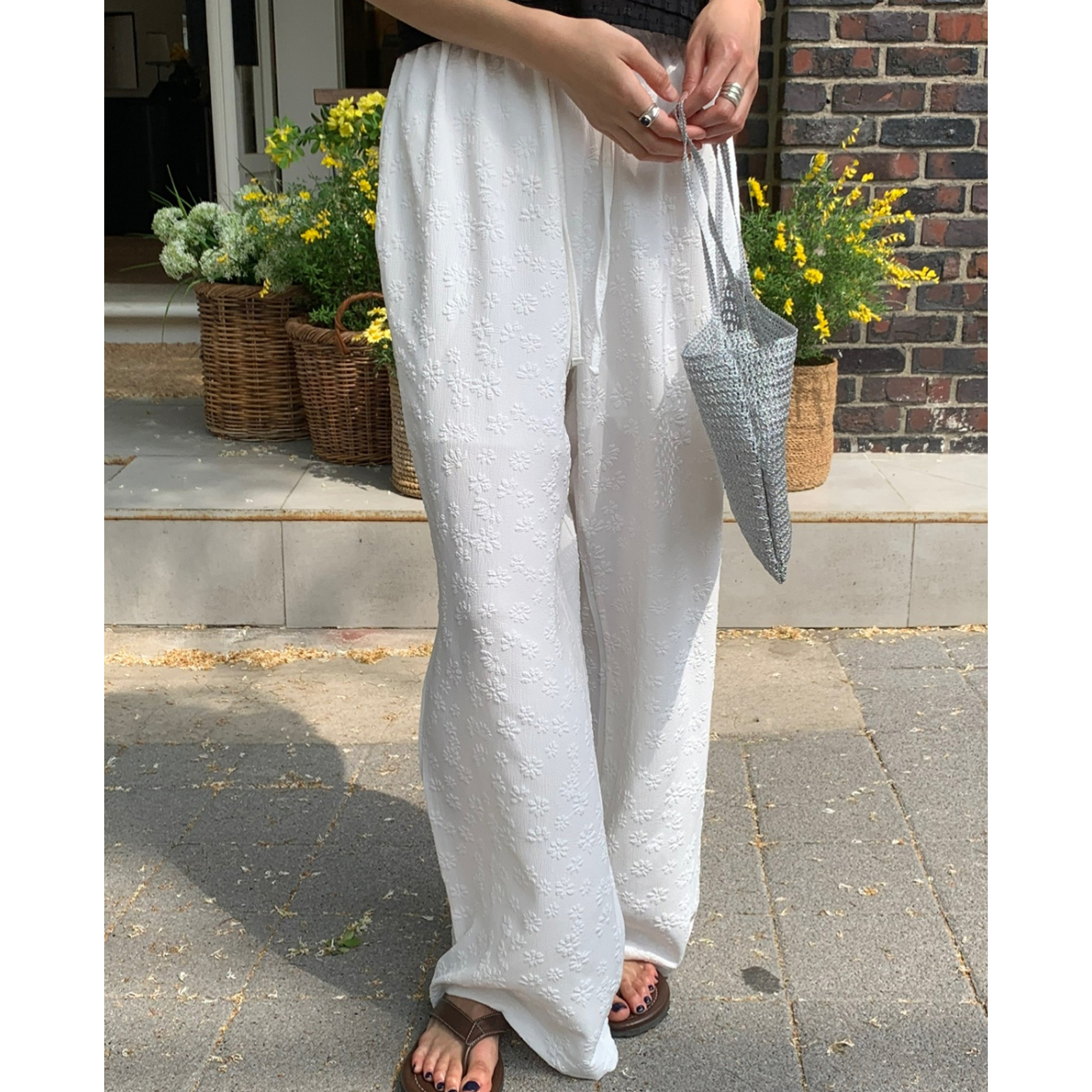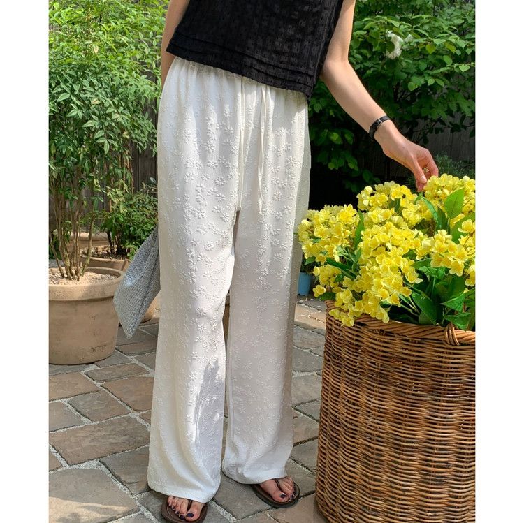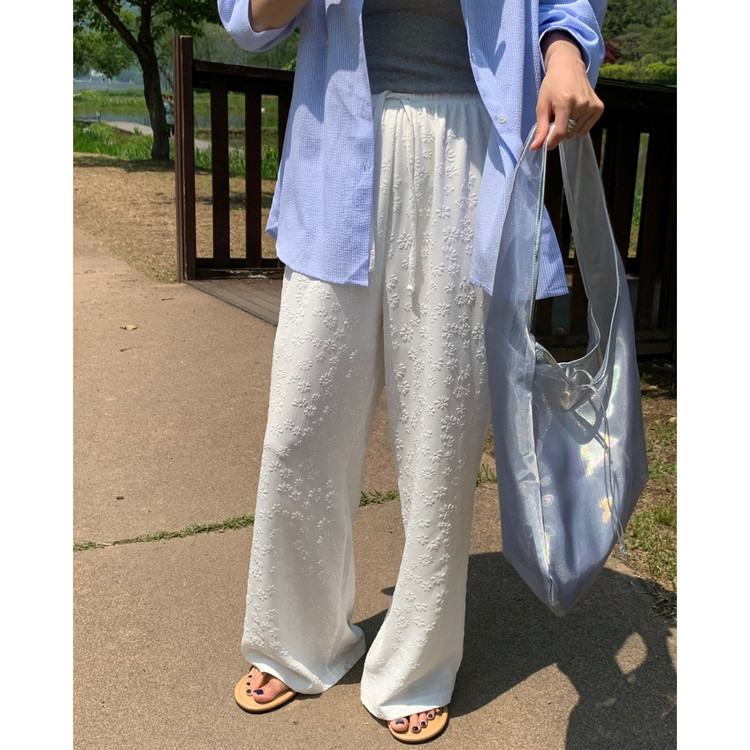보라보라 플라워 엠보 밴딩 팬츠 여름바지
