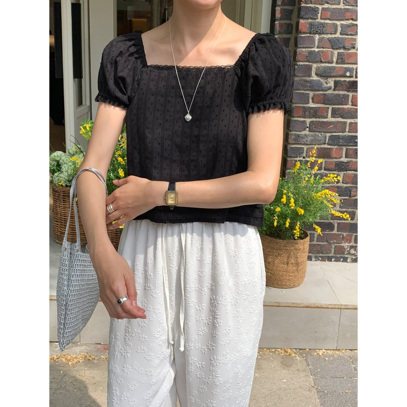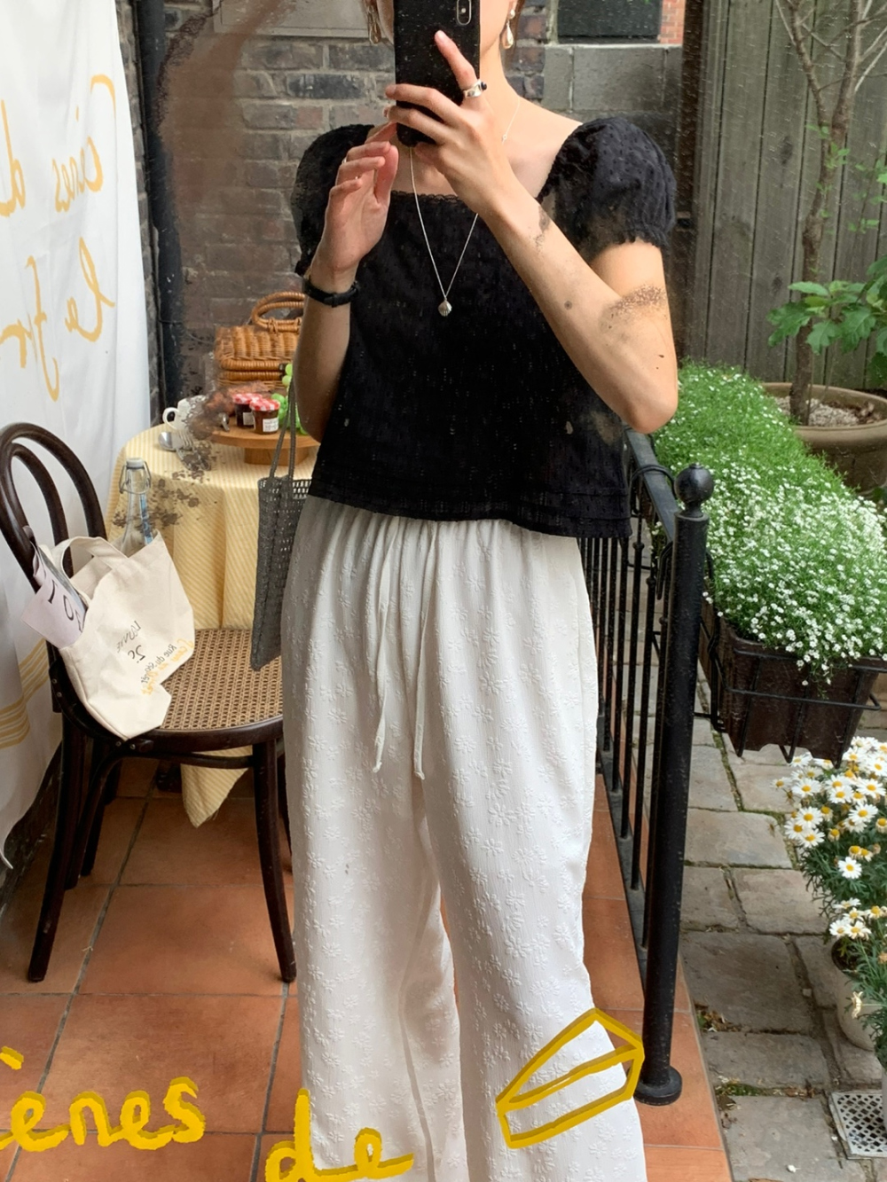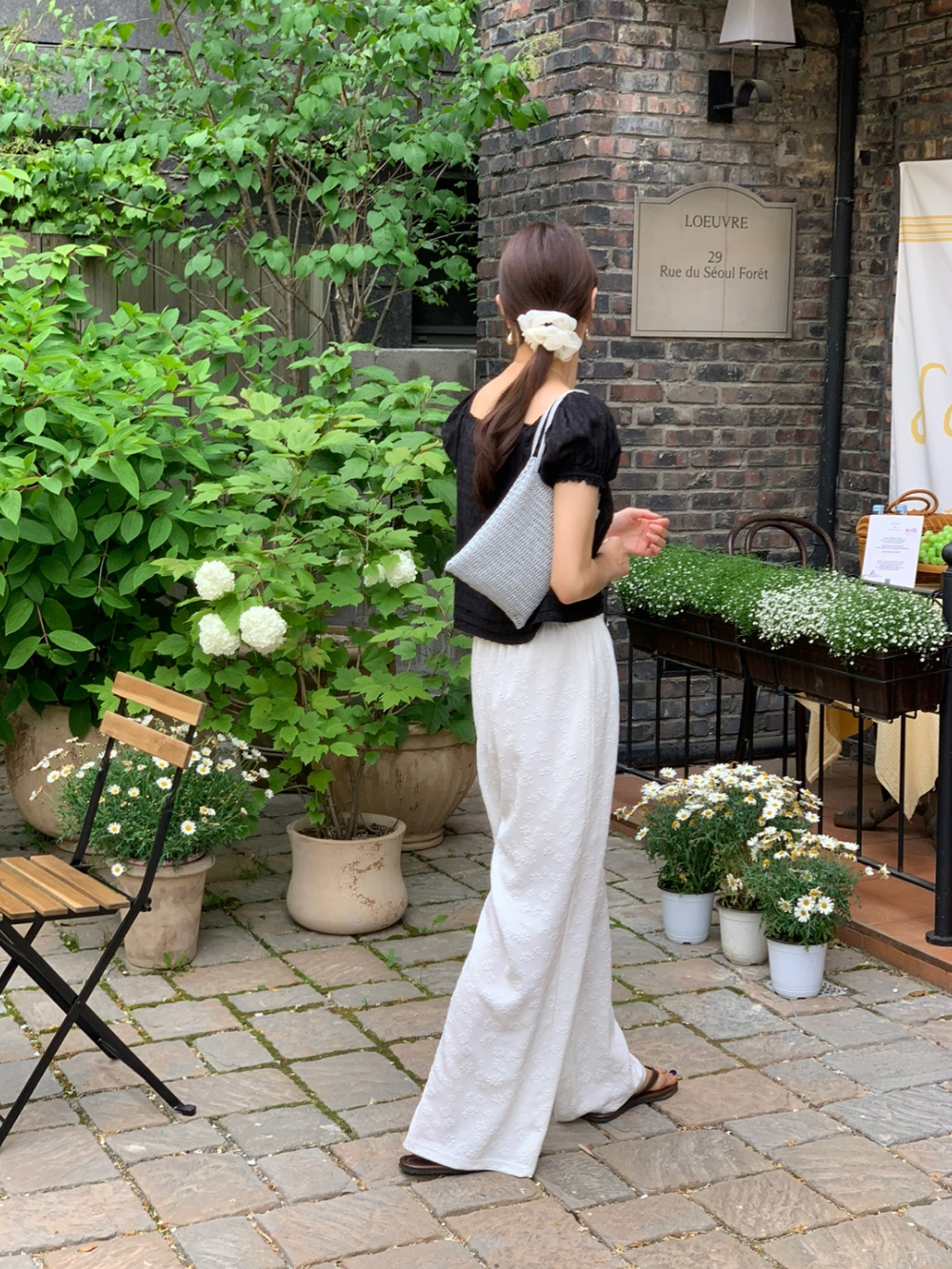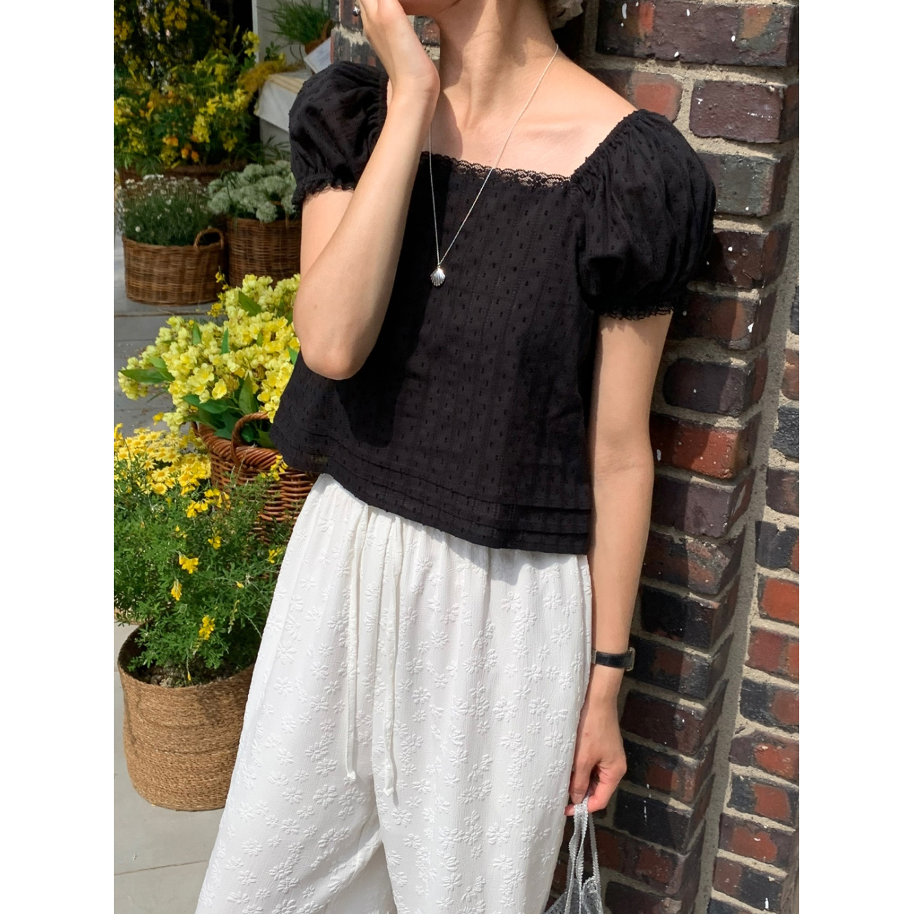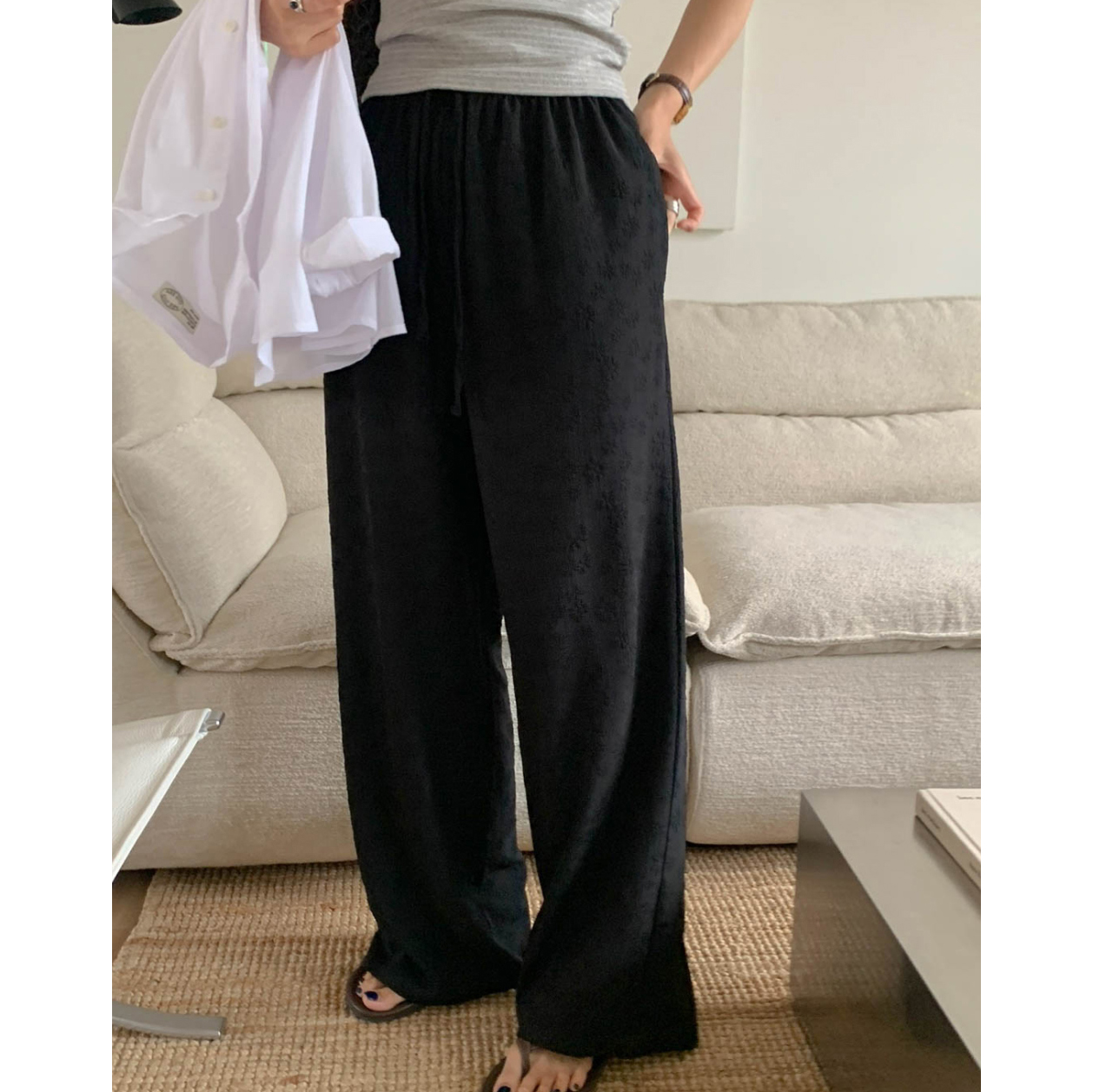 보라보라 플라워 엠보 밴딩 팬츠 여름바지