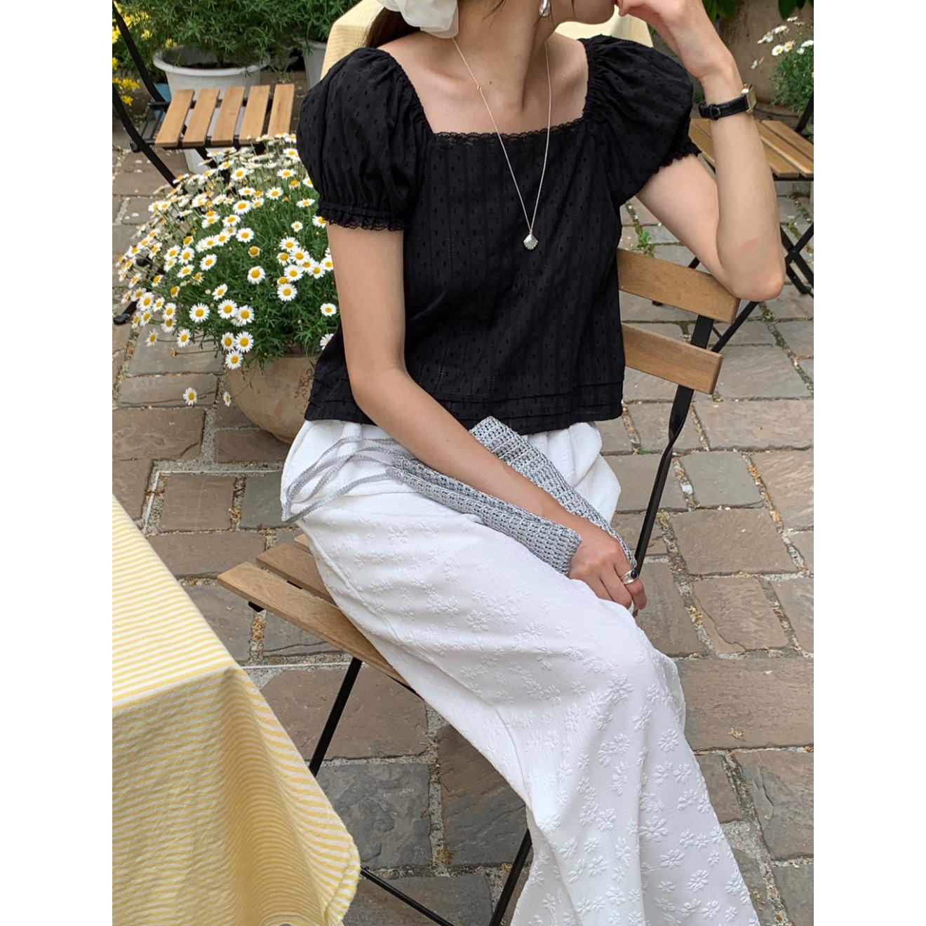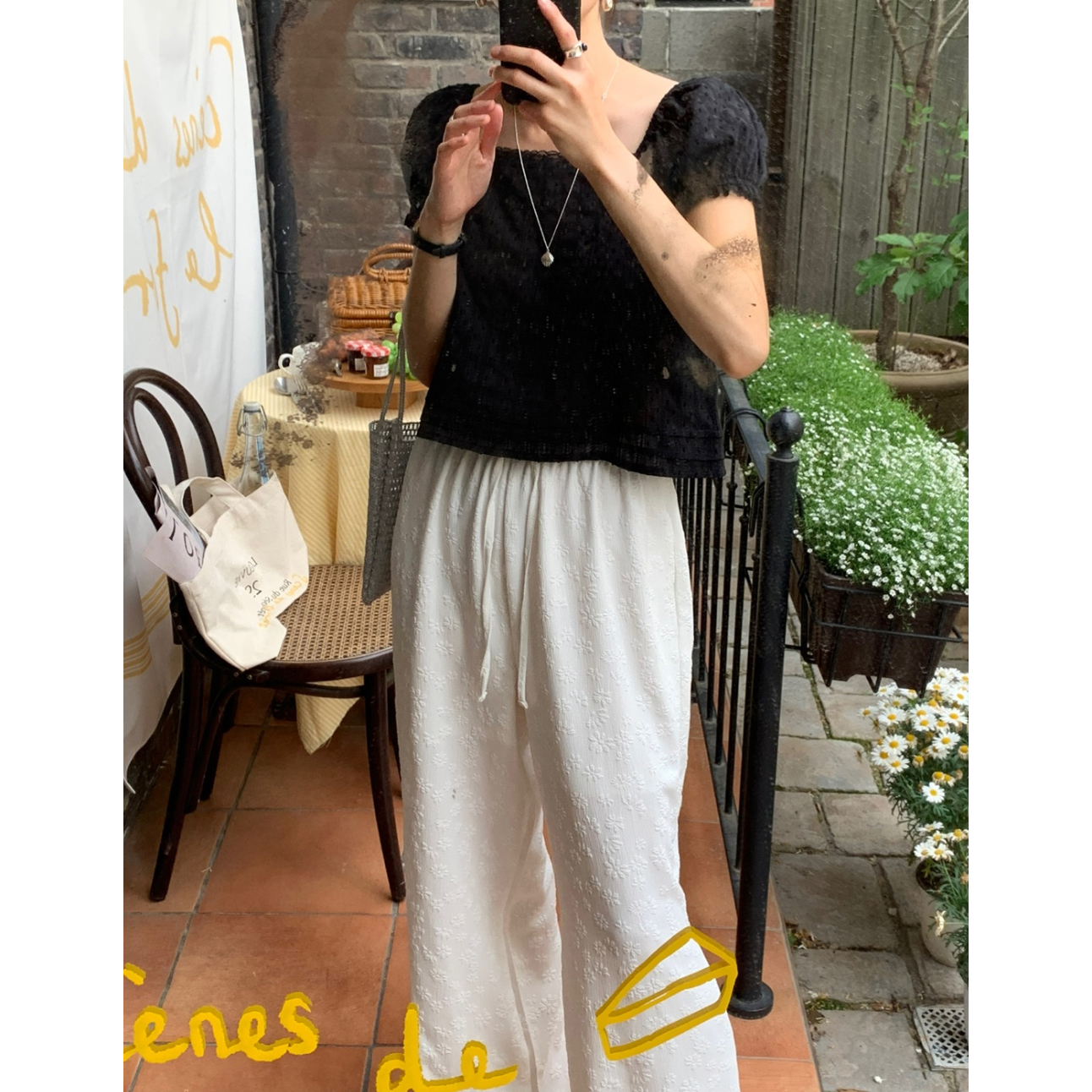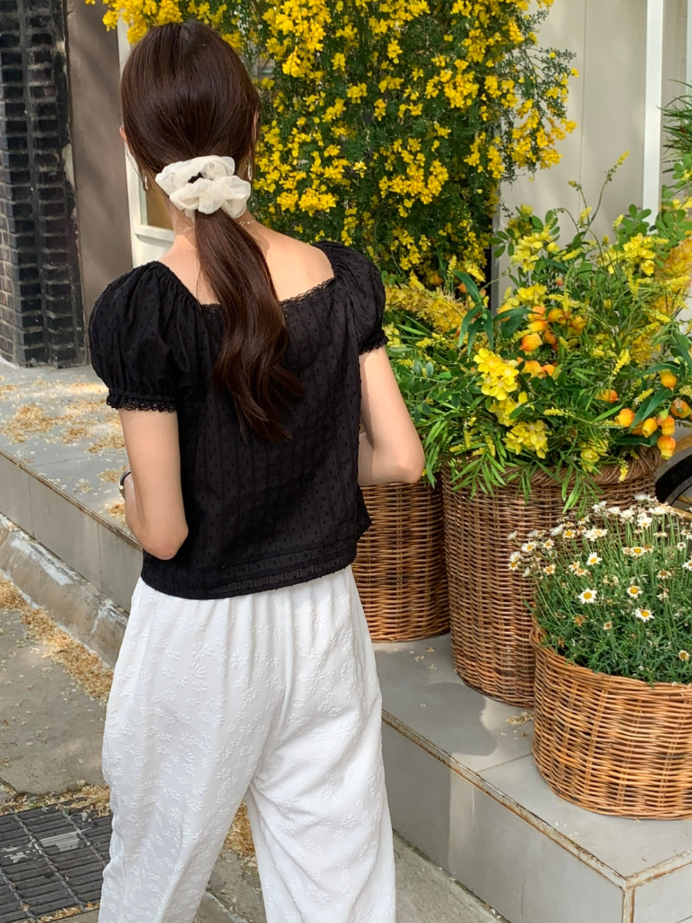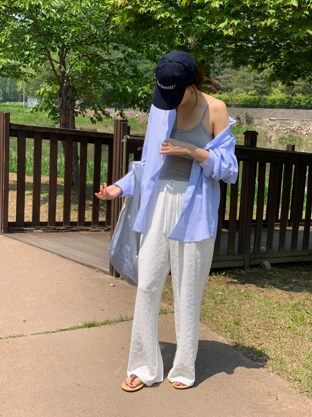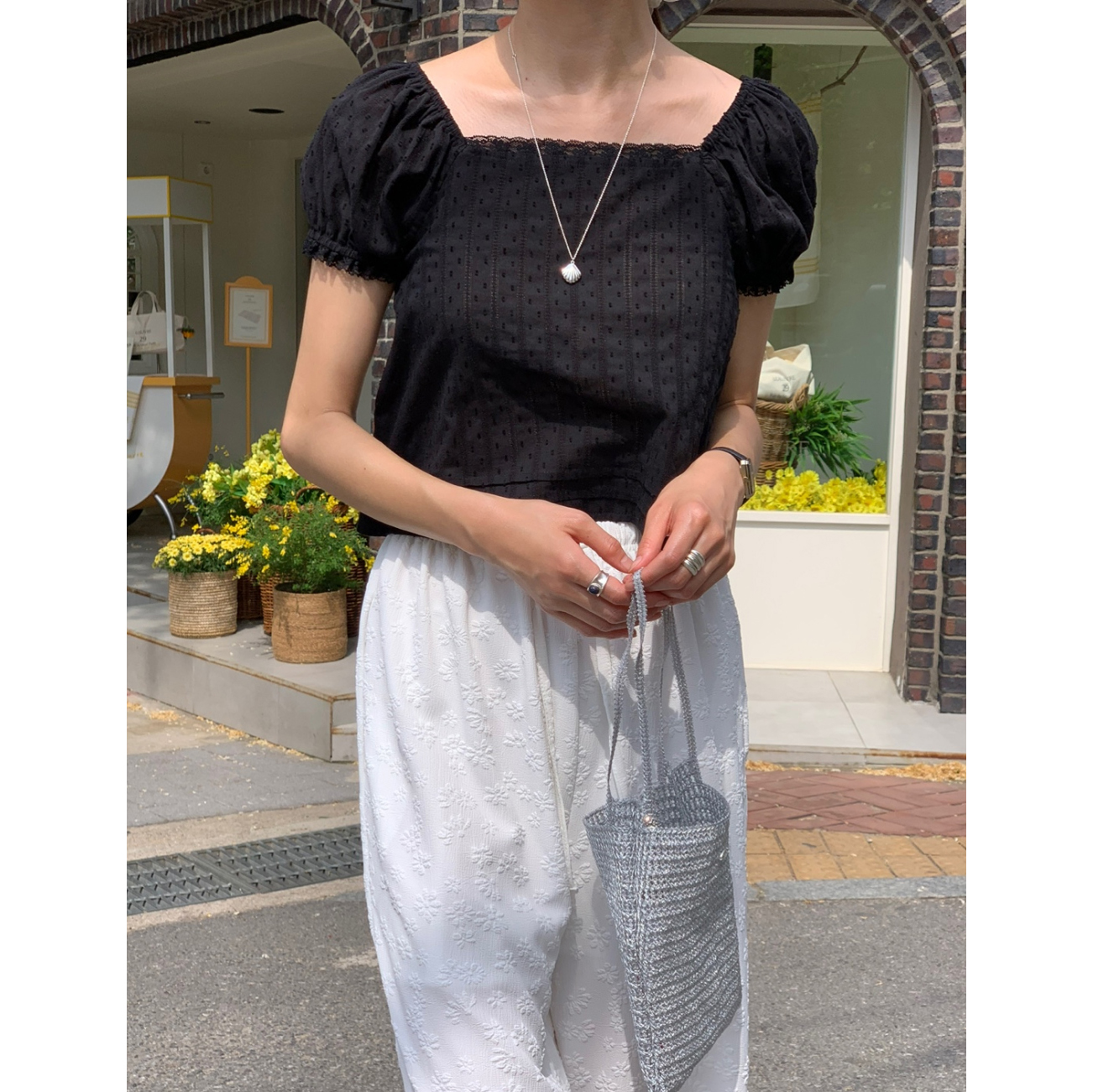 보라보라 플라워 엠보 밴딩 팬츠 여름바지