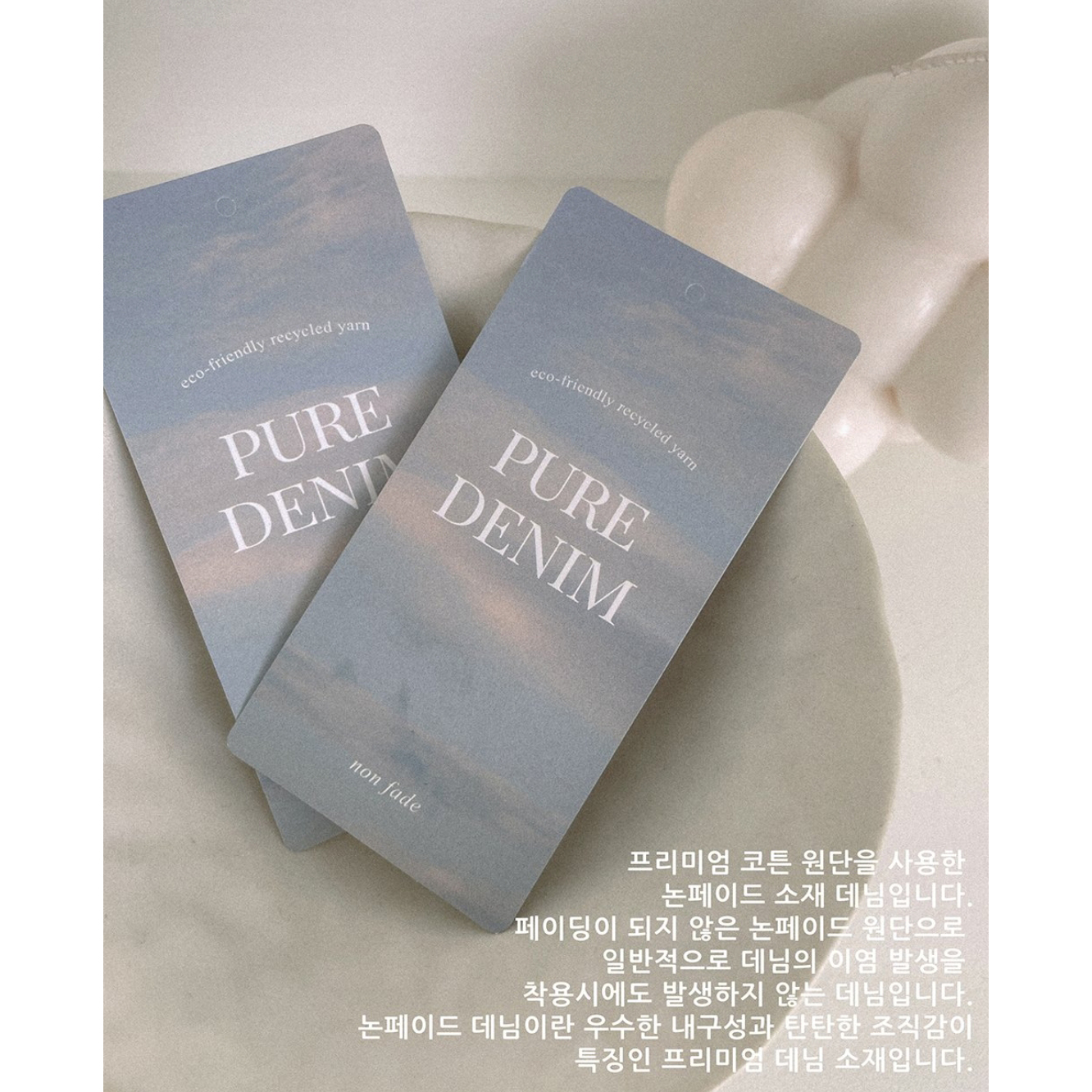 데님 원단은 염료 특성상 물빠짐 또는 이염이 있을 수 있습니다
