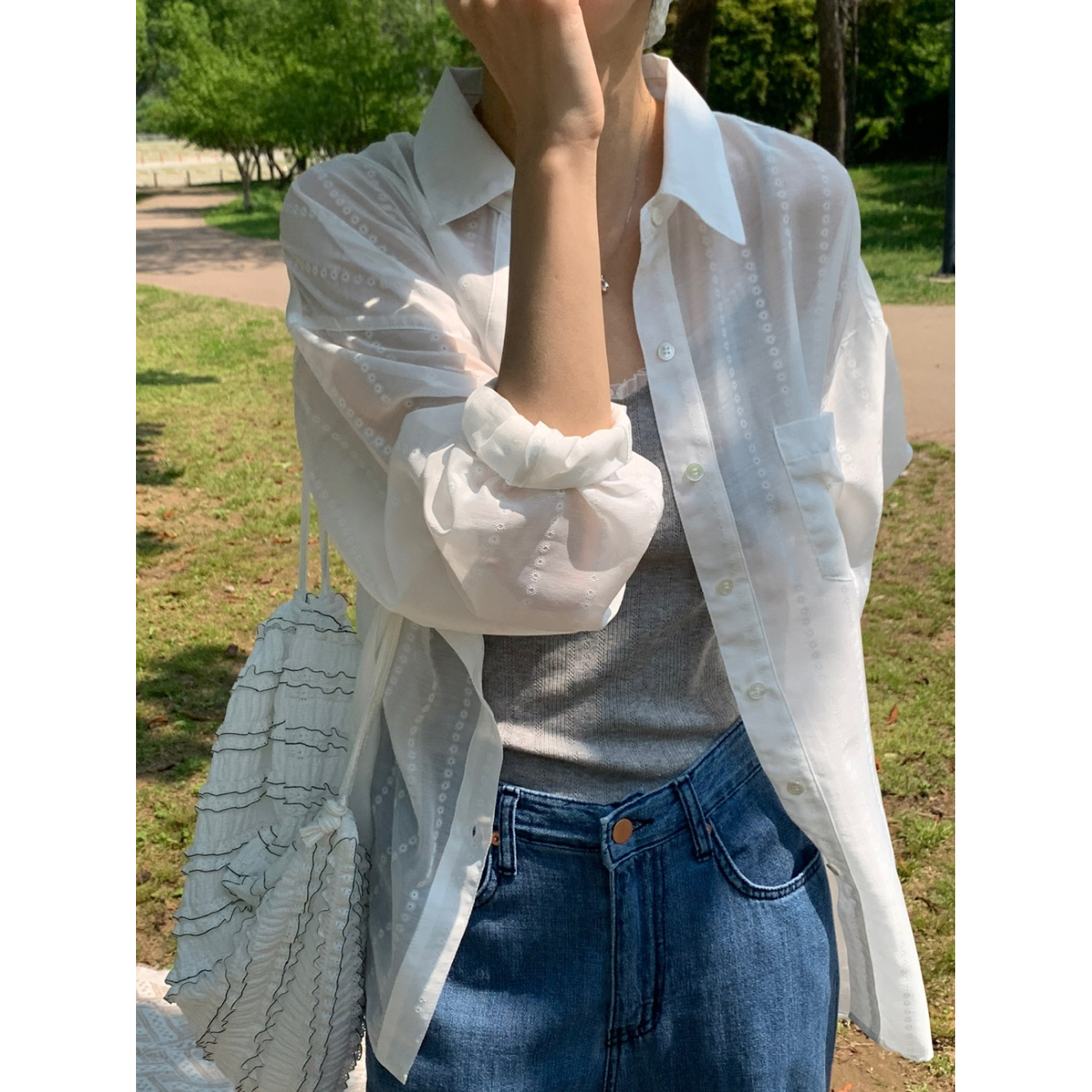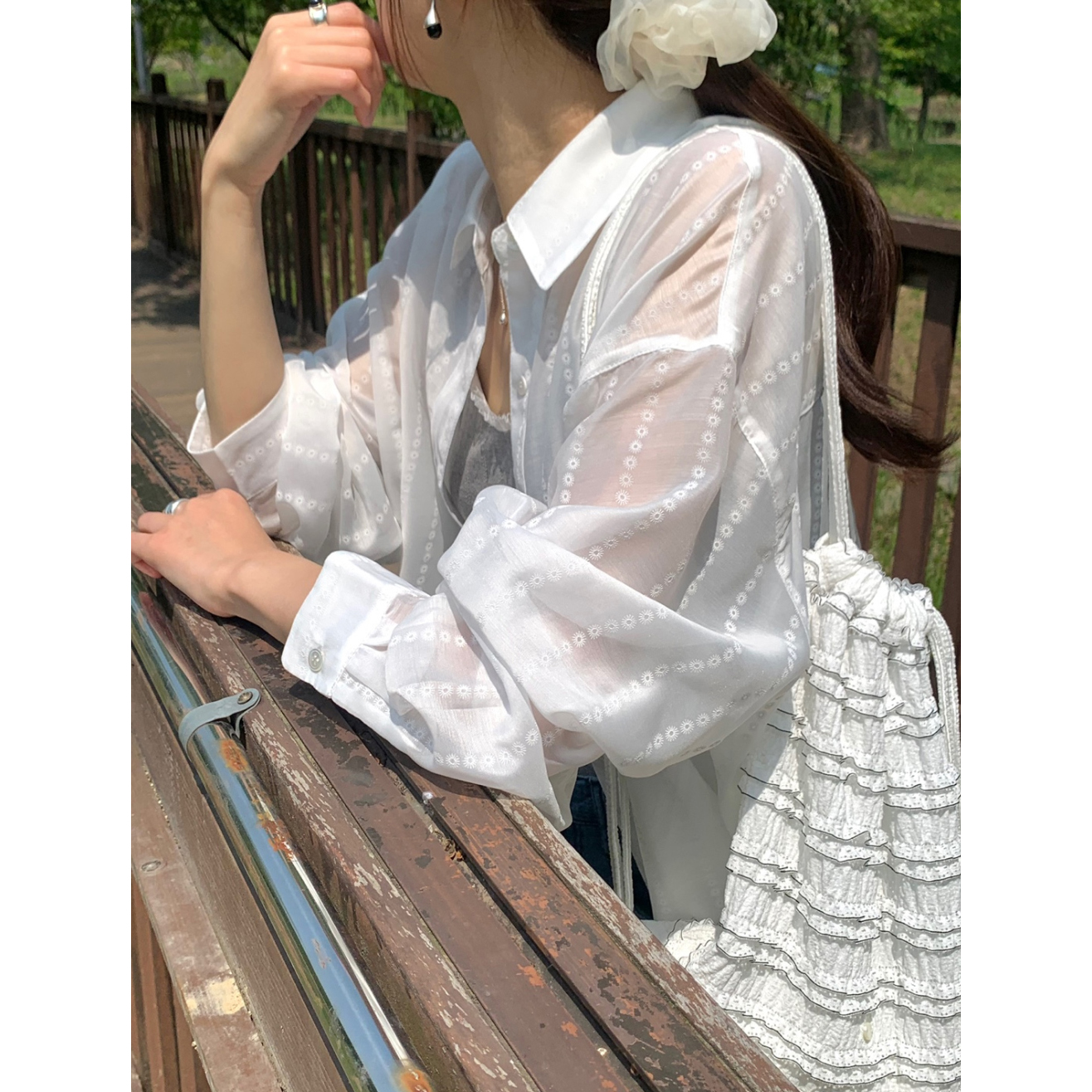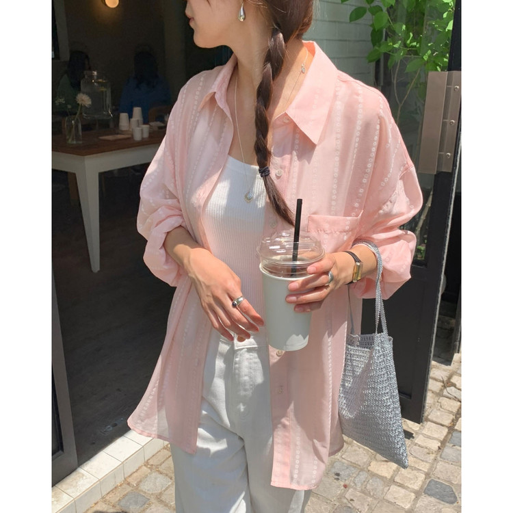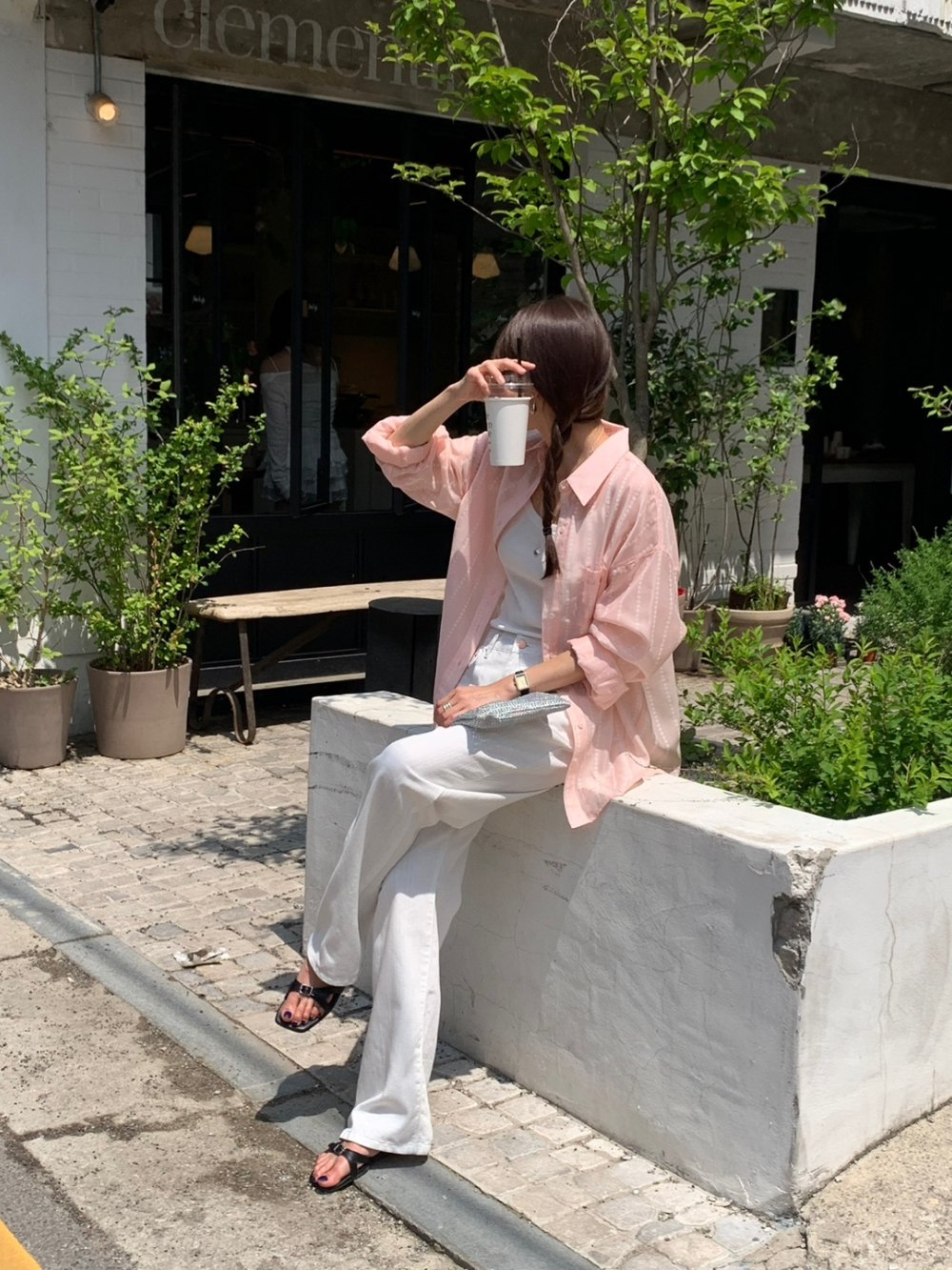플라워 시스루 박스핏 여름 커버업 셔츠