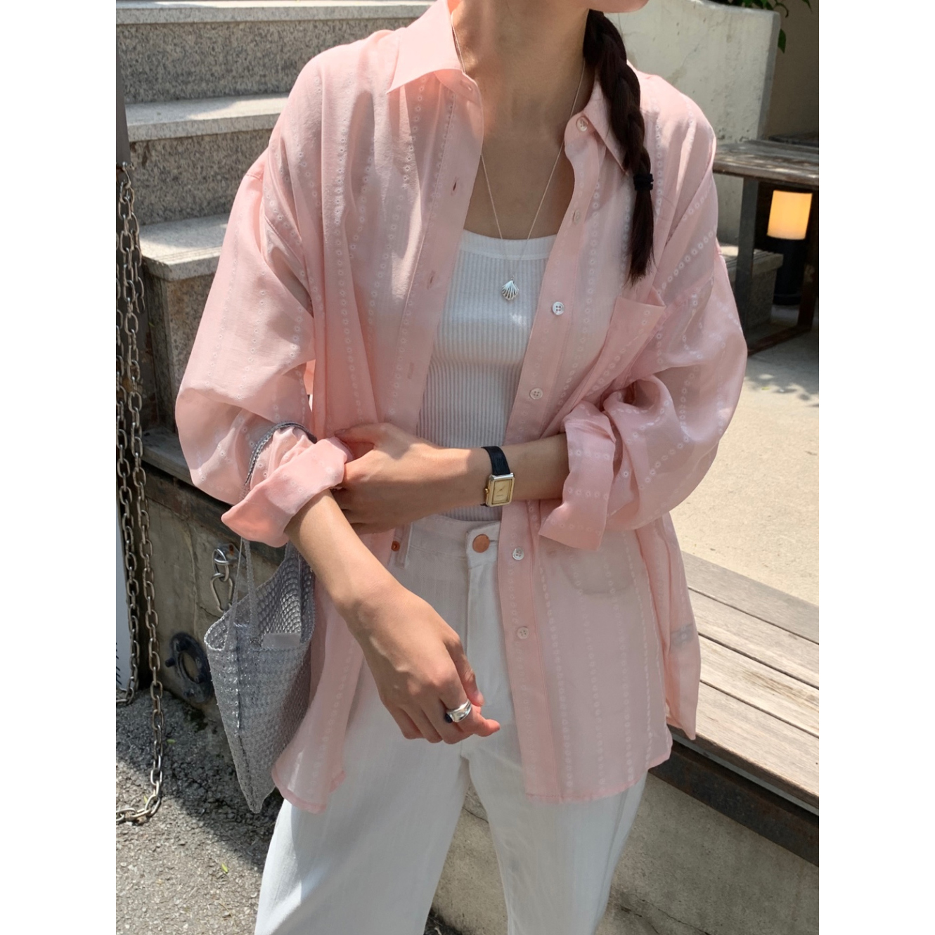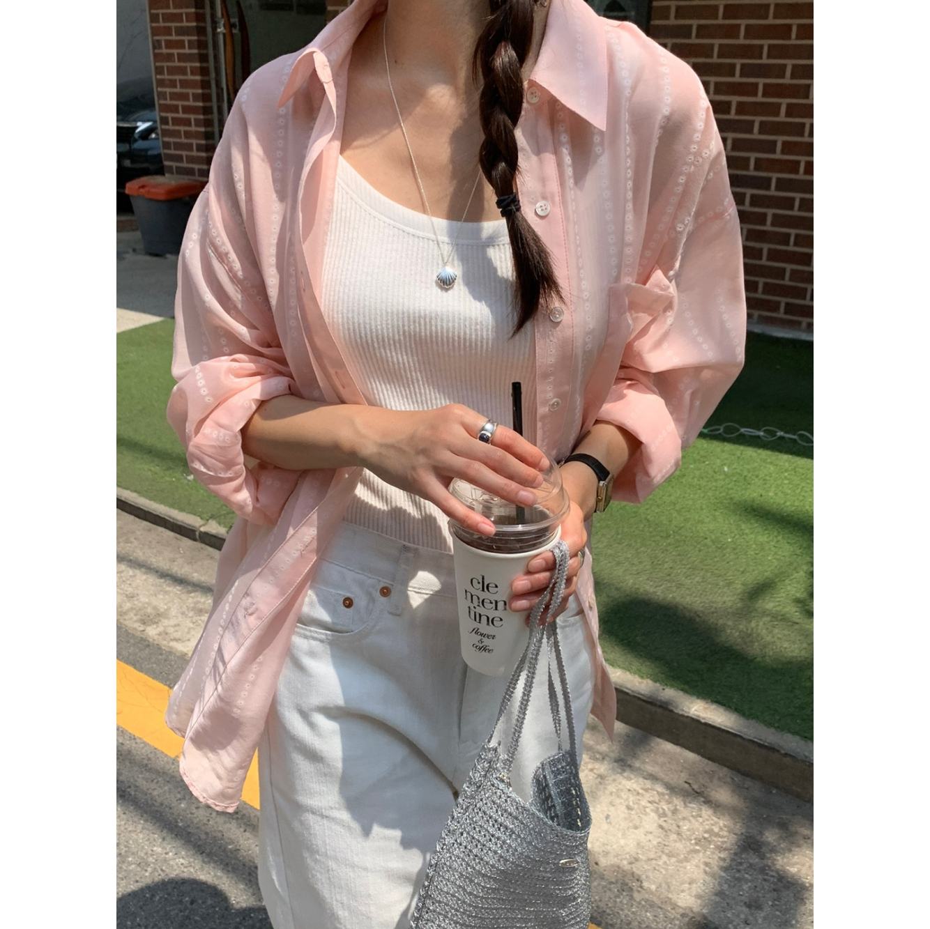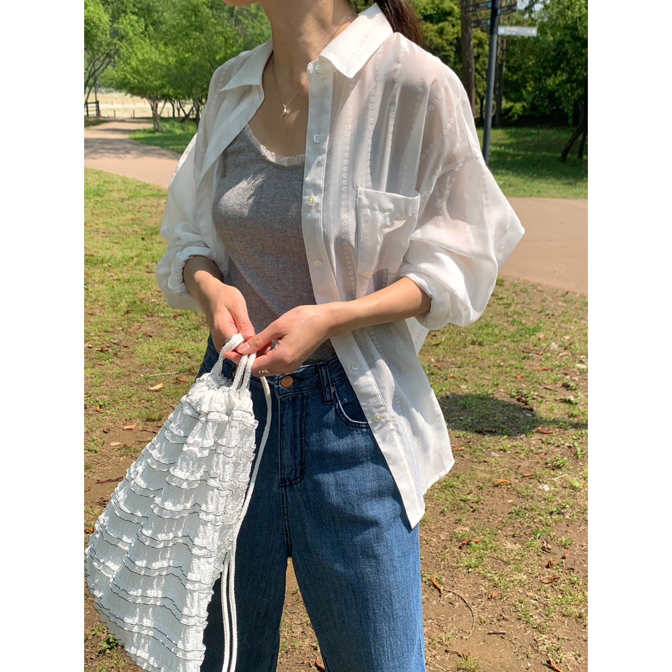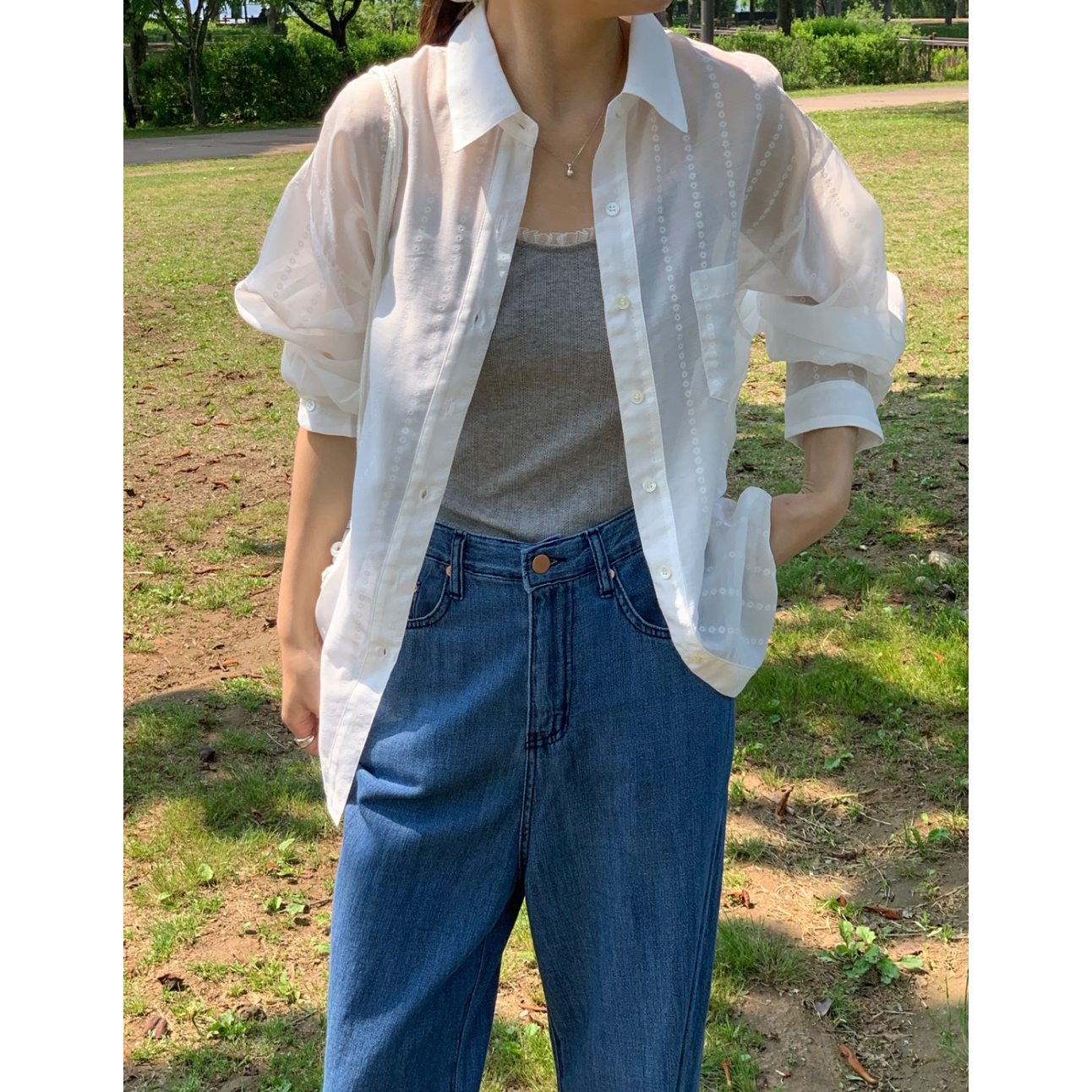 플라워 시스루 박스핏 여름 커버업 셔츠