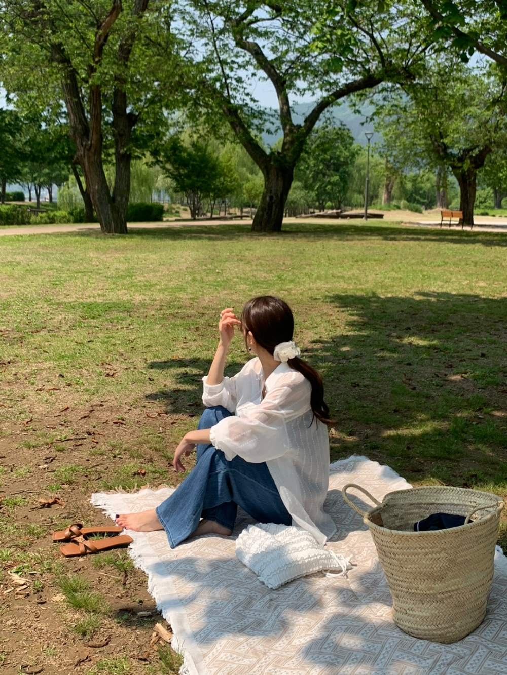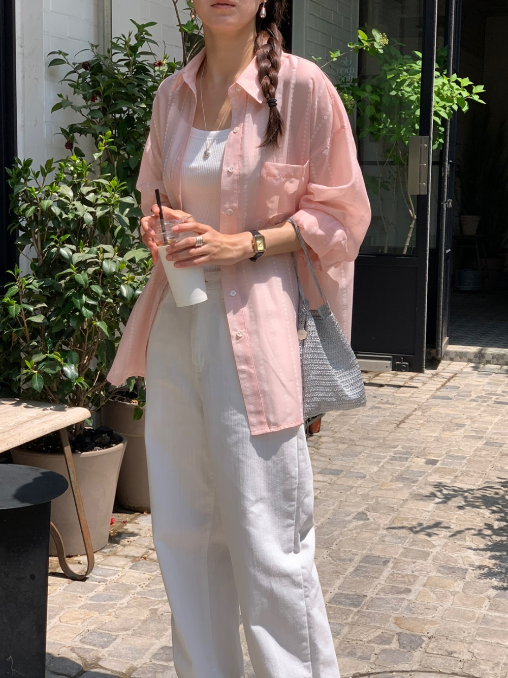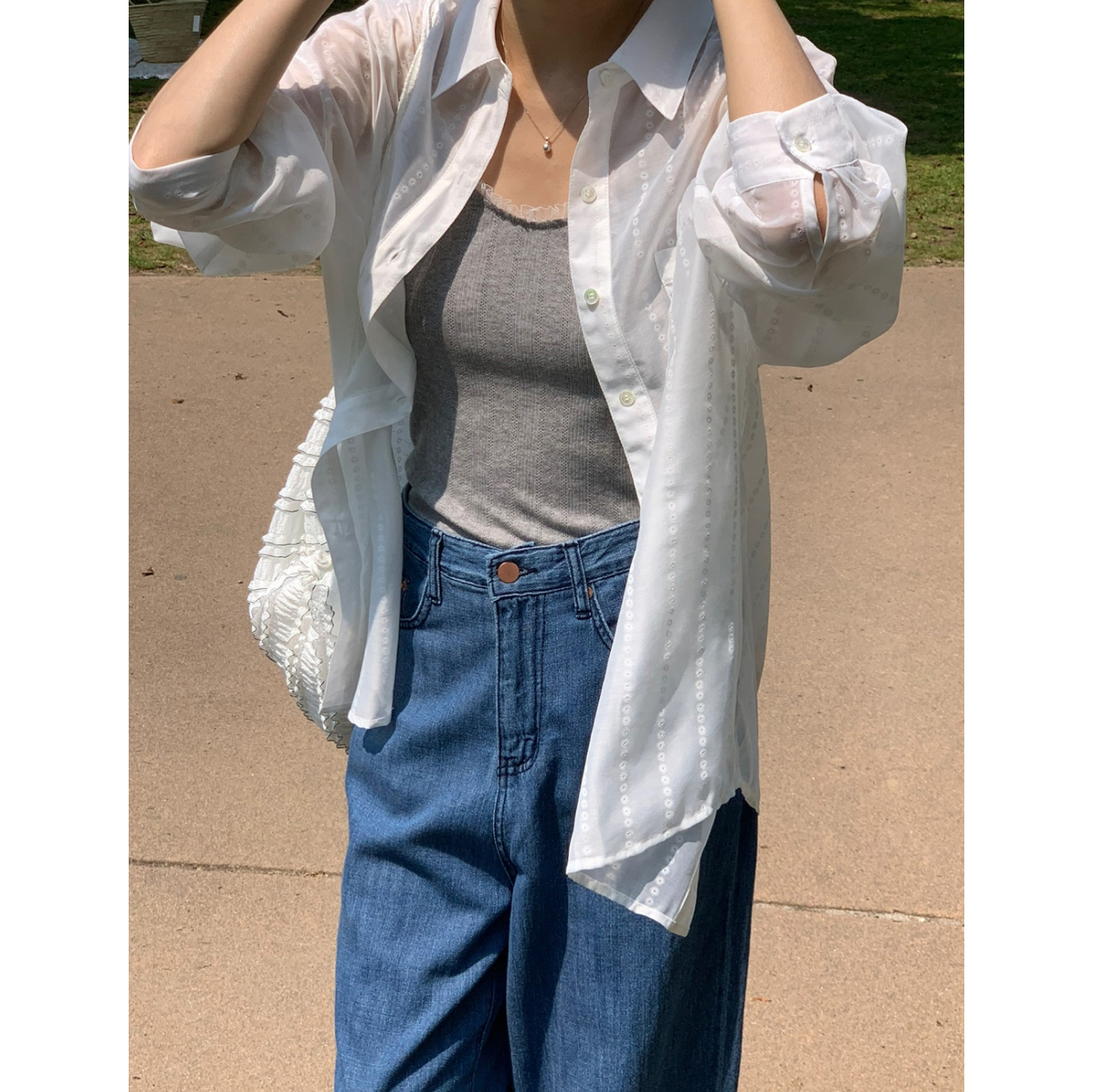 플라워 시스루 박스핏 여름 커버업 셔츠