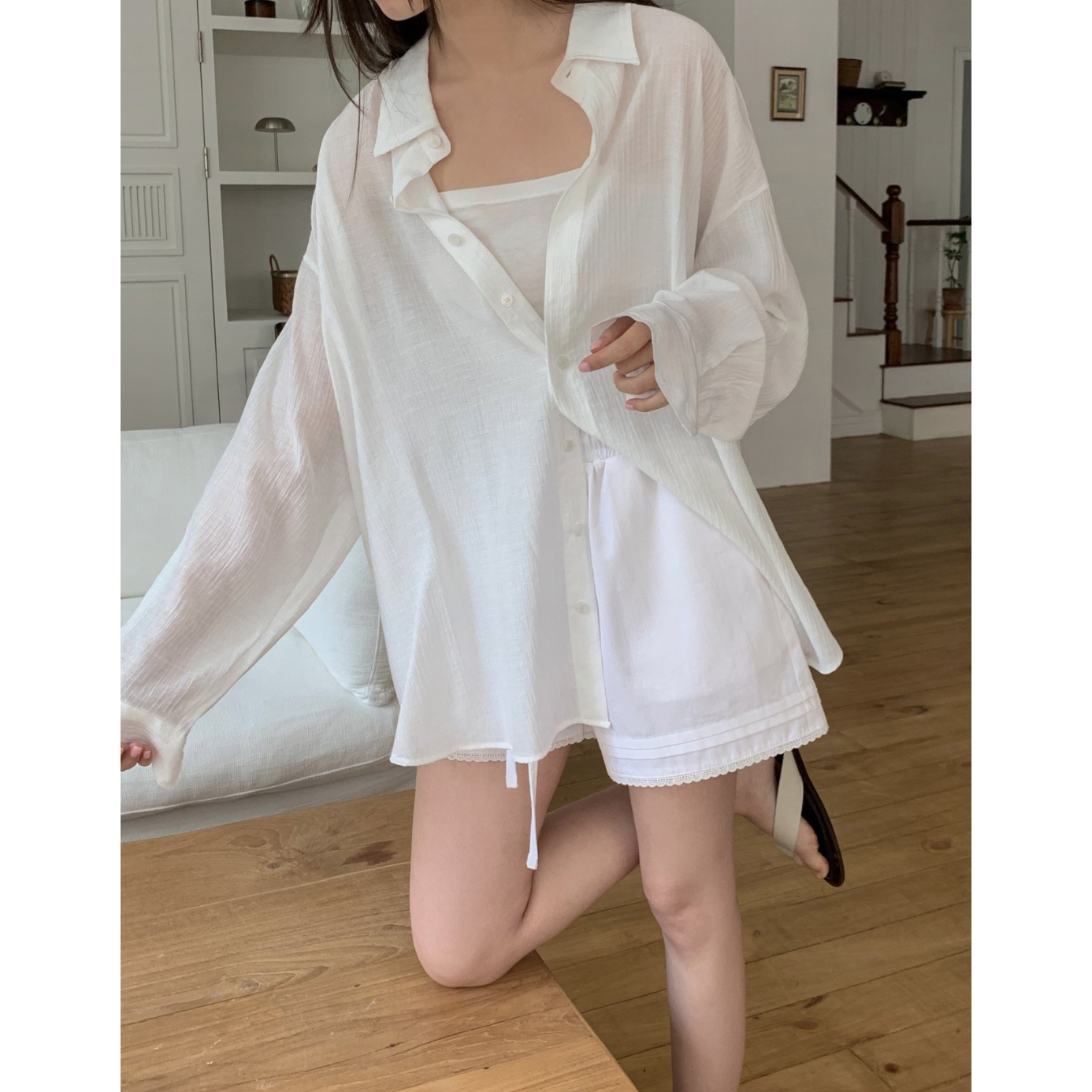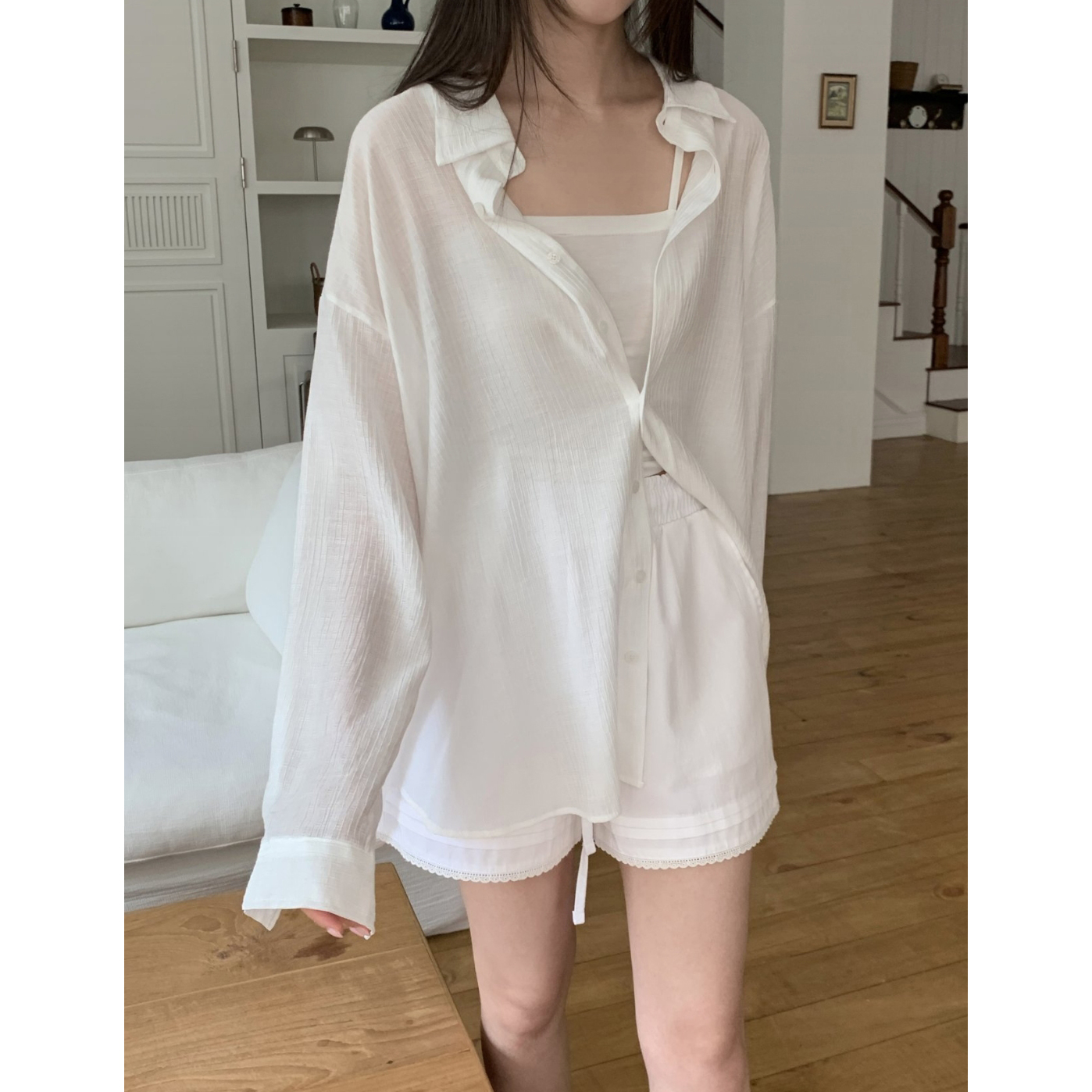쿨 시스루 실키 오버핏 텐셀 셔츠 여름 박스핏 남방