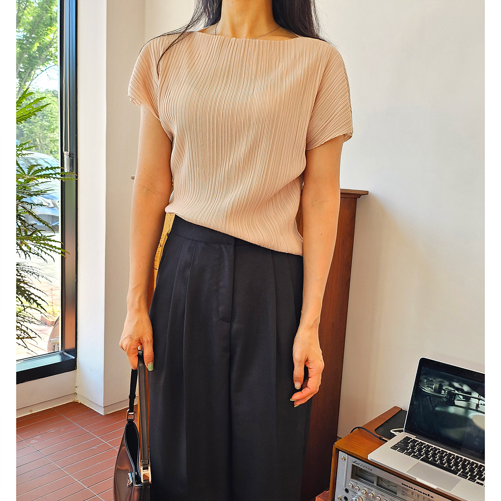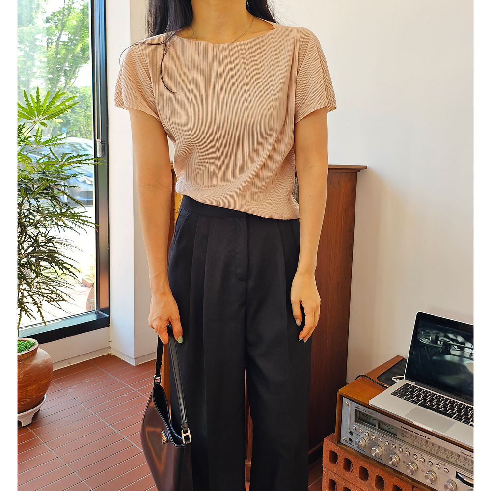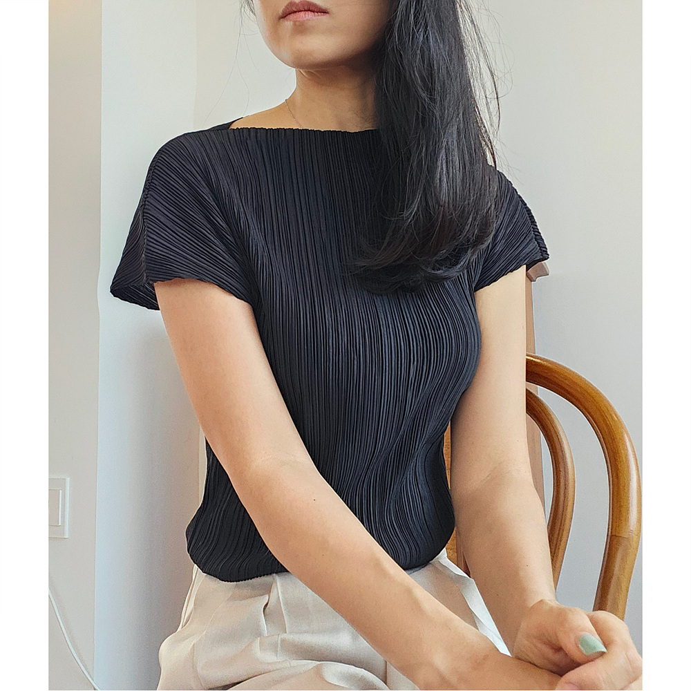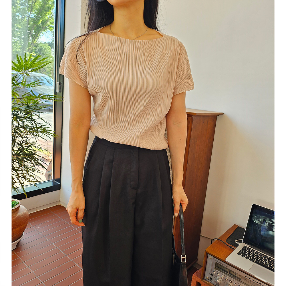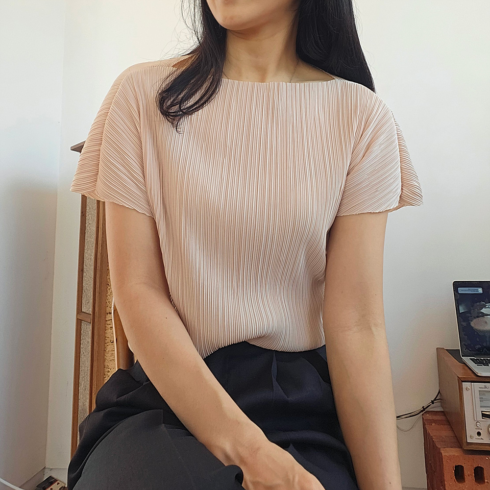 메이 플리츠 반팔 블라우스 티셔츠