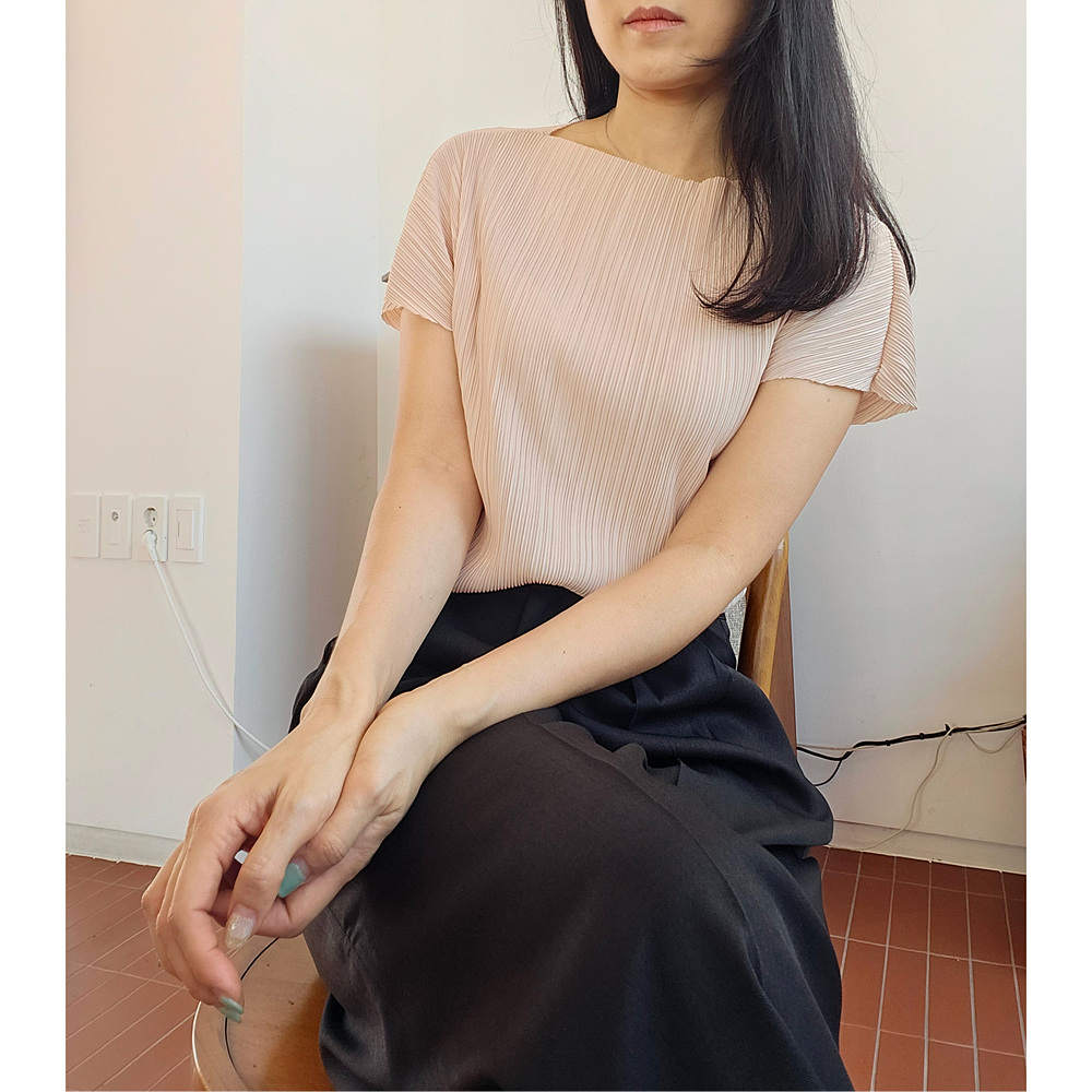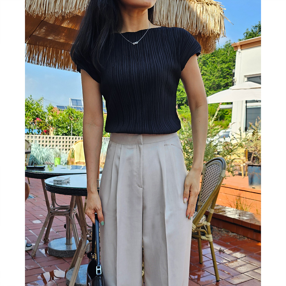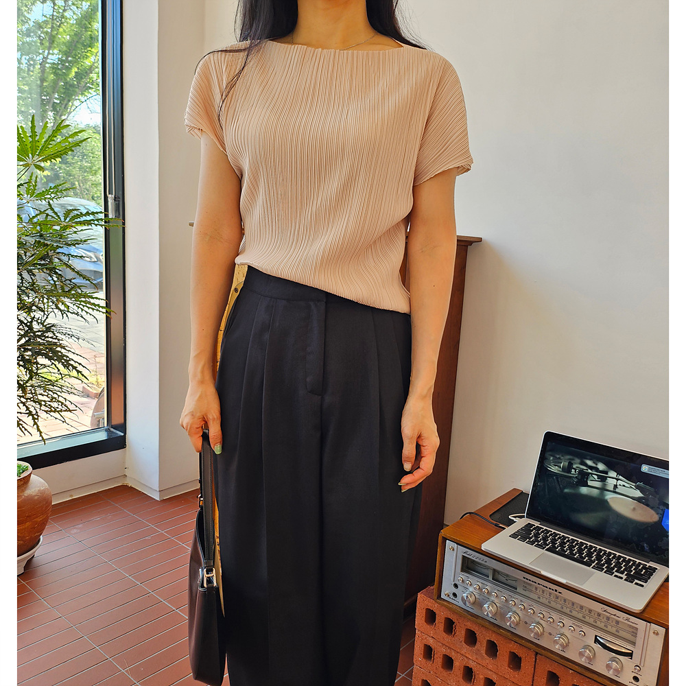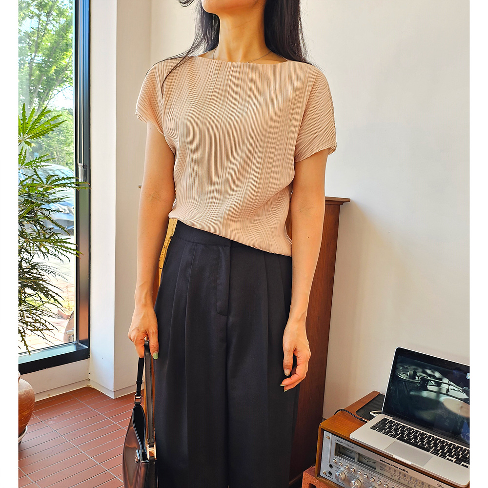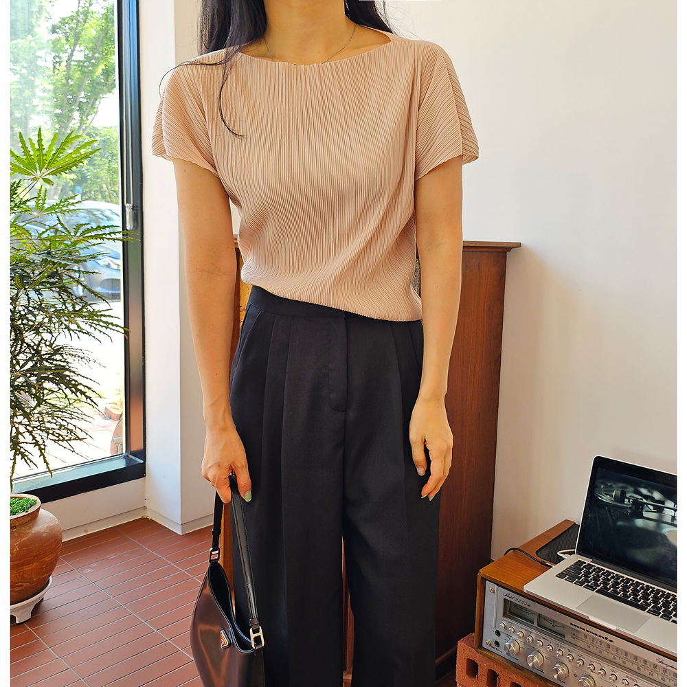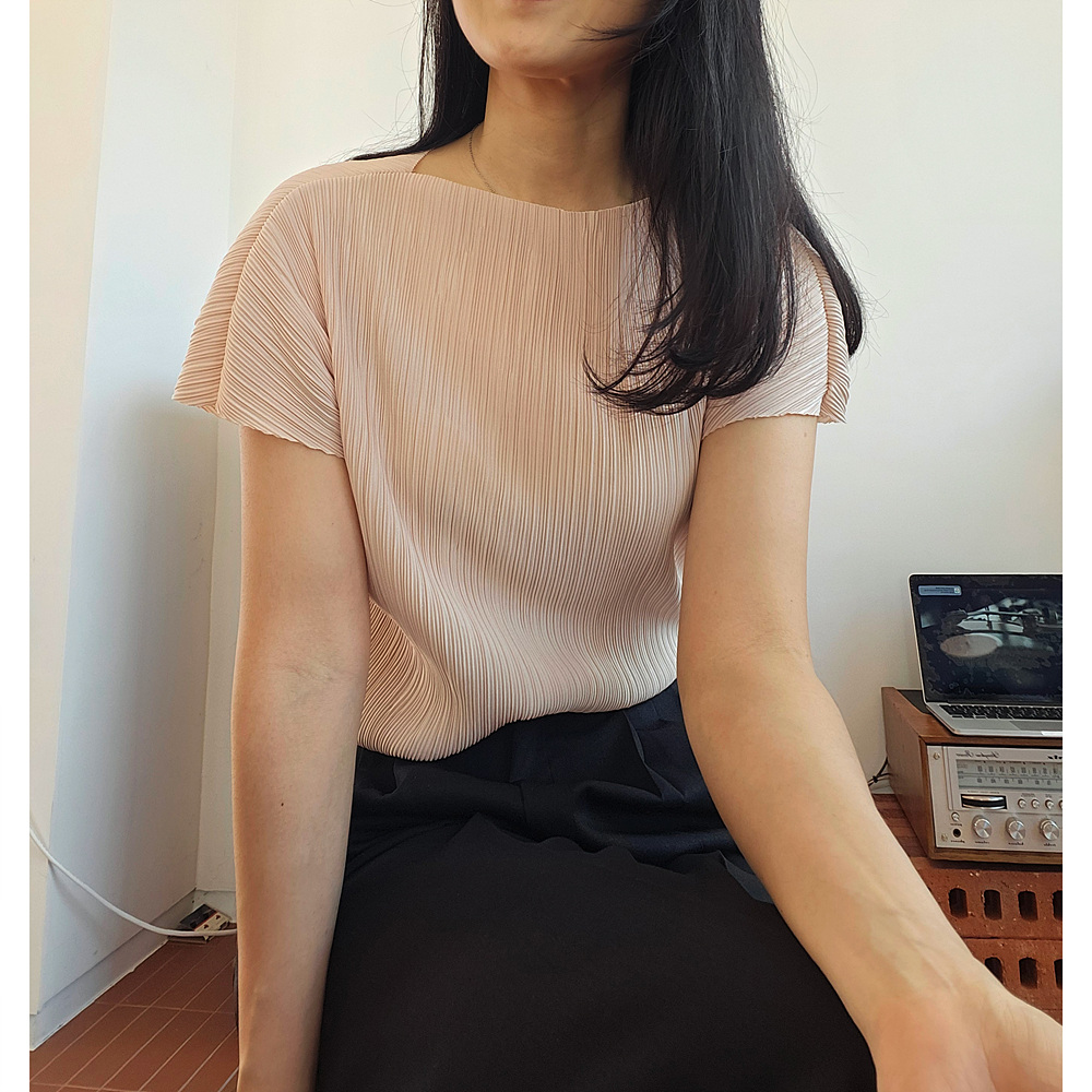 메이 플리츠 반팔 블라우스 티셔츠