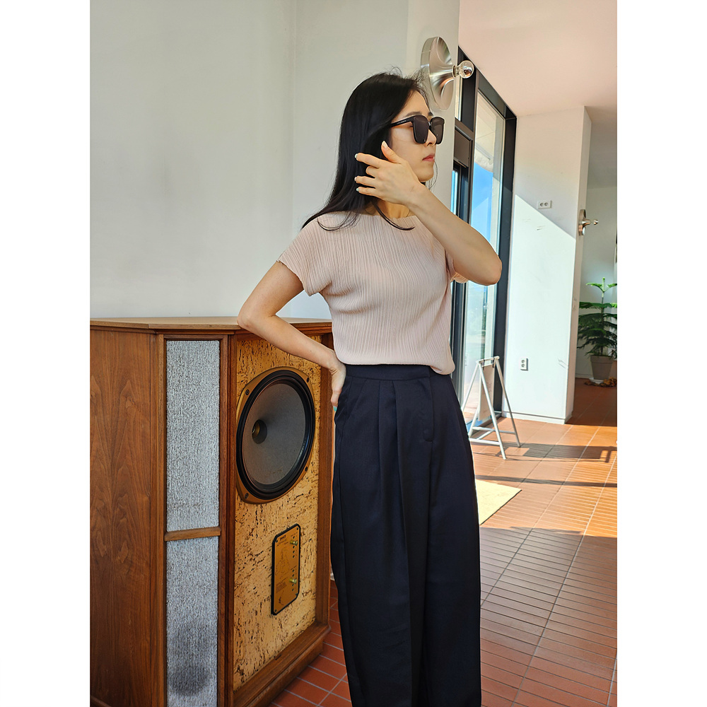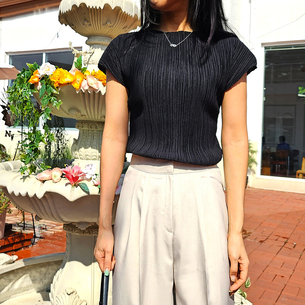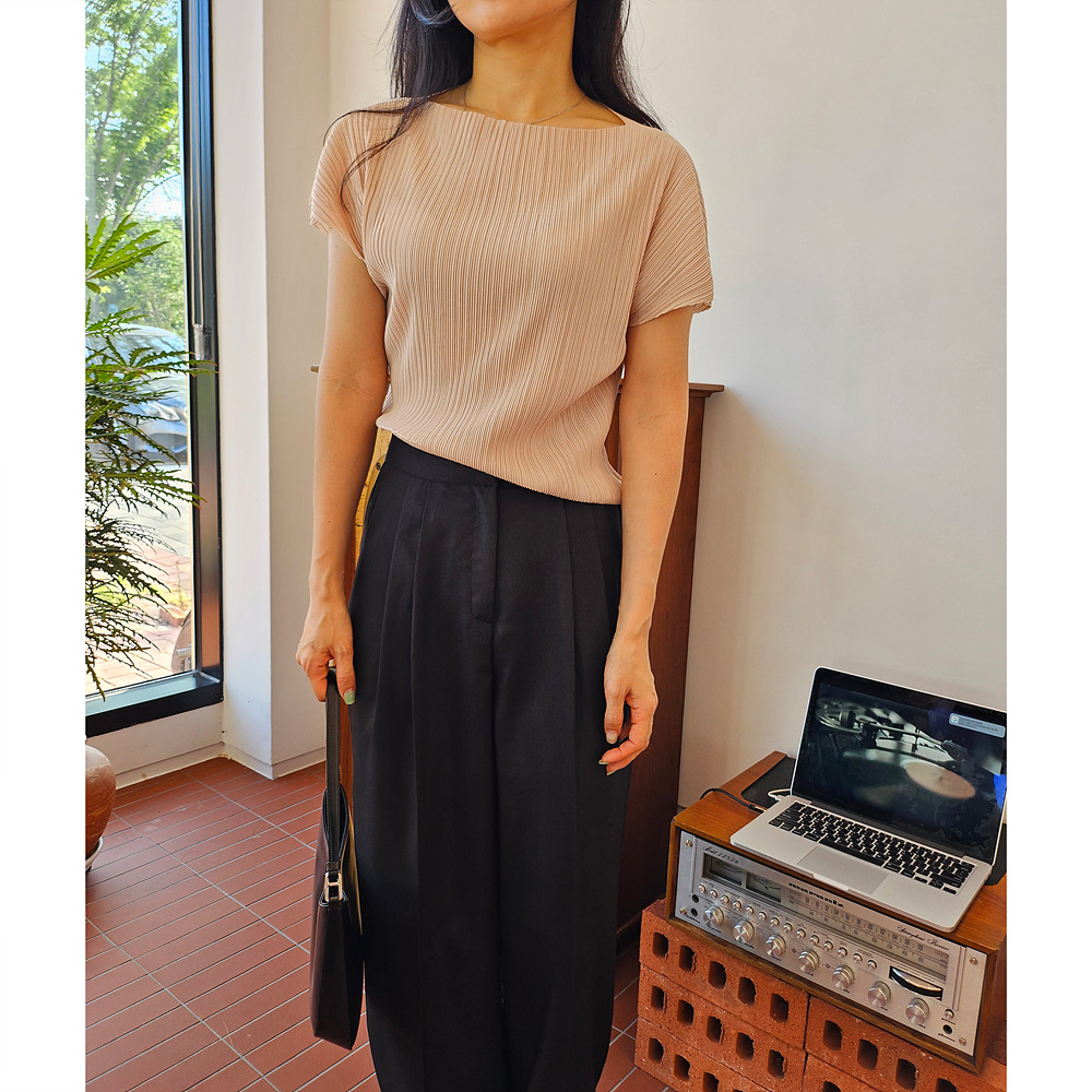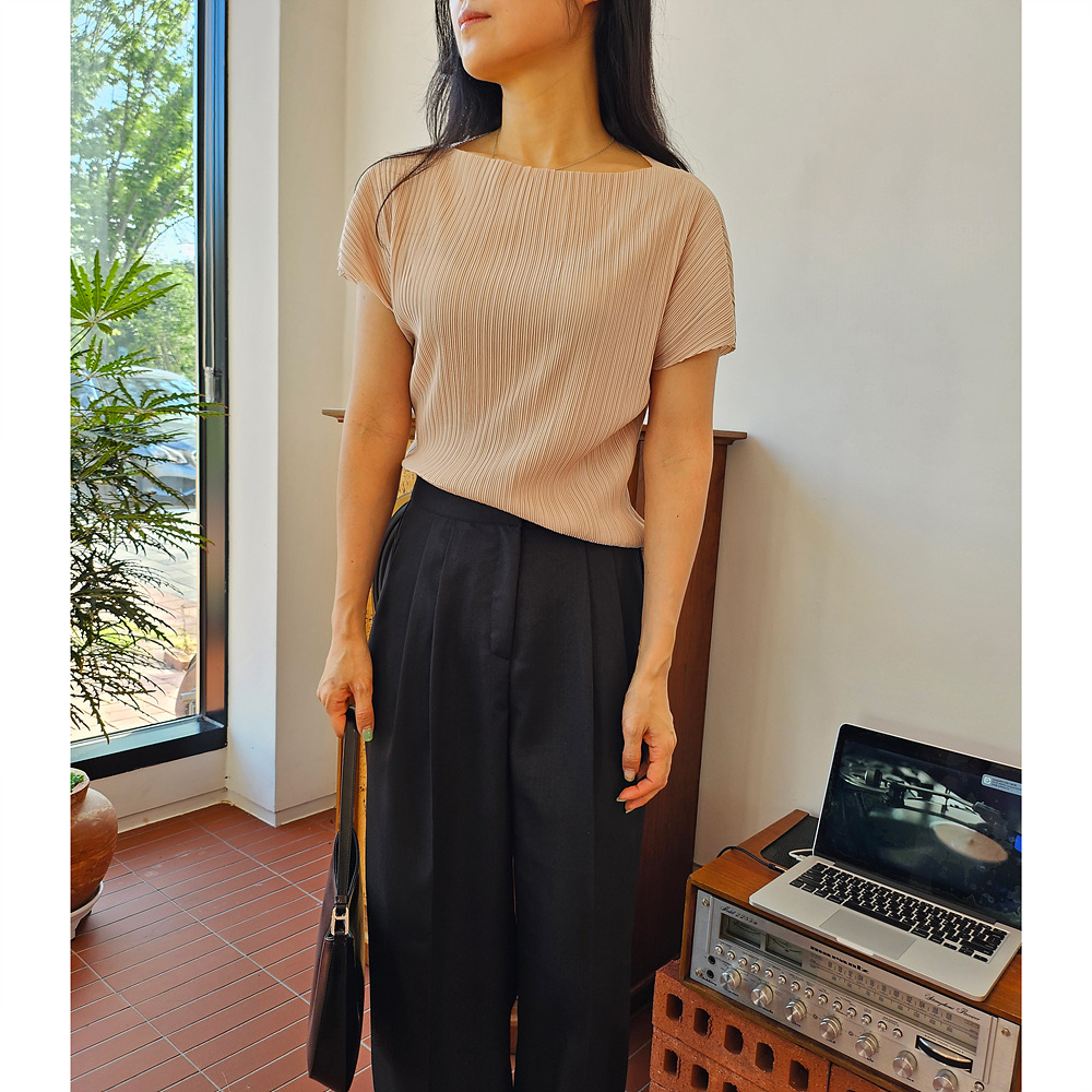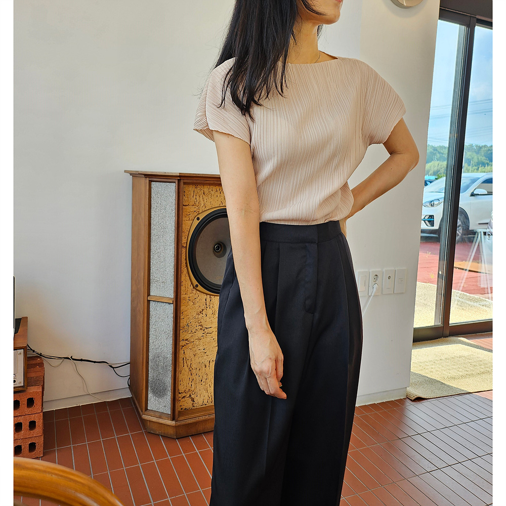 메이 플리츠 반팔 블라우스 티셔츠