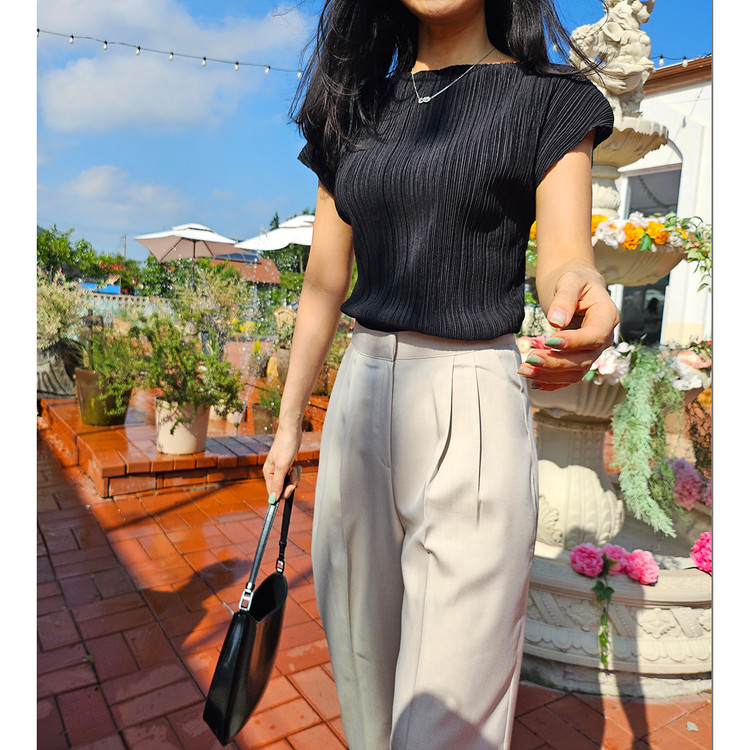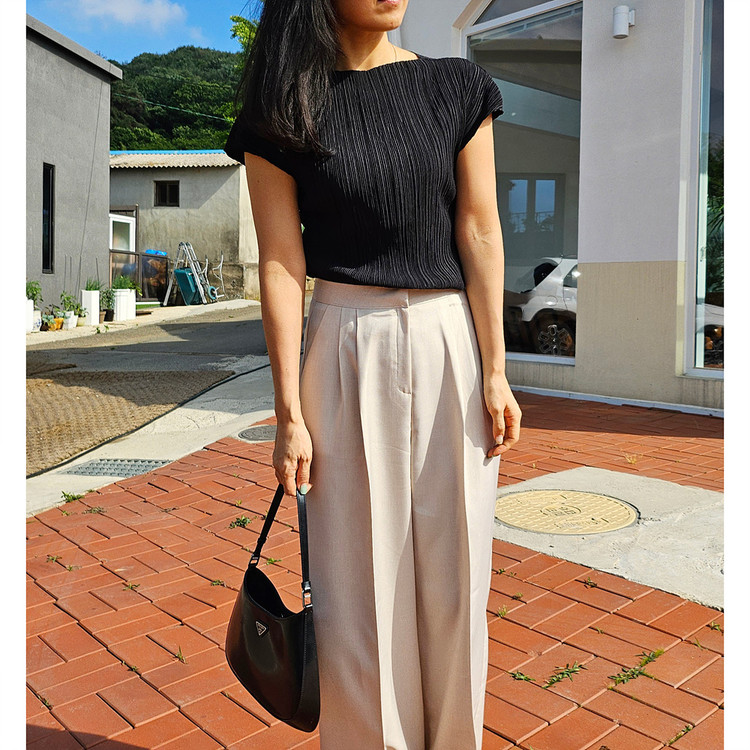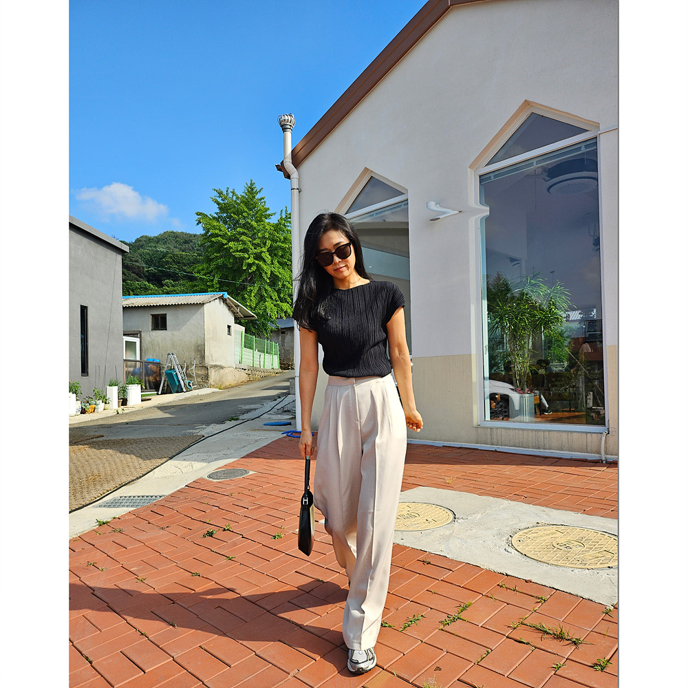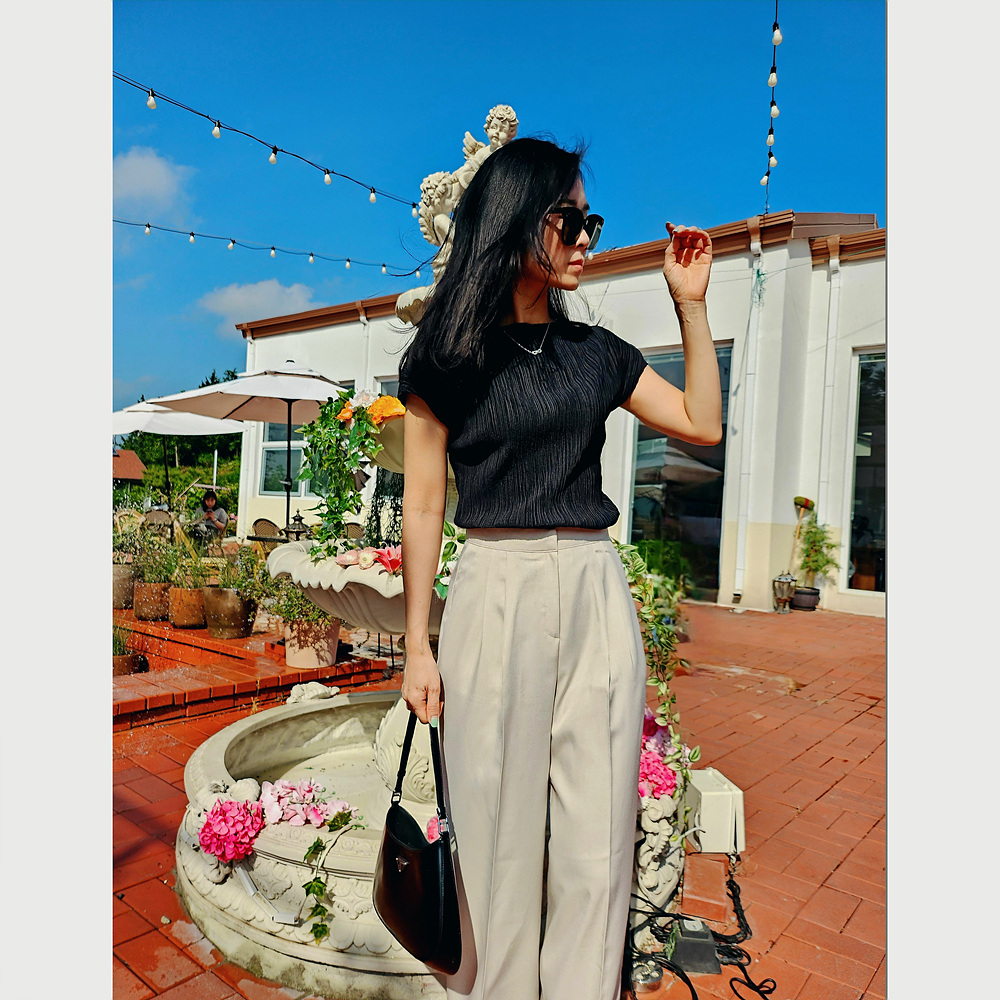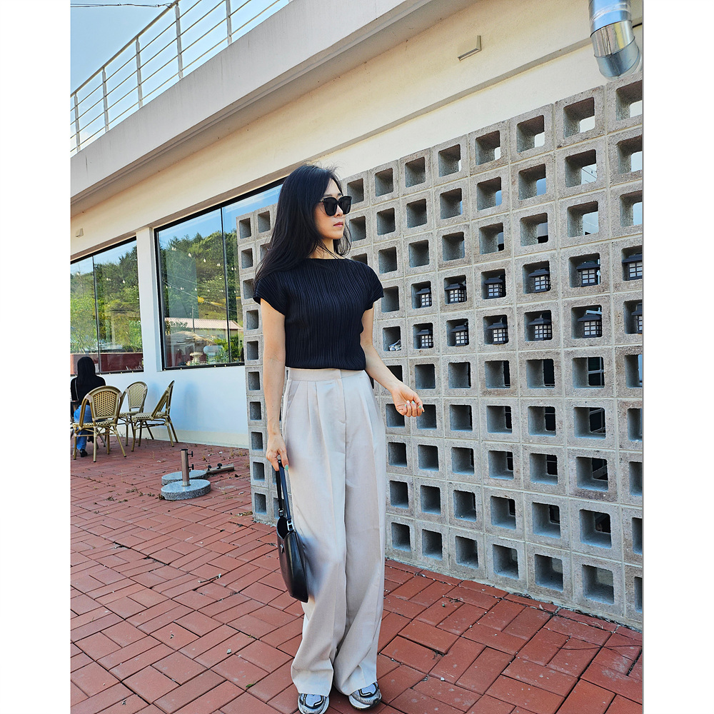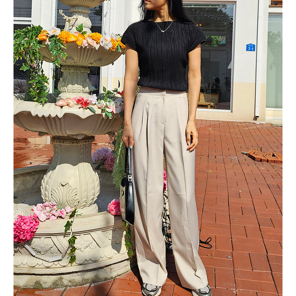 메이 플리츠 반팔 블라우스 티셔츠