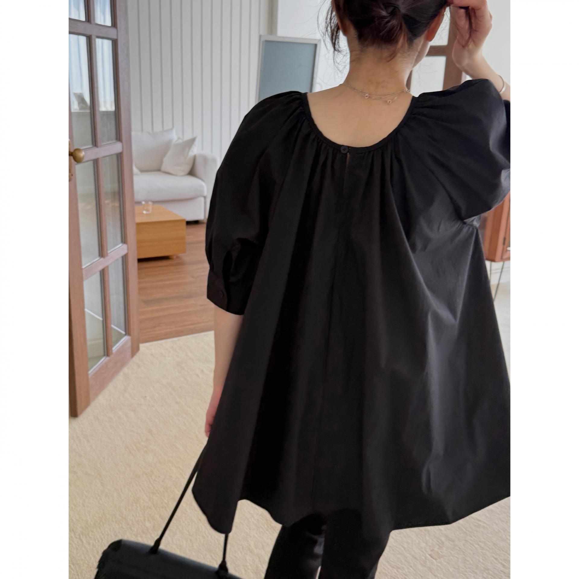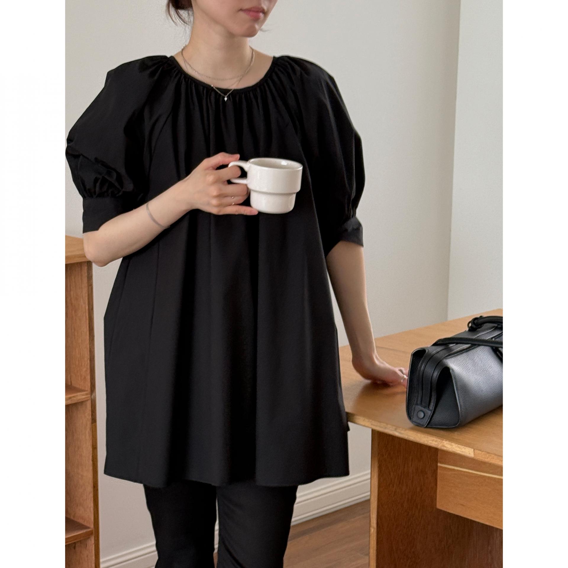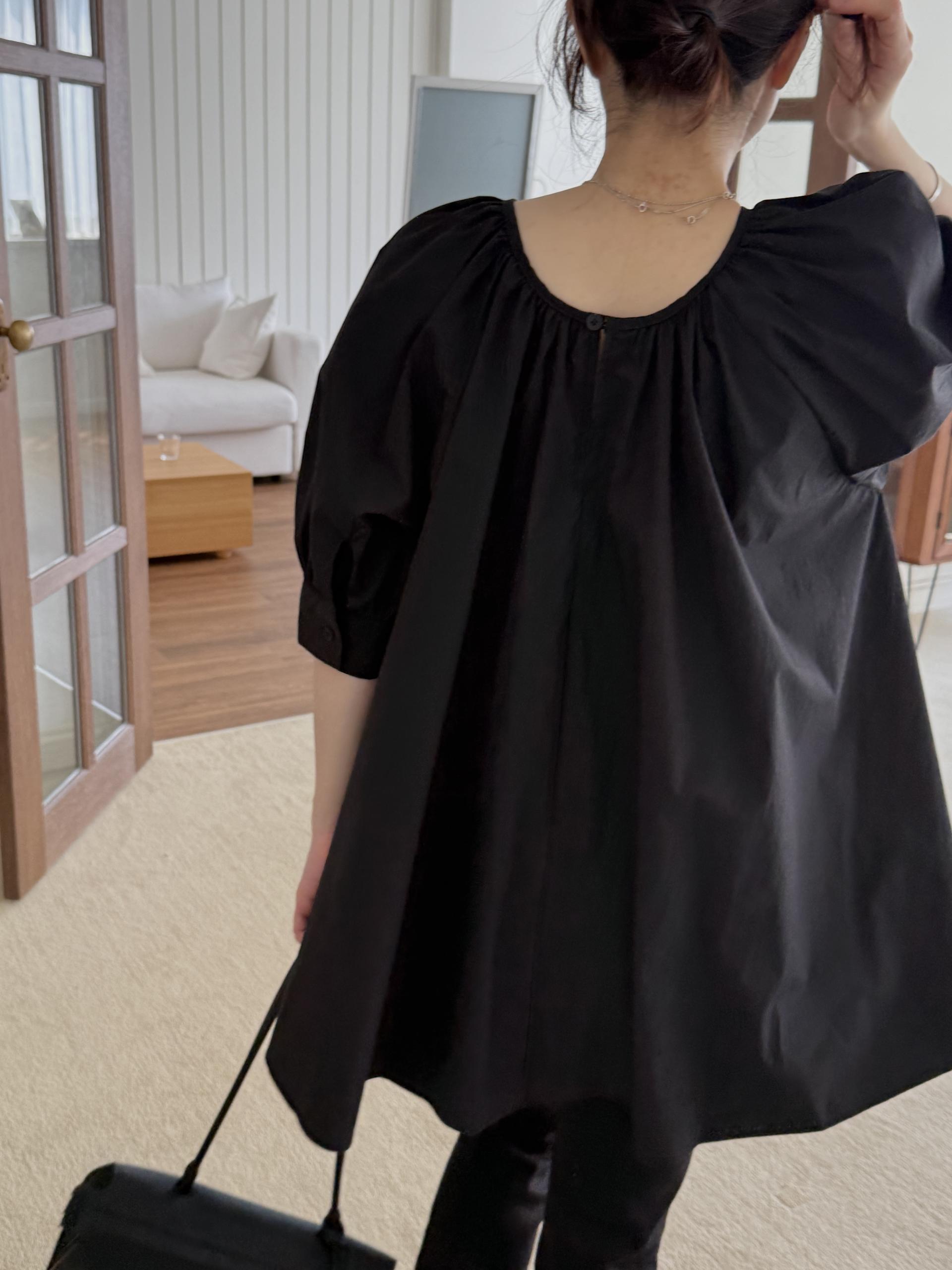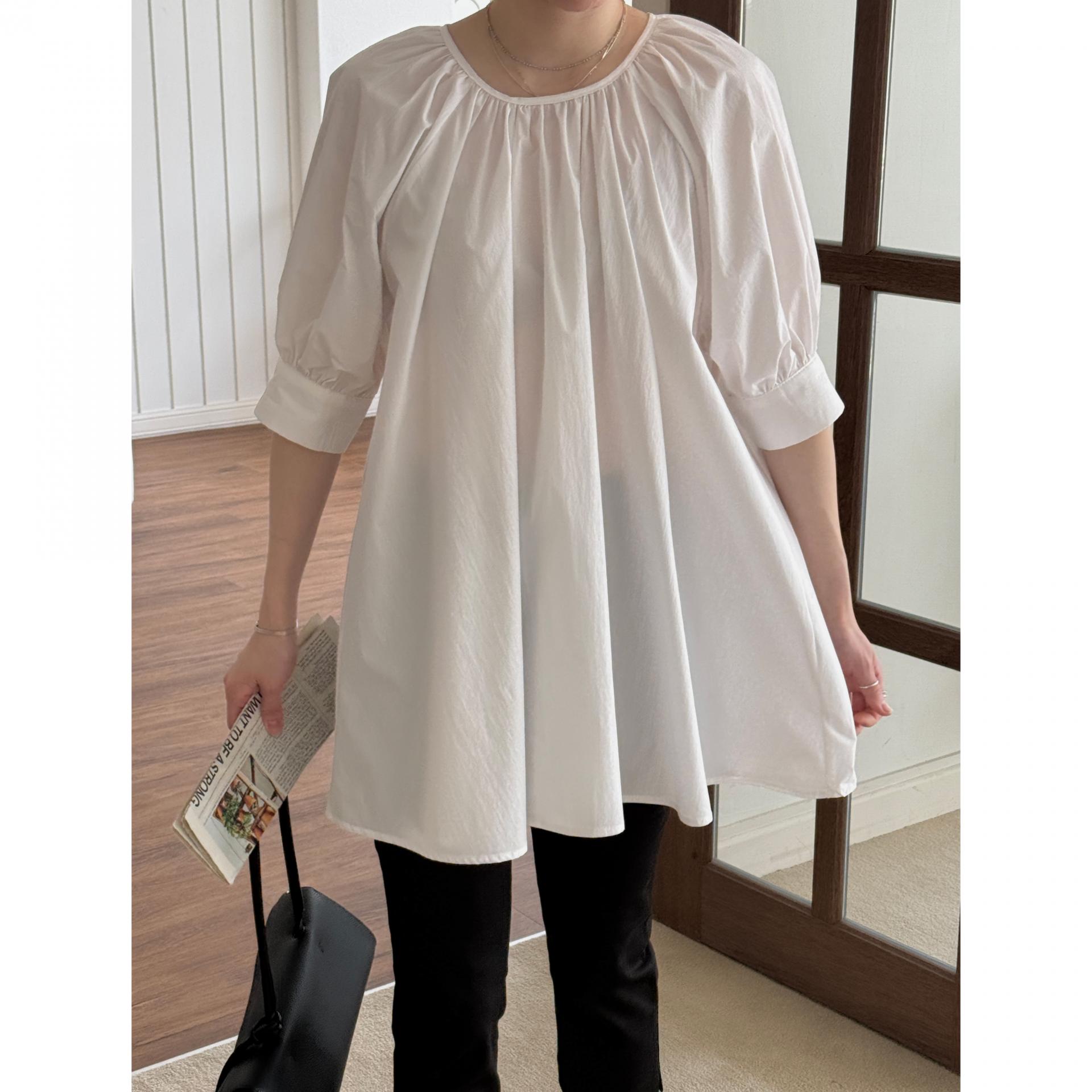 루루 벌룬 셔링 에이 라인 훌 블라우스