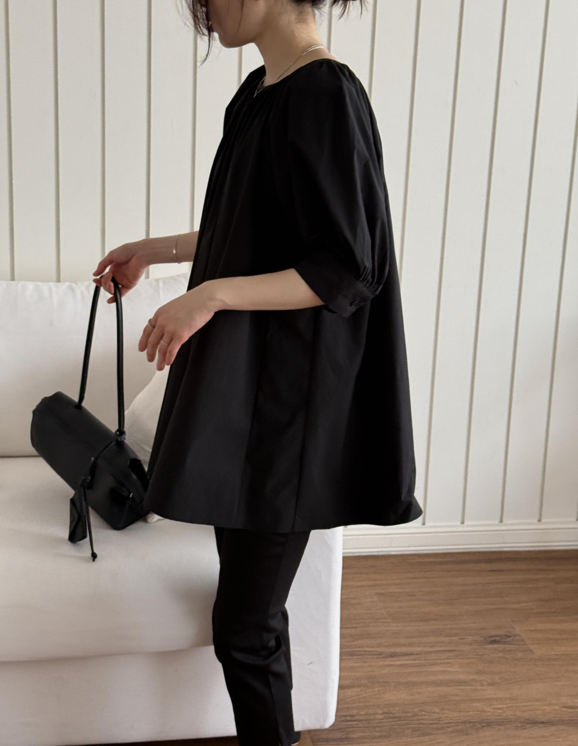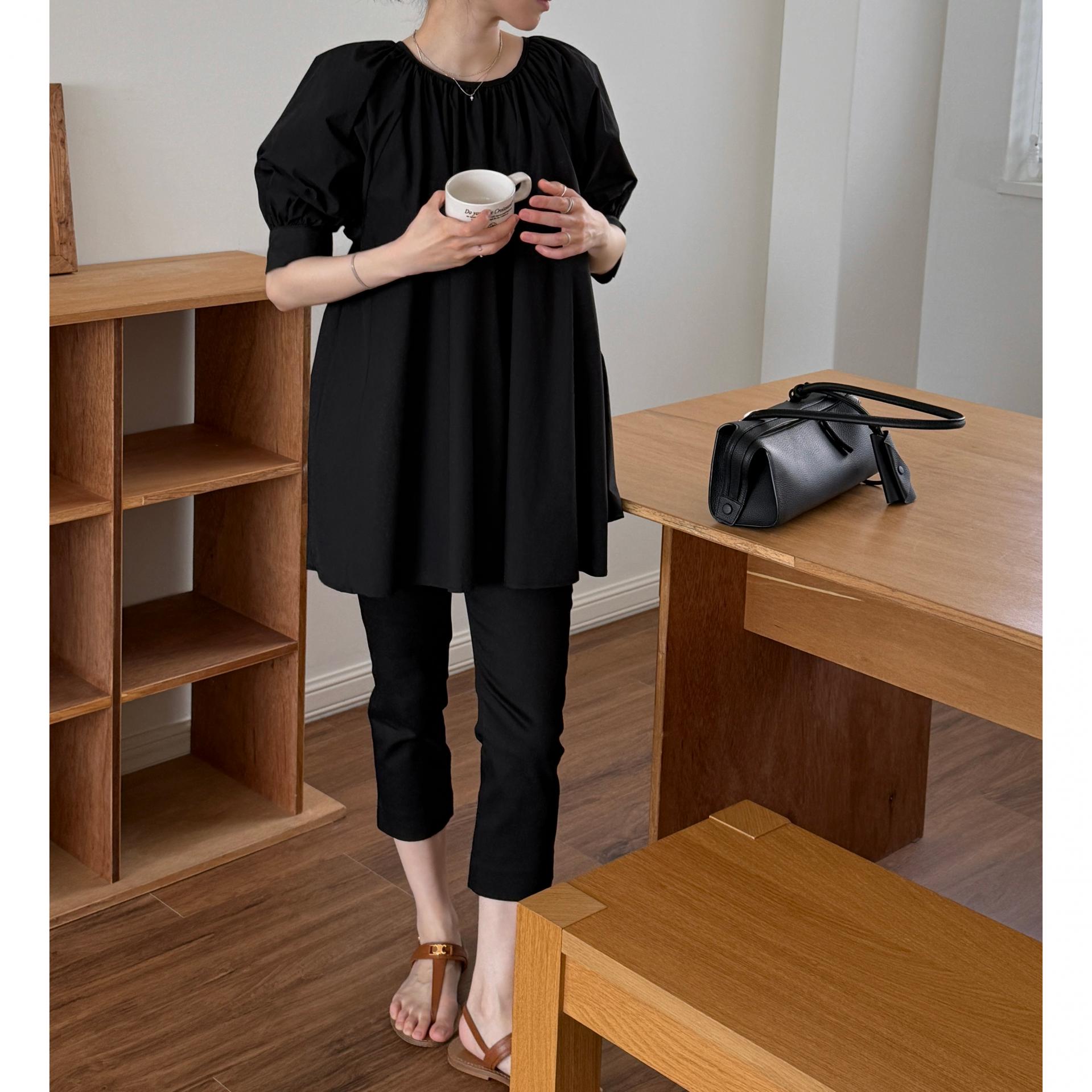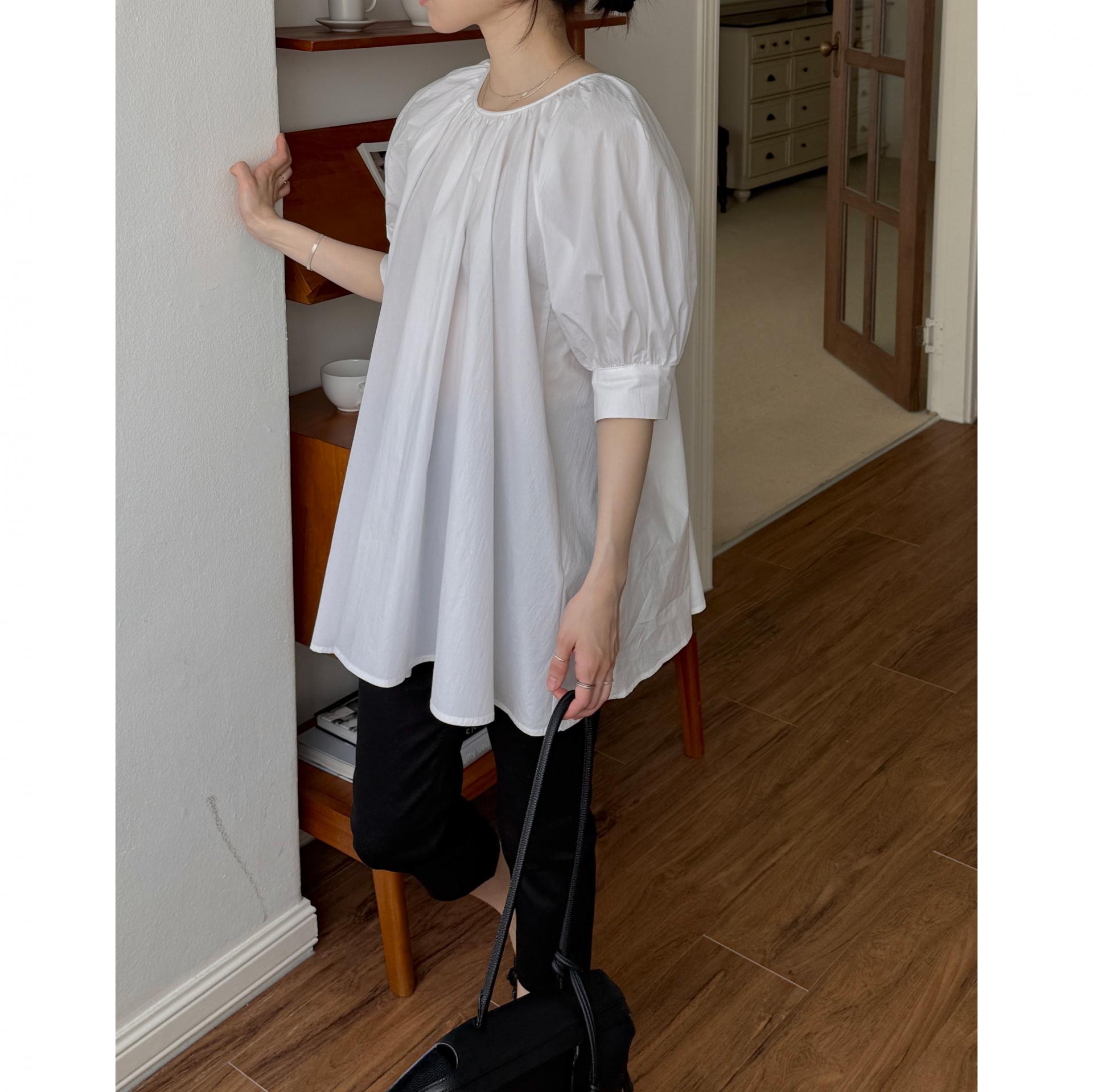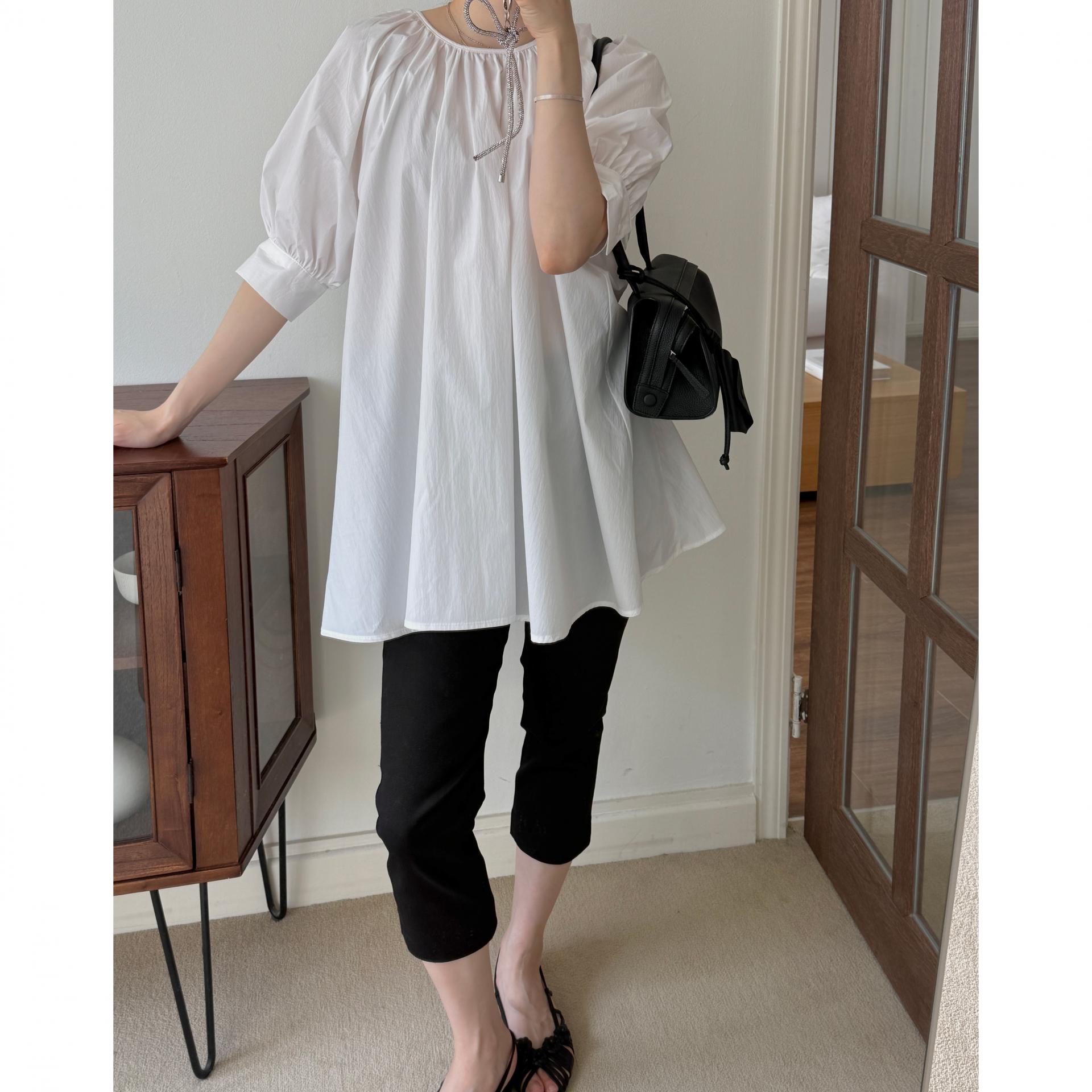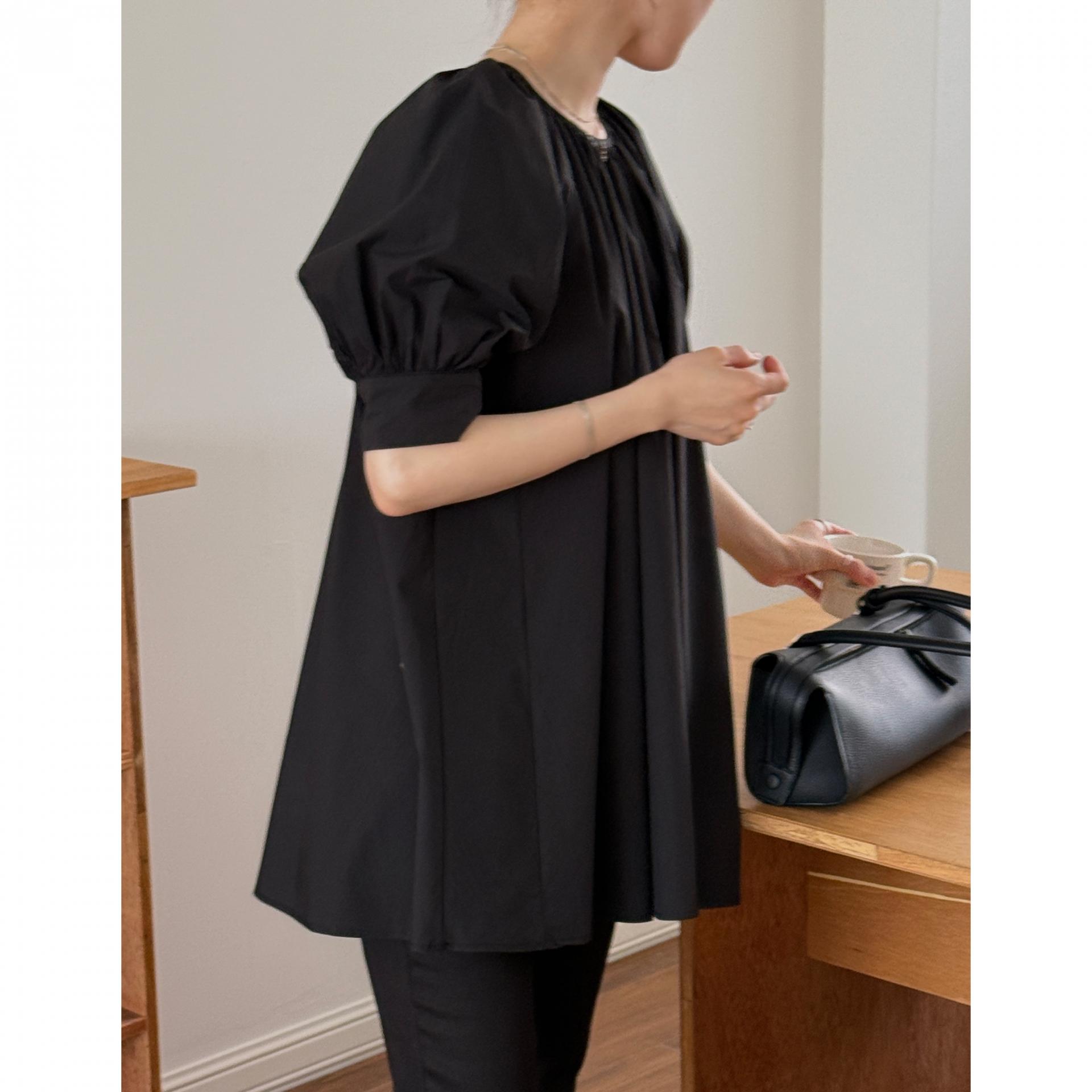 루루 벌룬 셔링 에이 라인 훌 블라우스