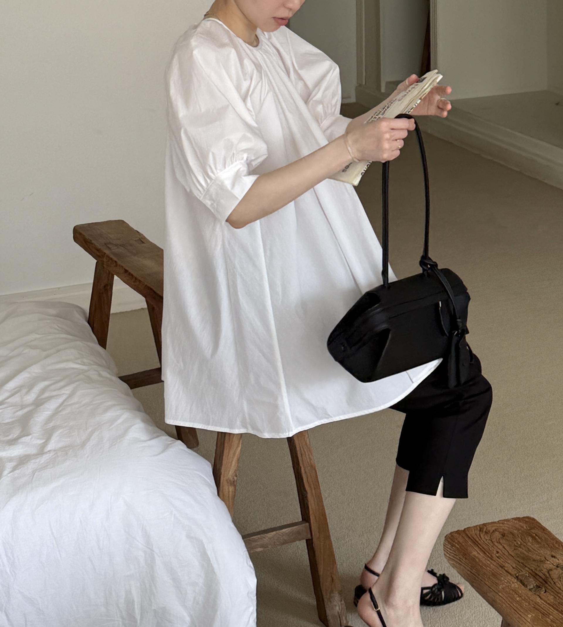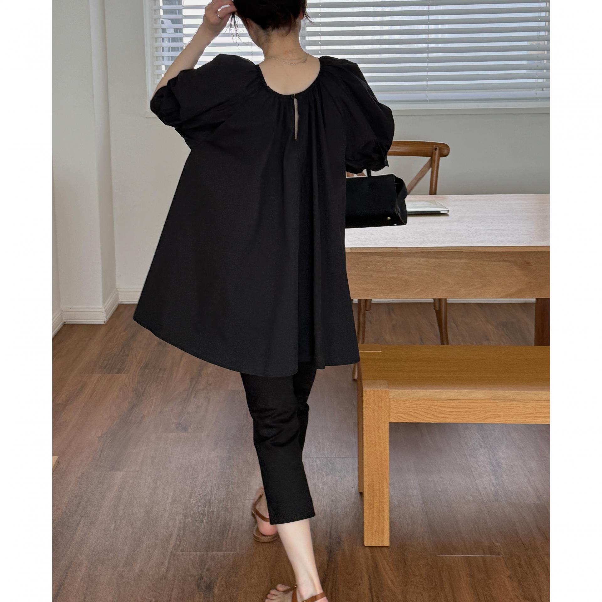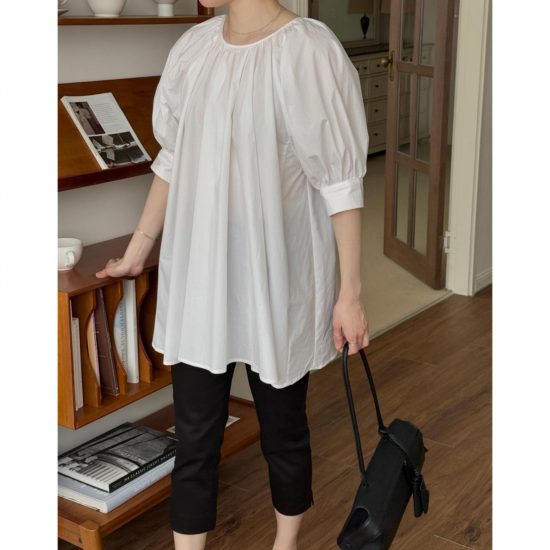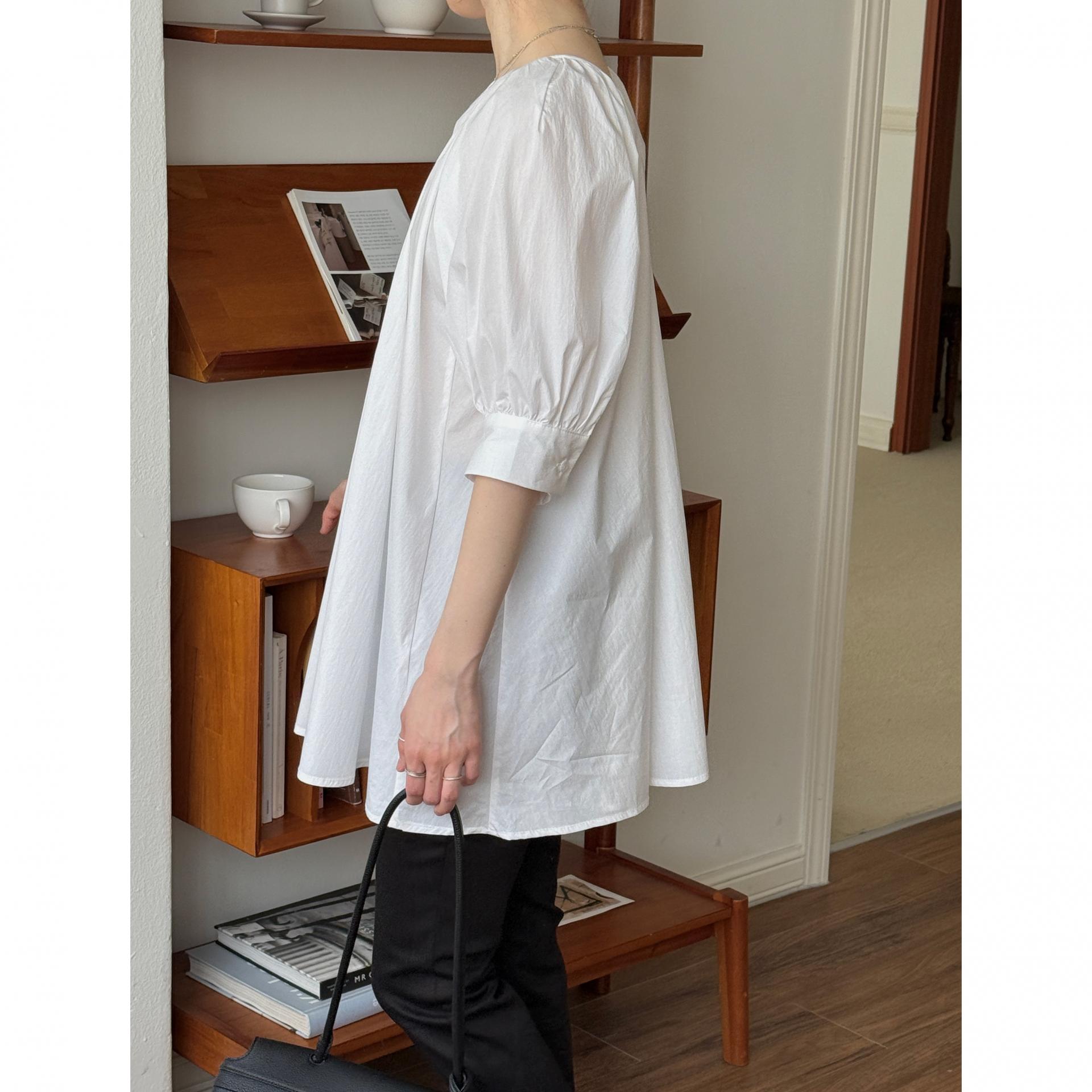 루루 벌룬 셔링 에이 라인 훌 블라우스