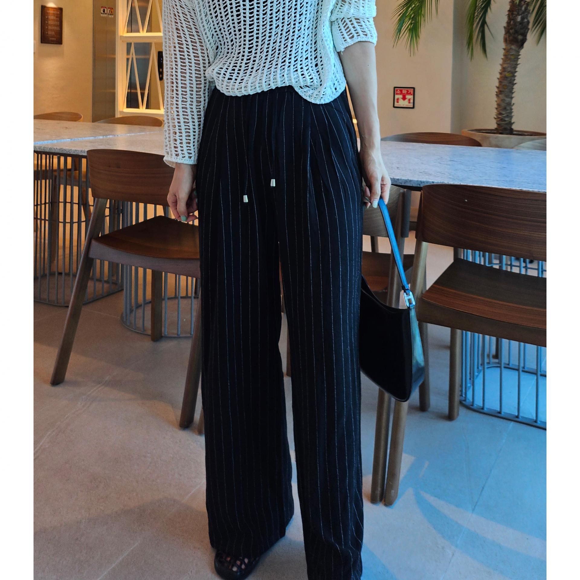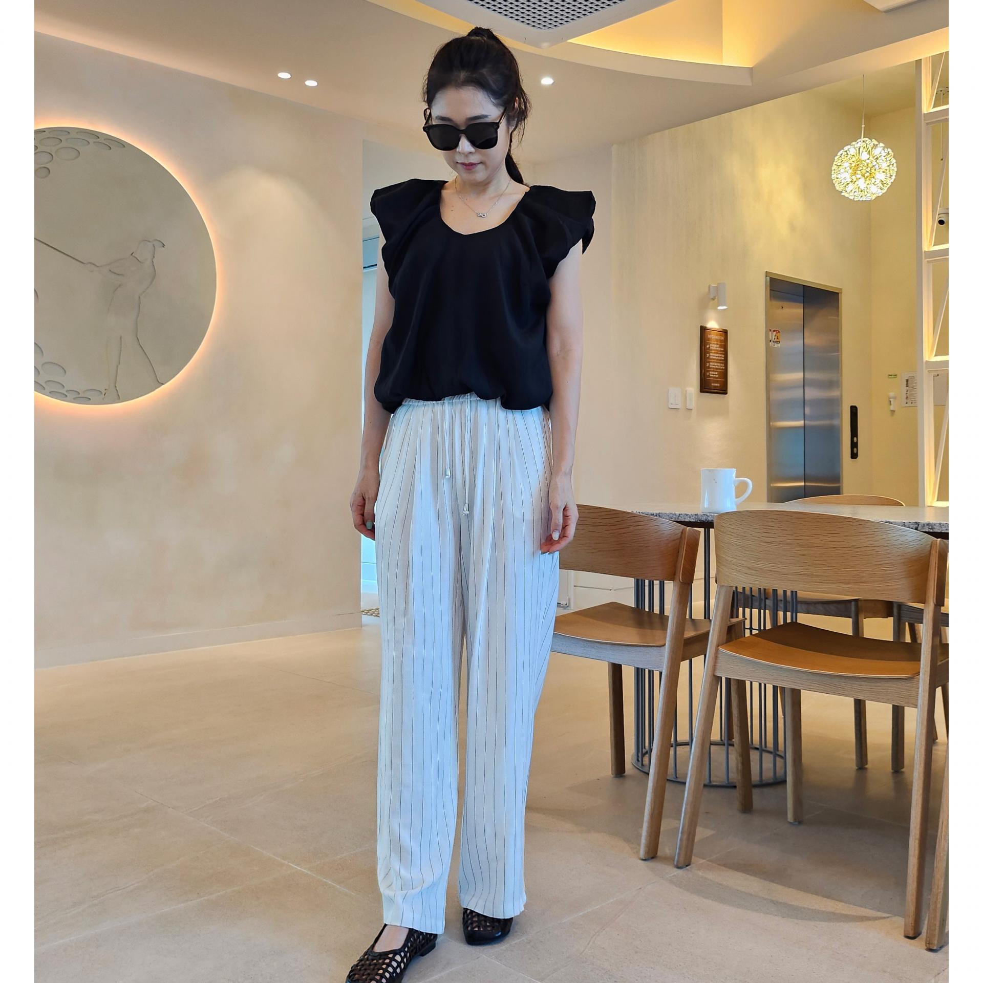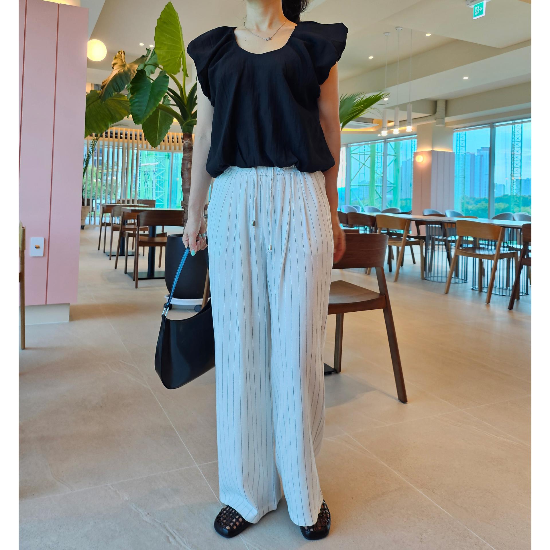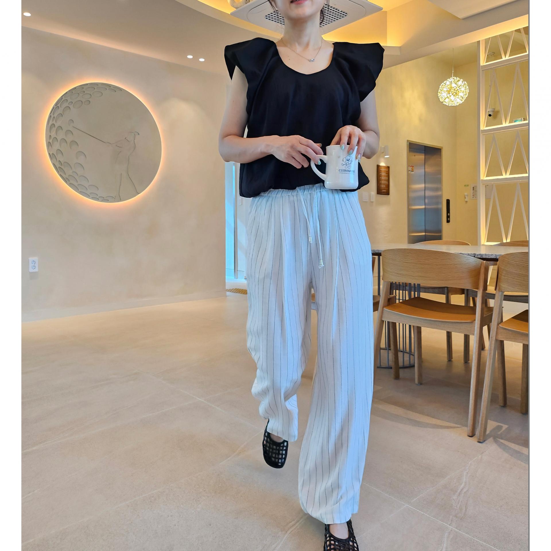 제나 린넨 스트라이프 와이드 밴딩 팬츠