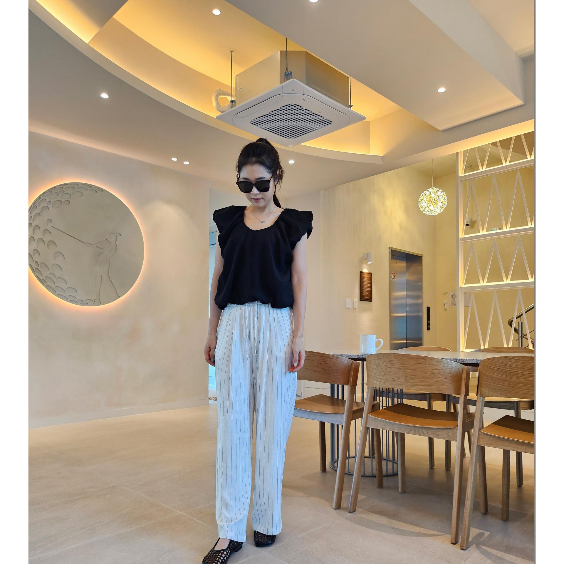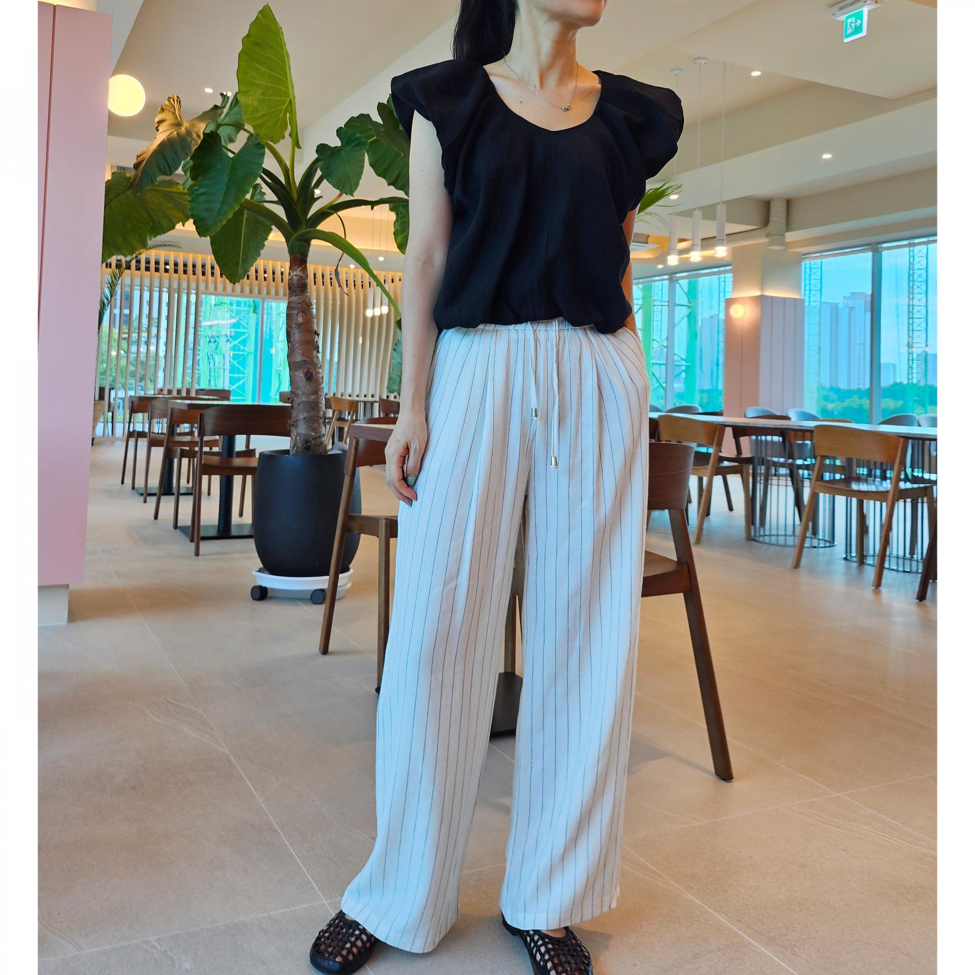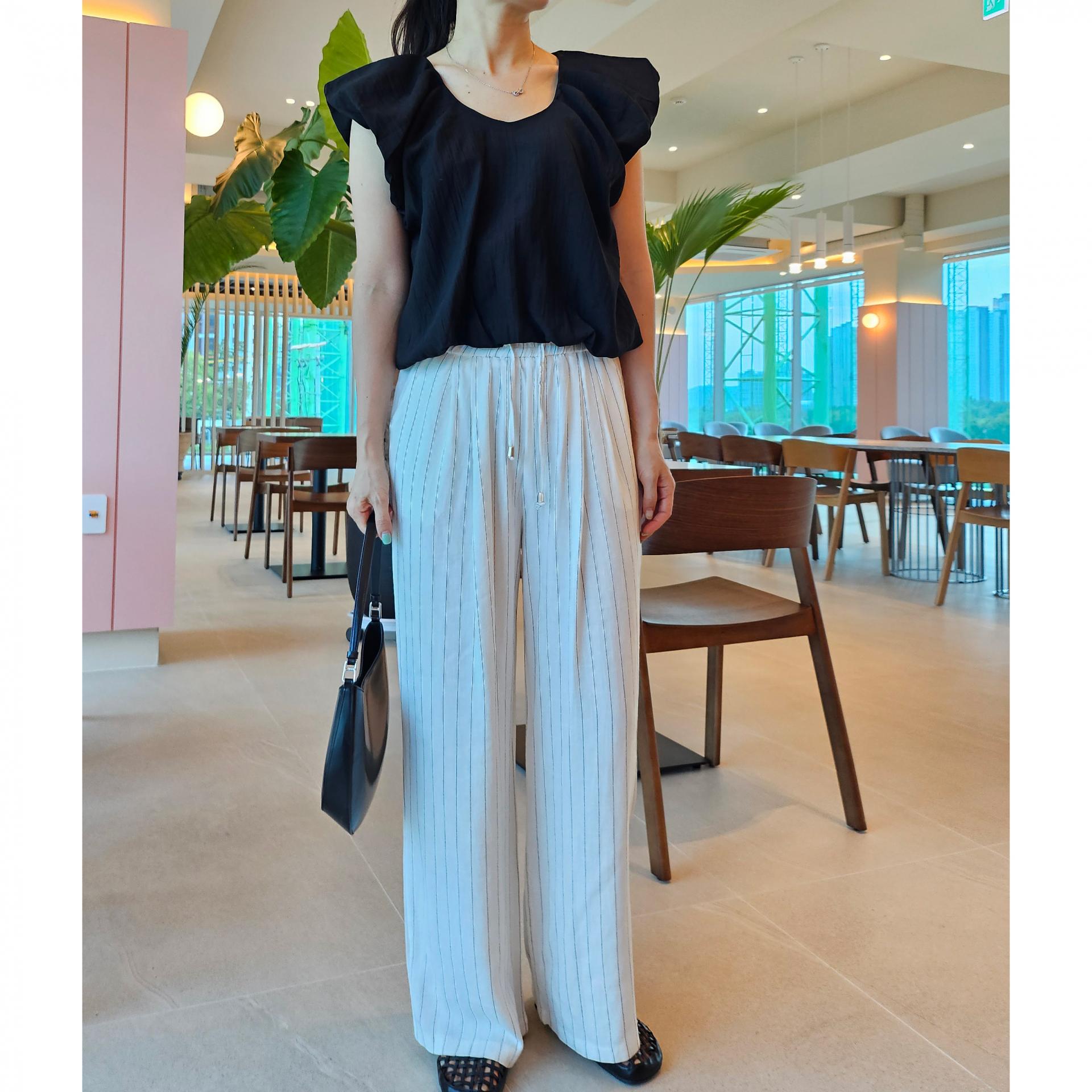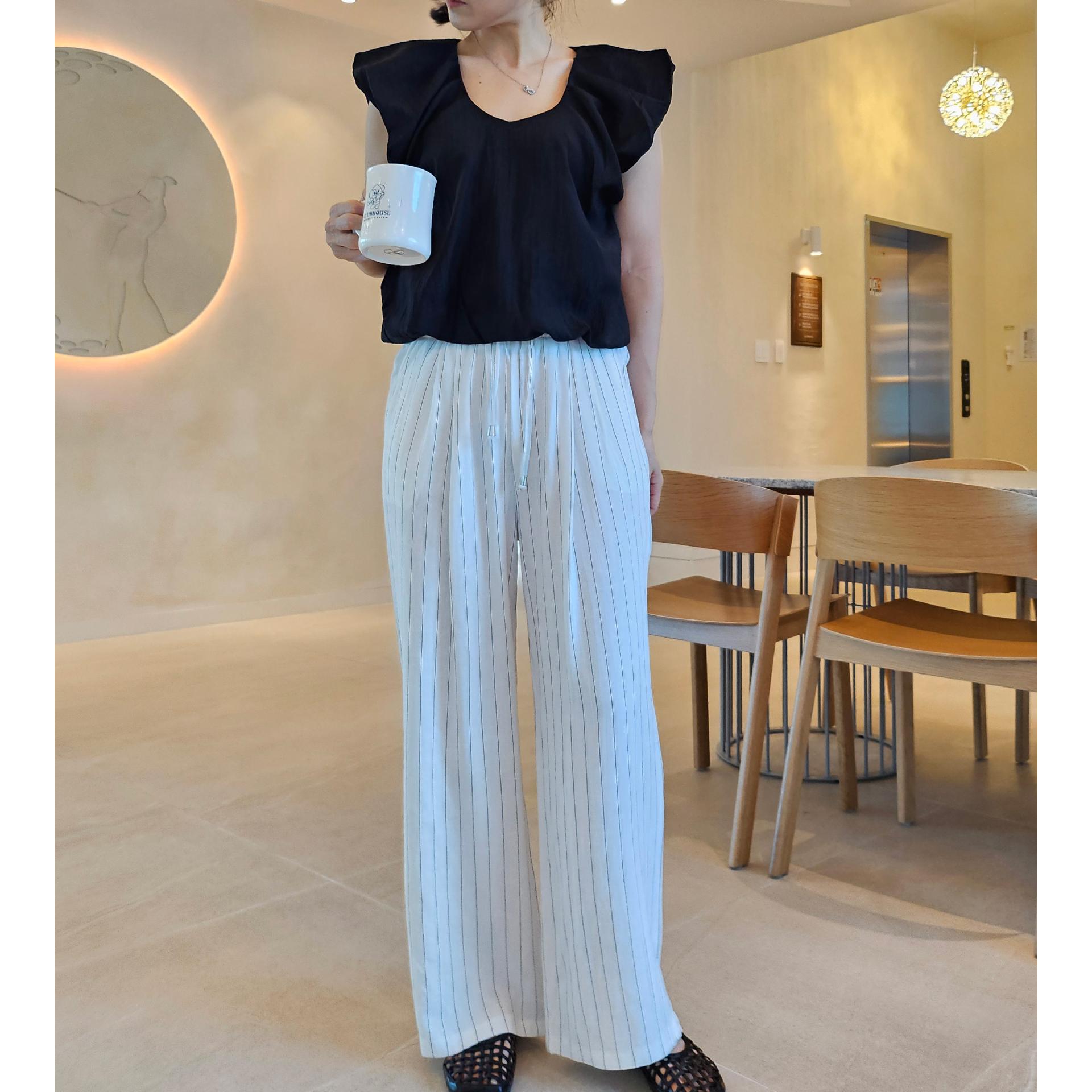제나 린넨 스트라이프 와이드 밴딩 팬츠