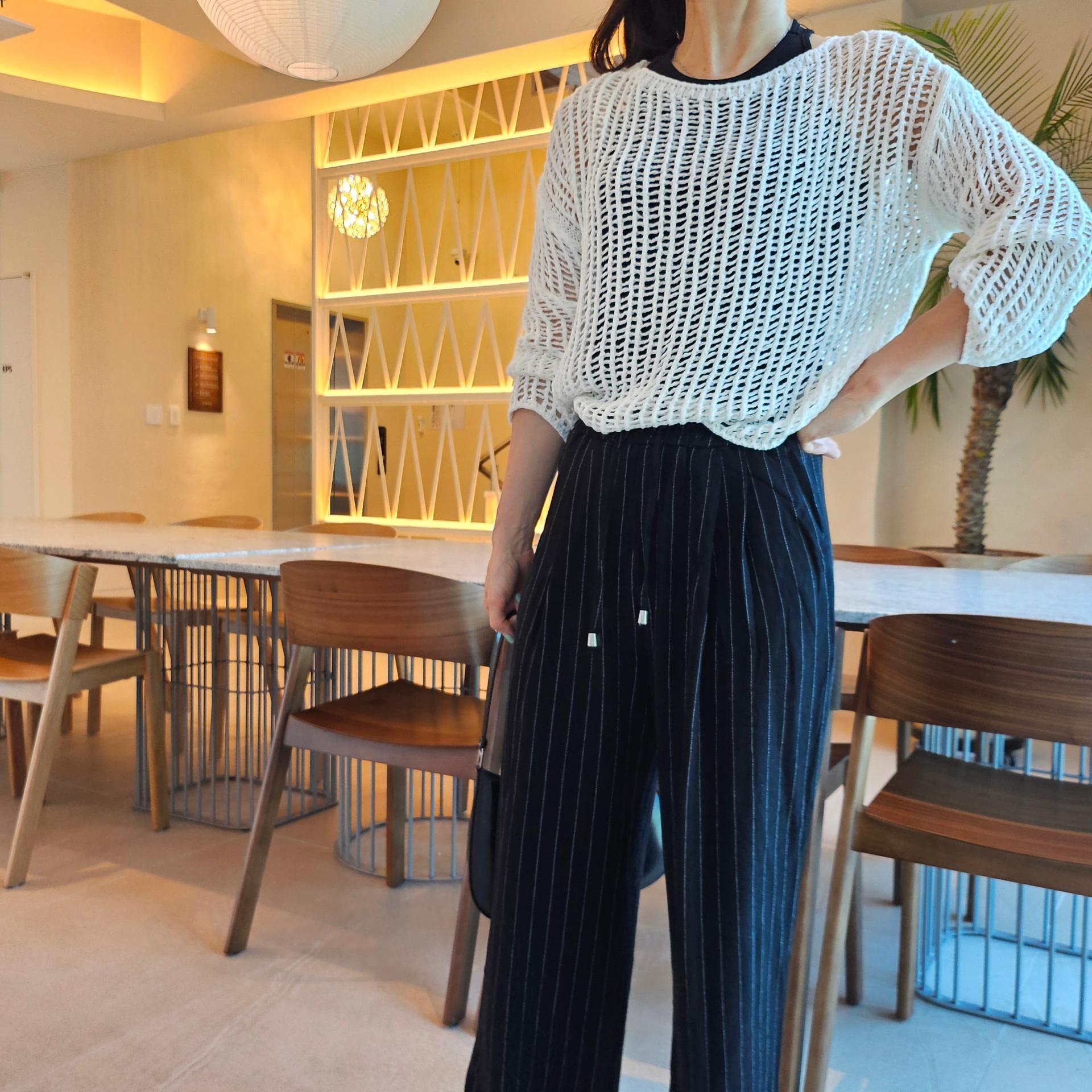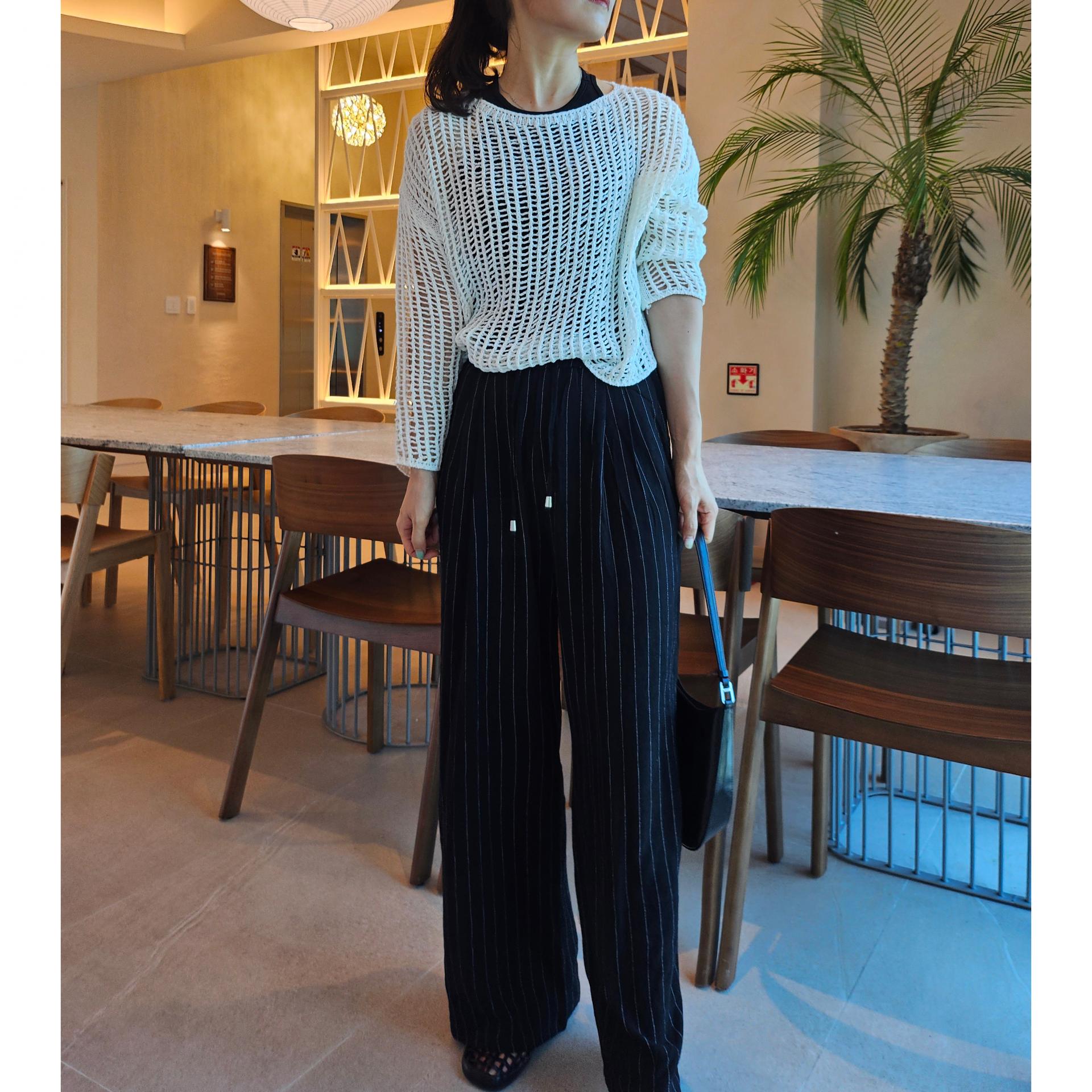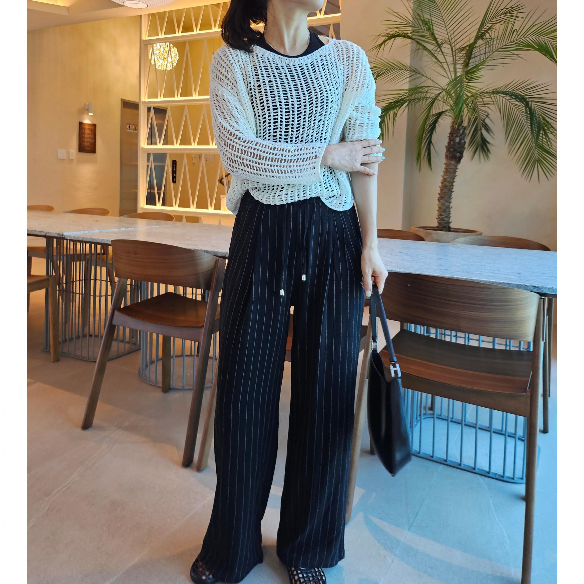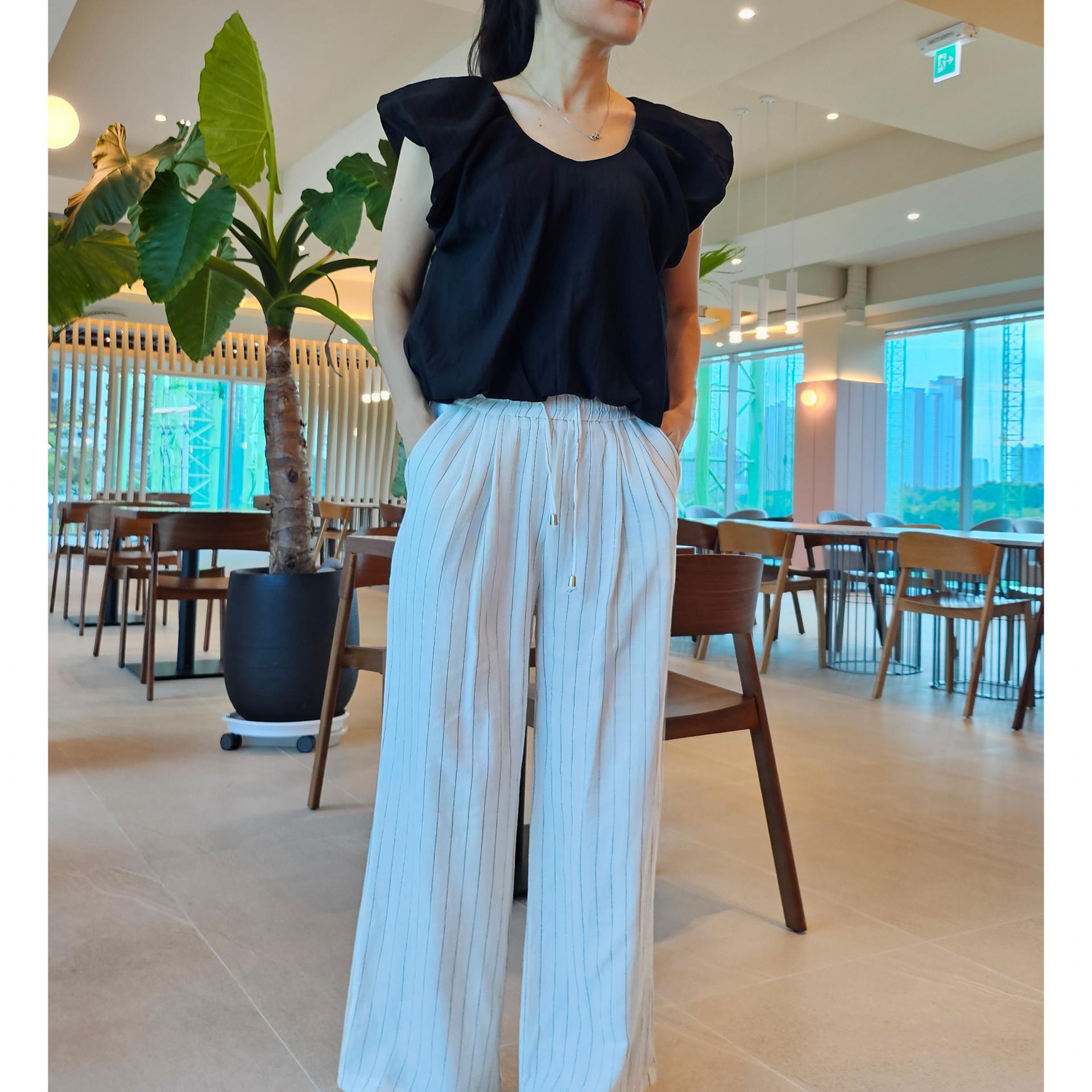 제나 린넨 스트라이프 와이드 밴딩 팬츠