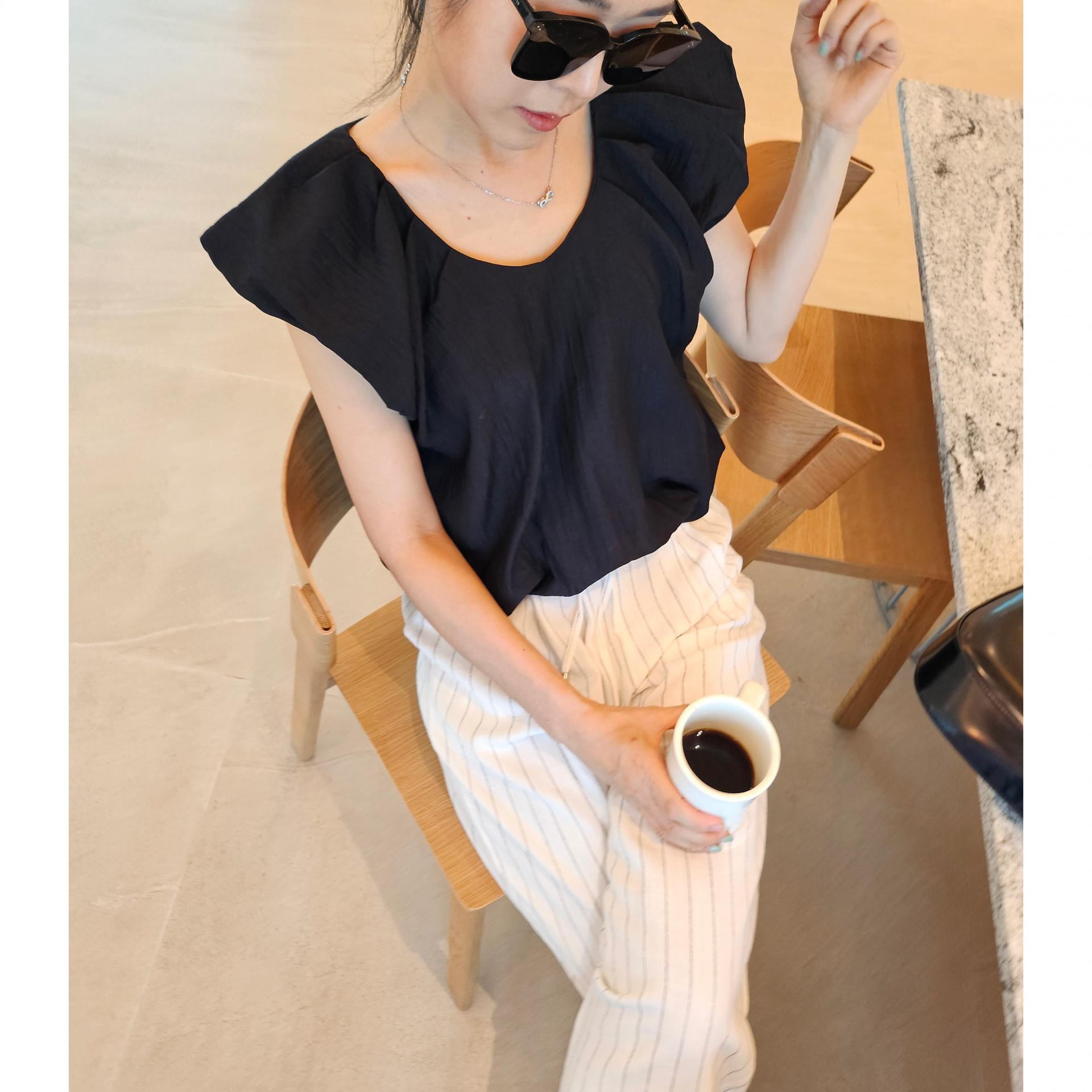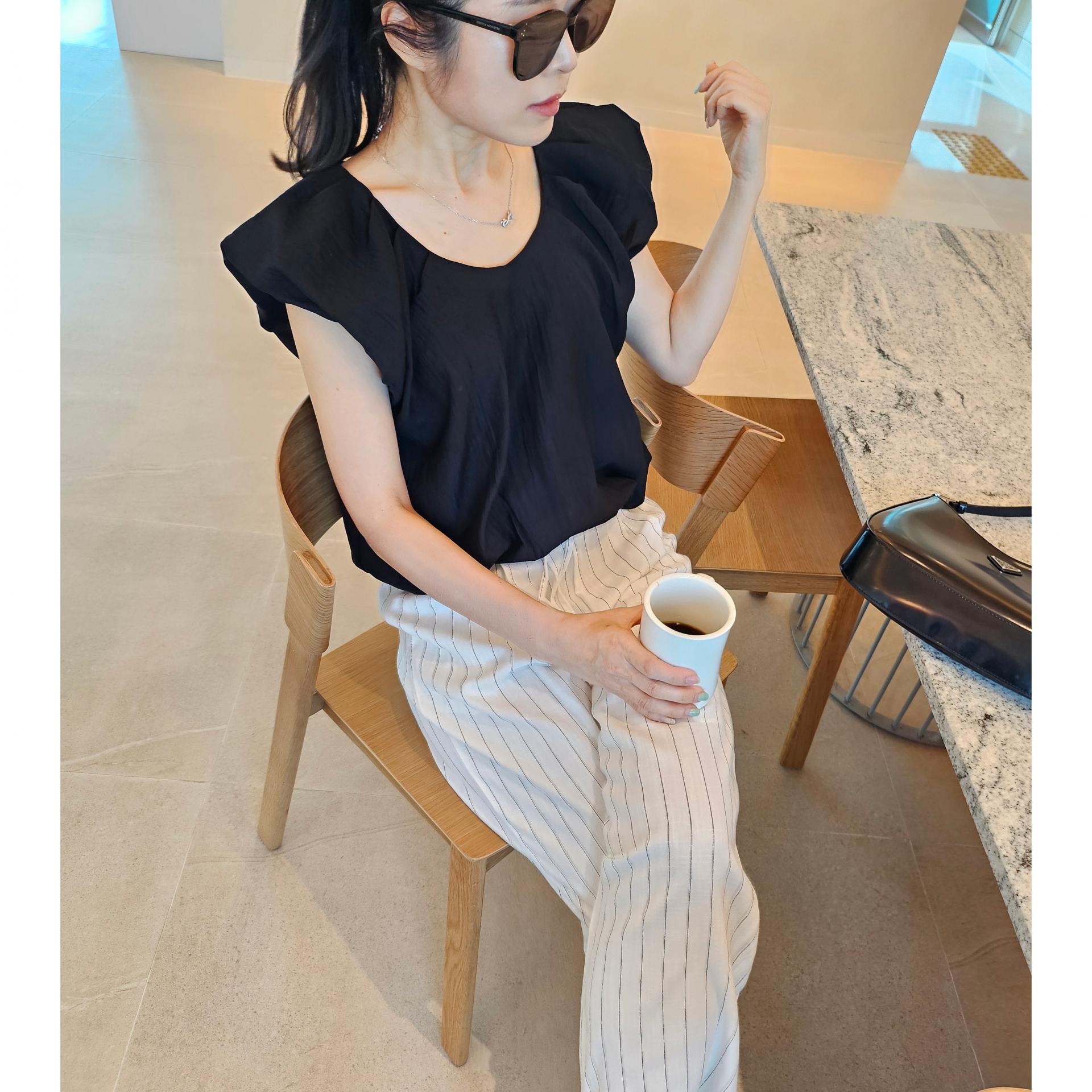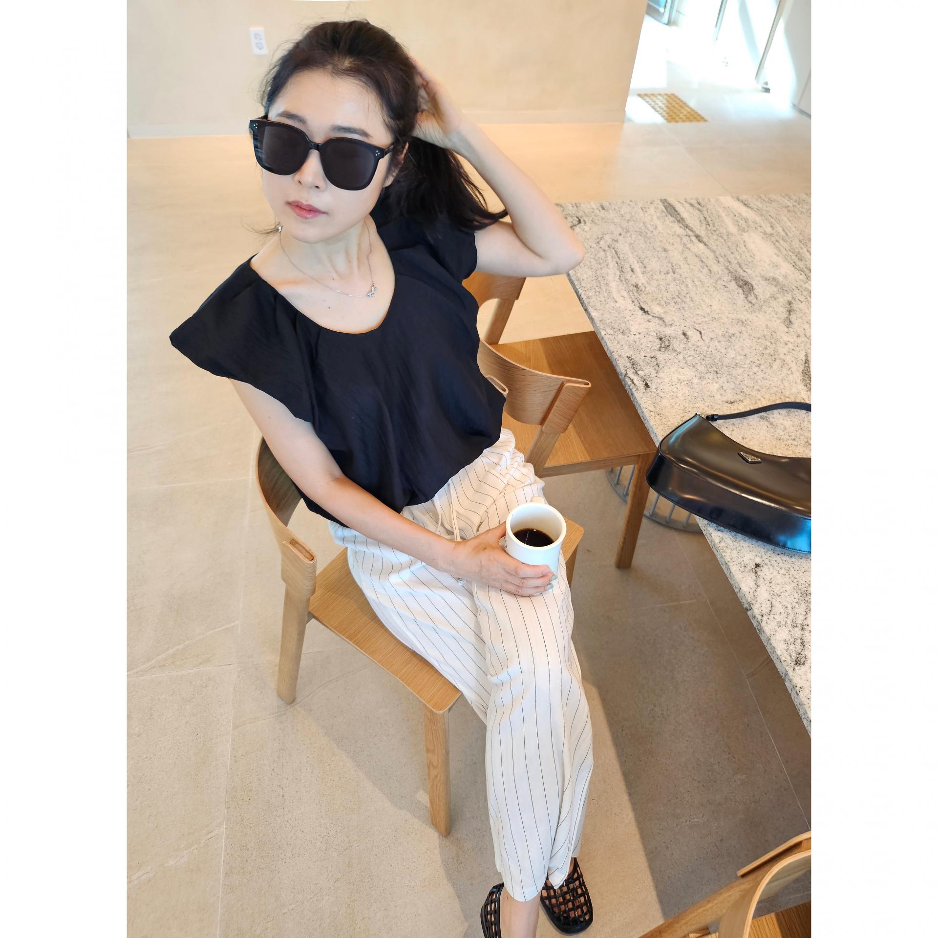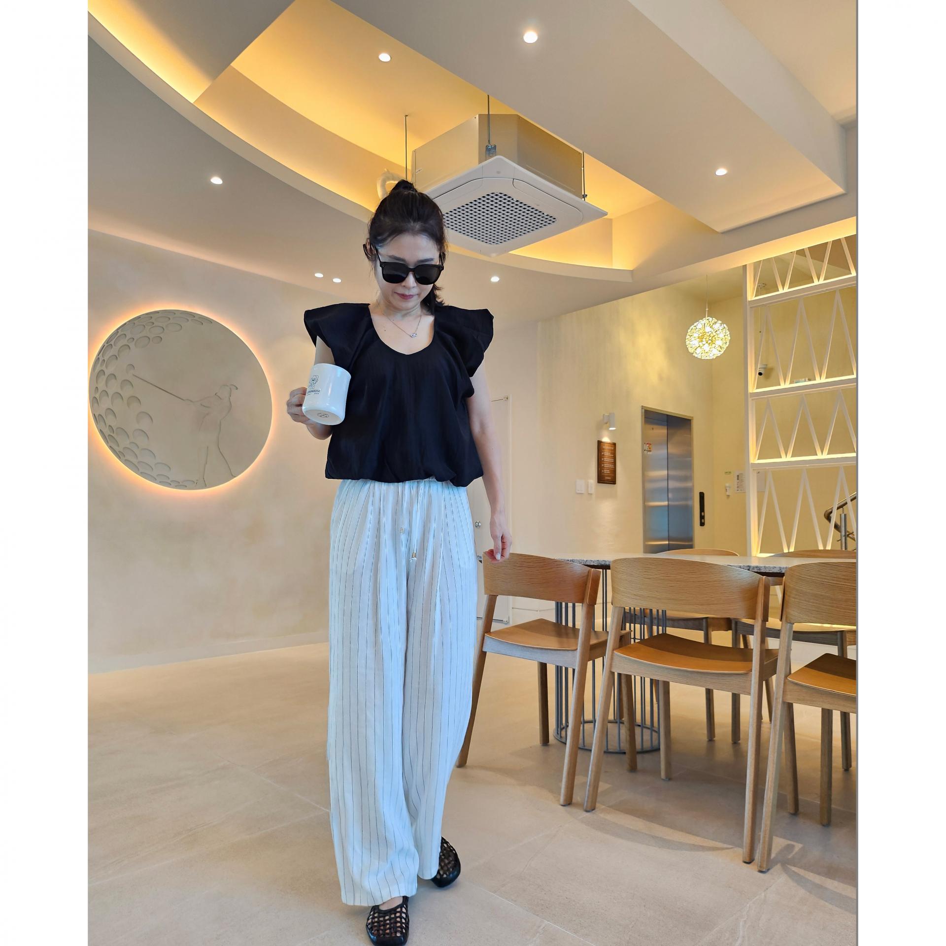 제나 린넨 스트라이프 와이드 밴딩 팬츠