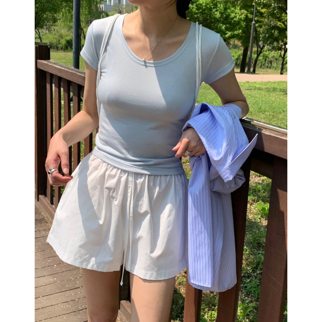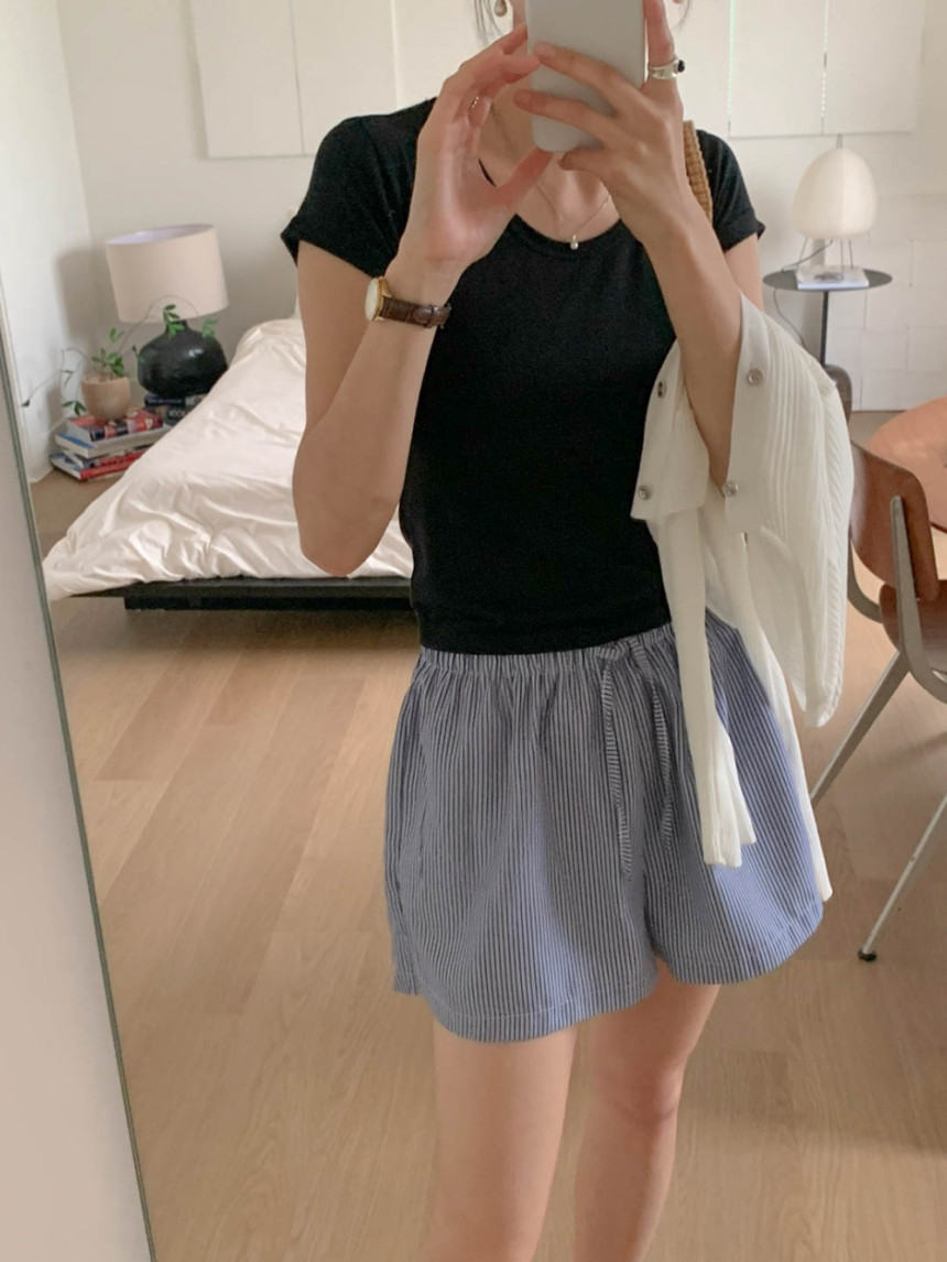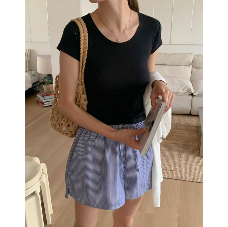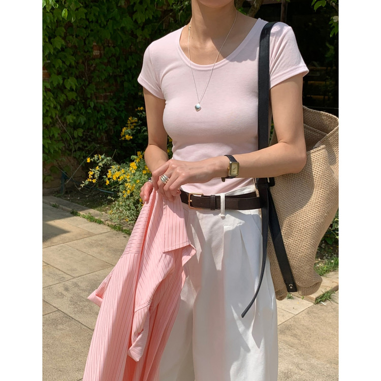 모스 반팔 슬림 스판 티셔츠