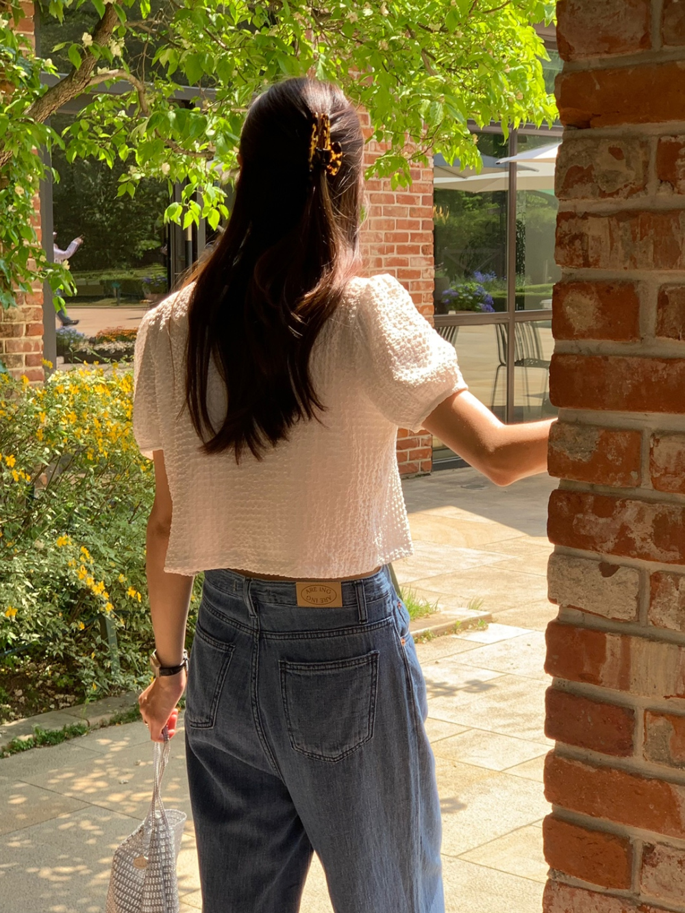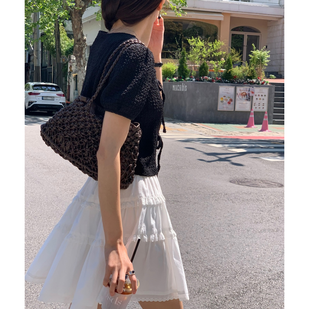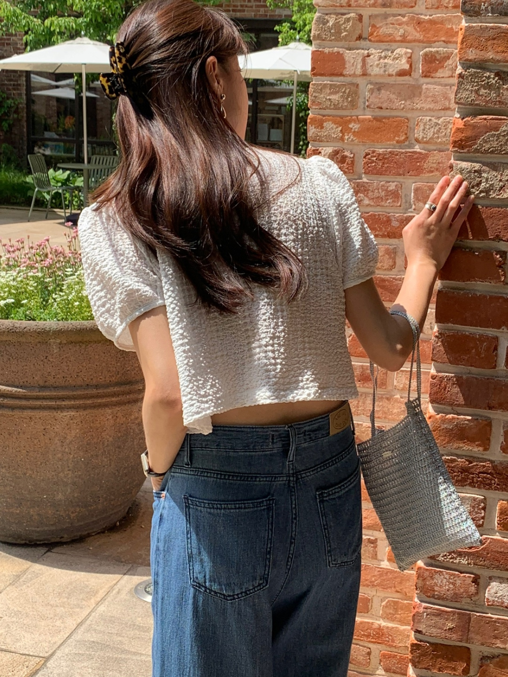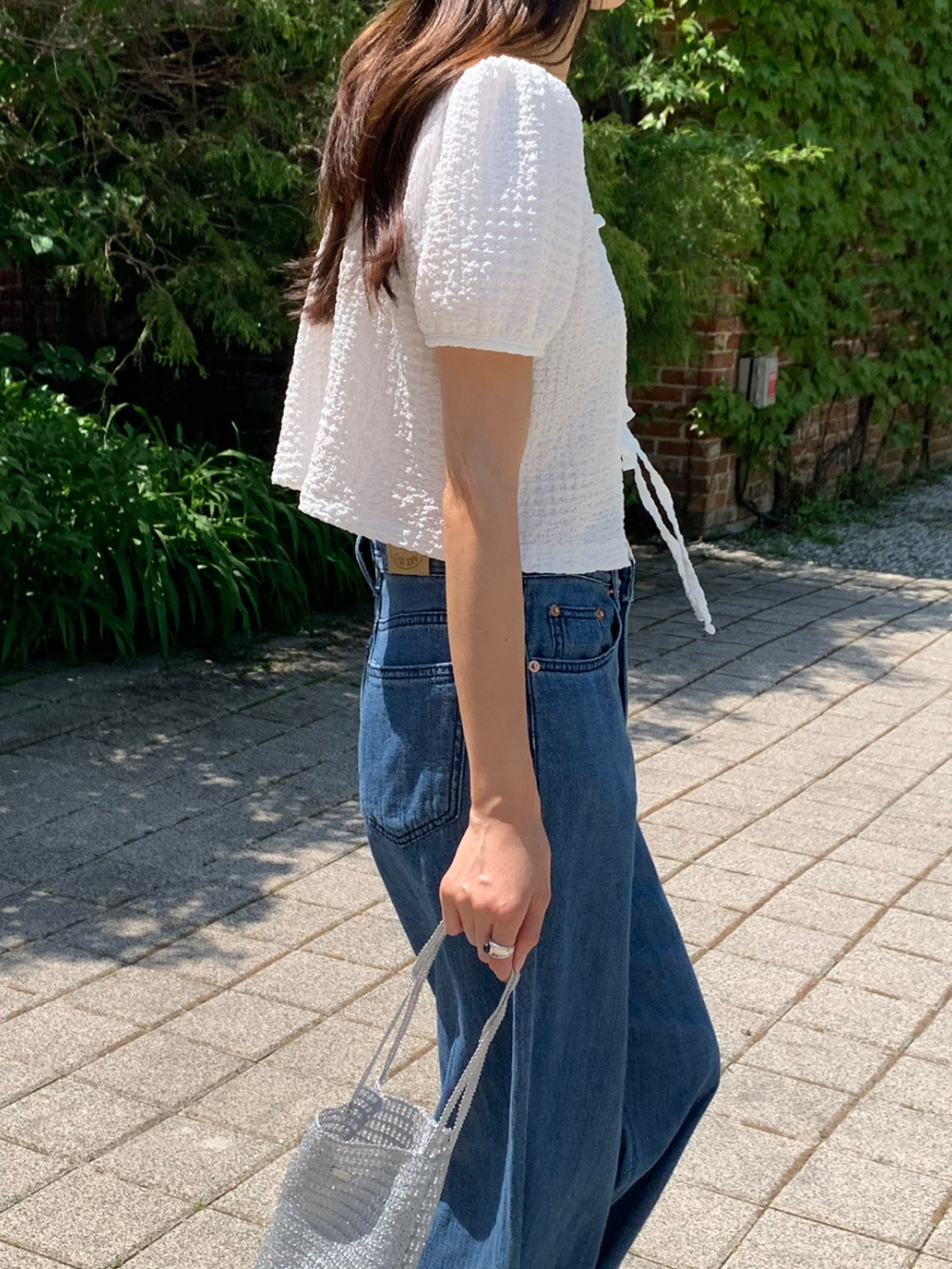 리본 볼드 엠보 블라우스 퍼프 리본 볼레로