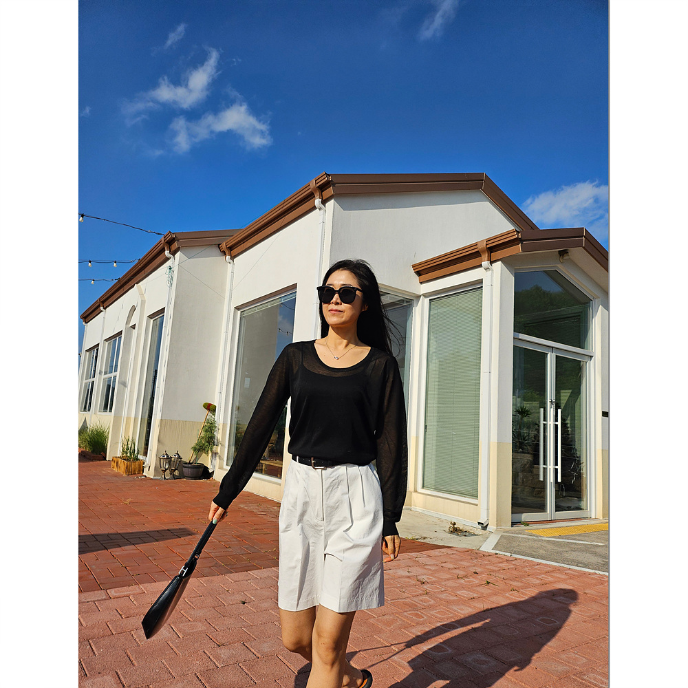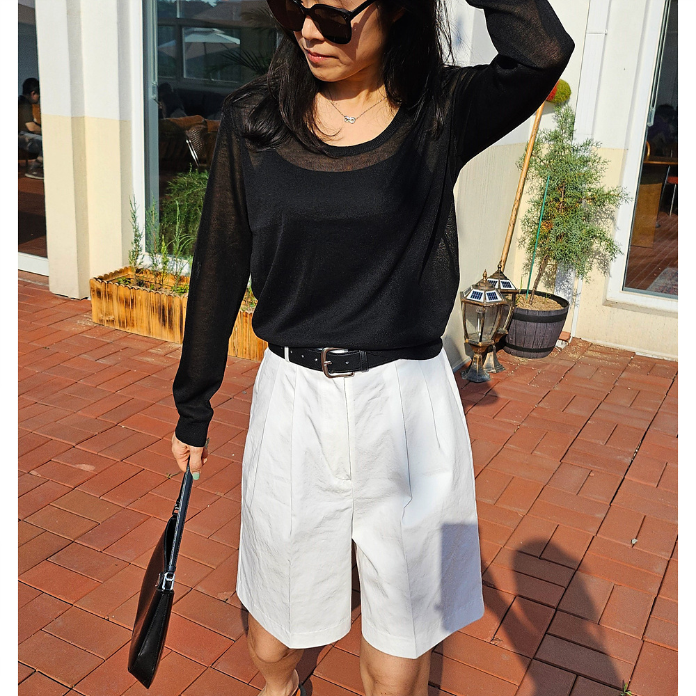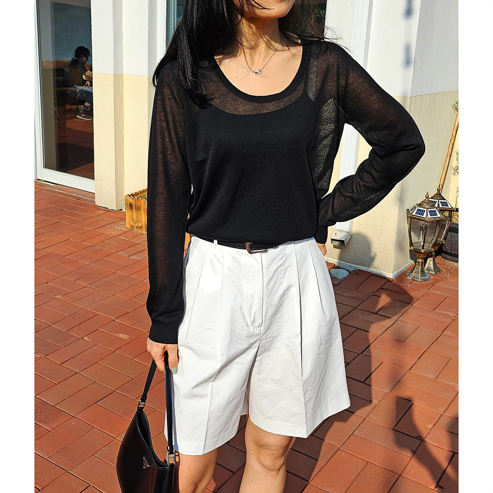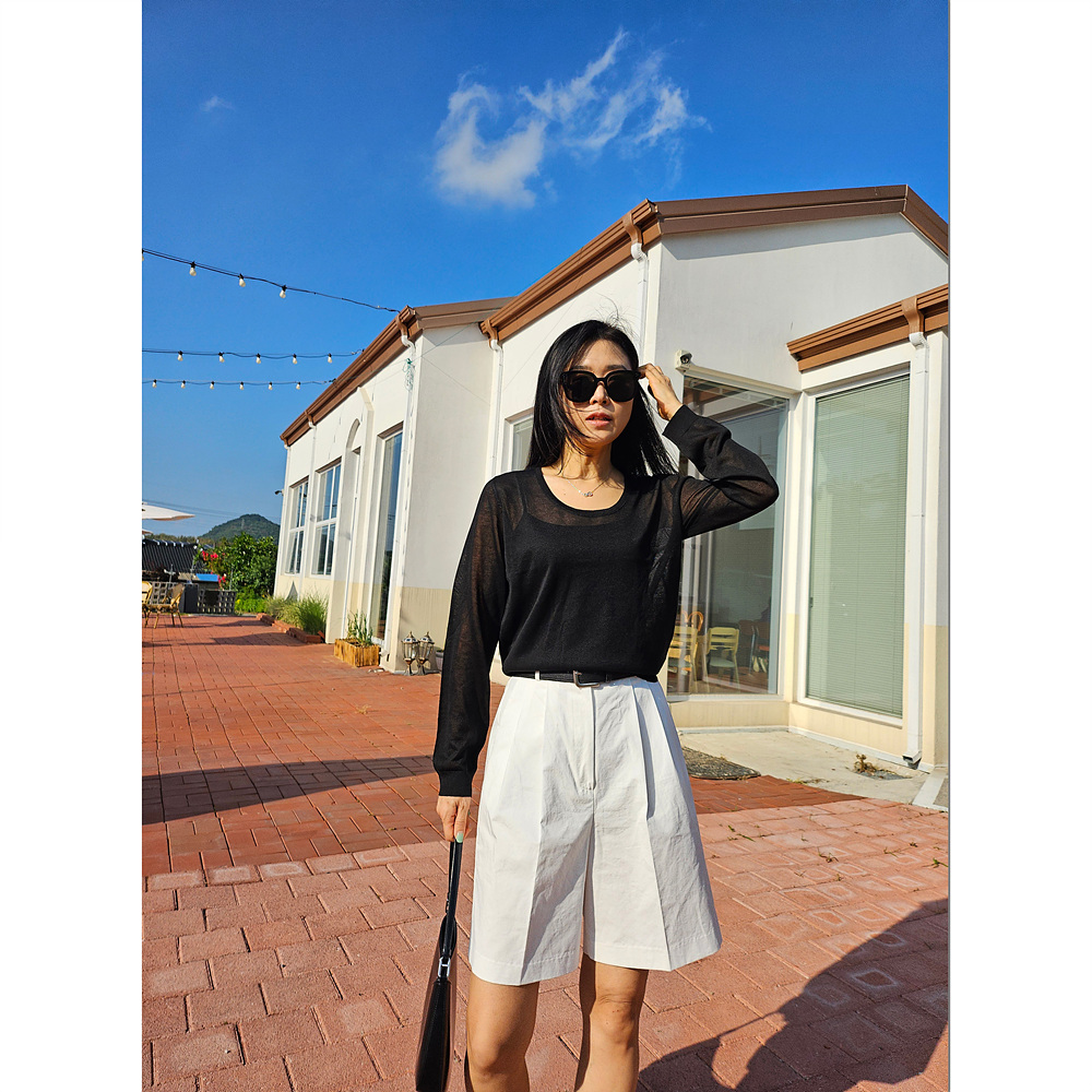 썸머 시스루 유넥 긴팔 니트