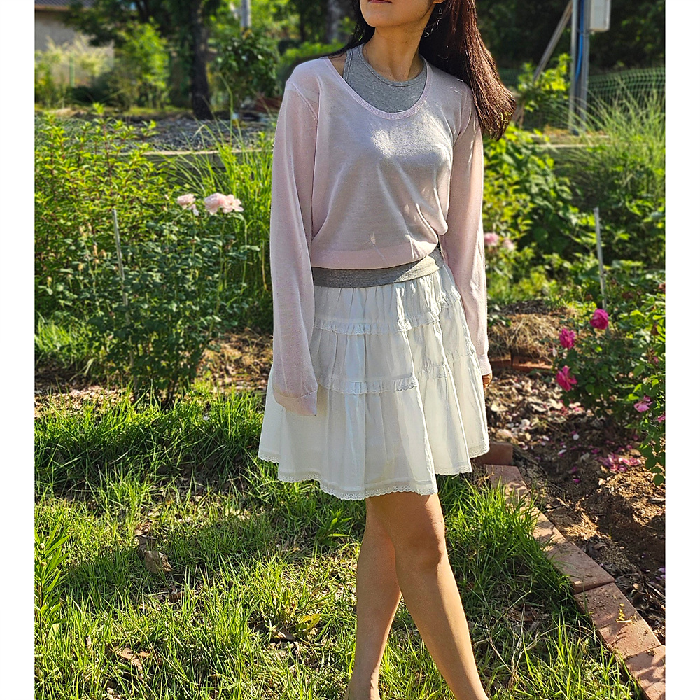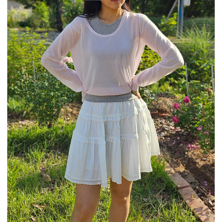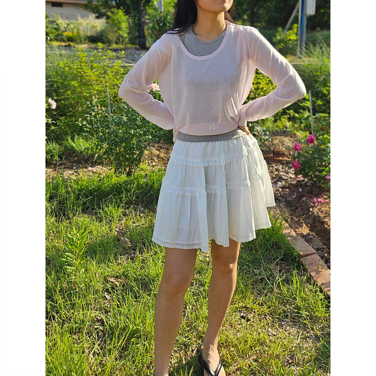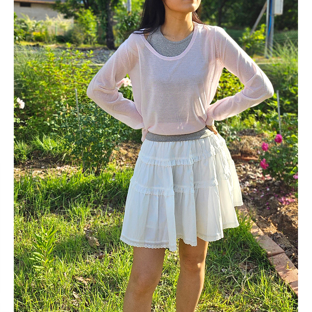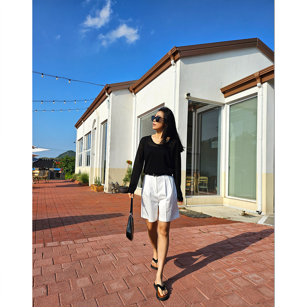 썸머 시스루 유넥 긴팔 니트