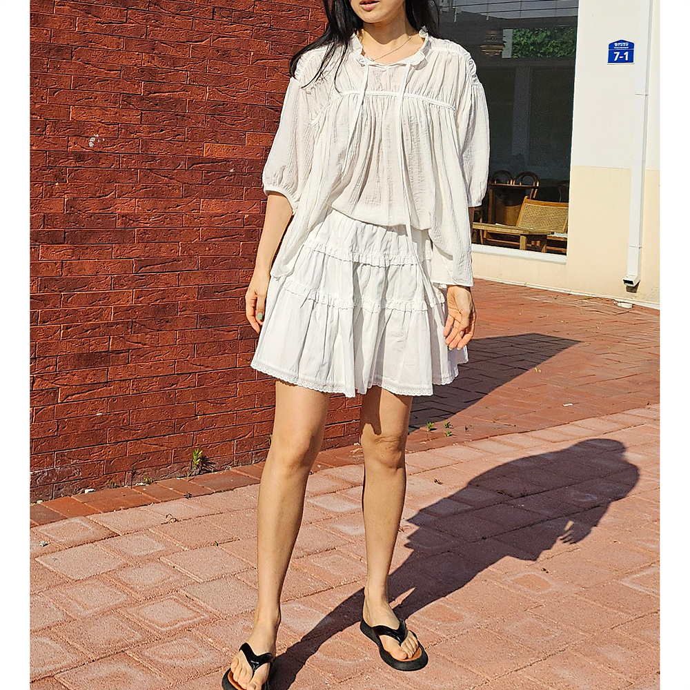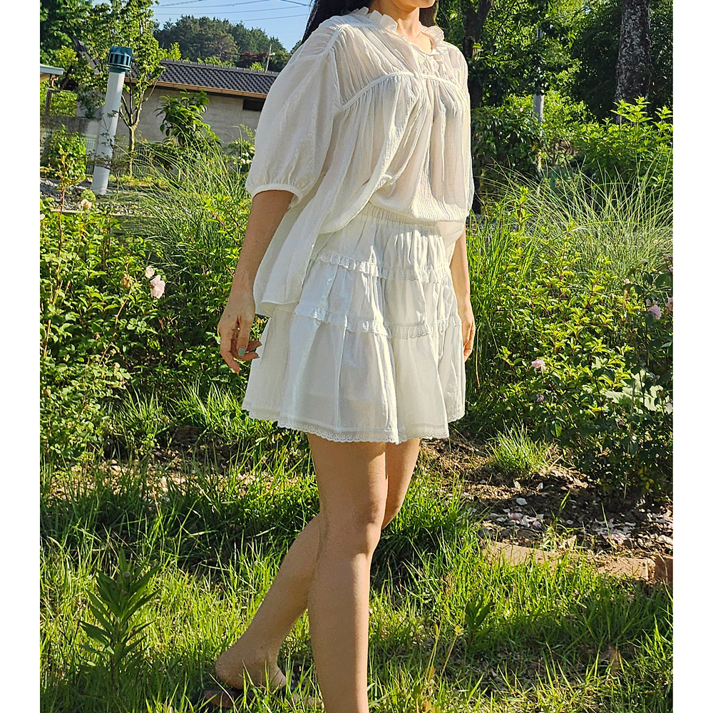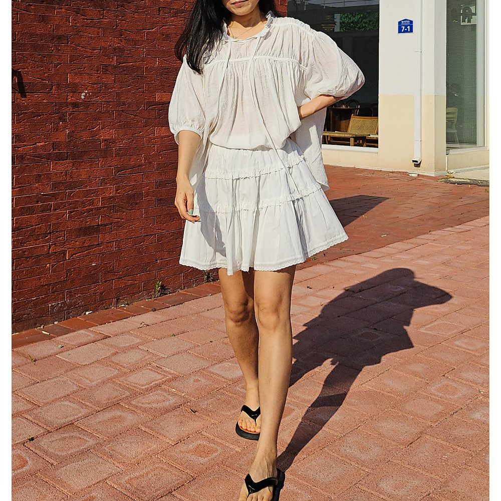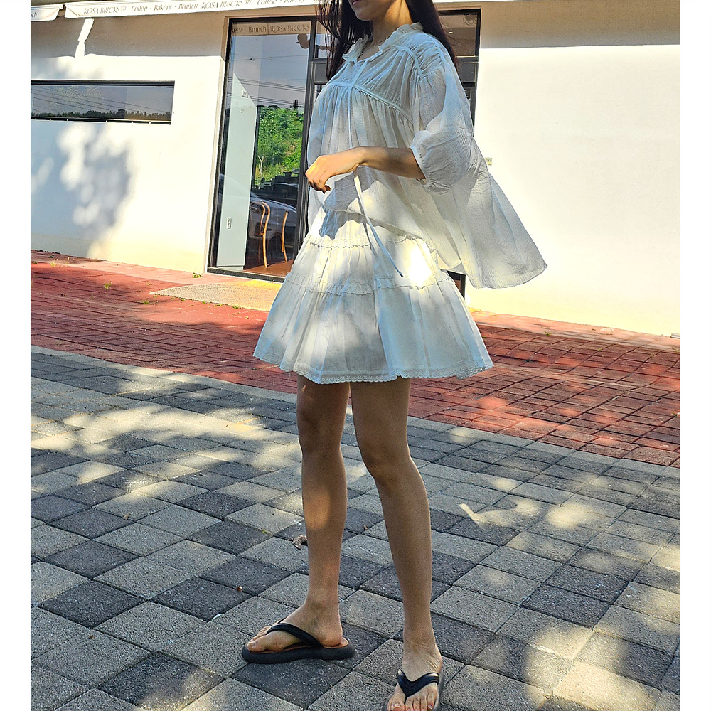 캉캉 볼륨 레이스 프릴 코튼 미니 스커트