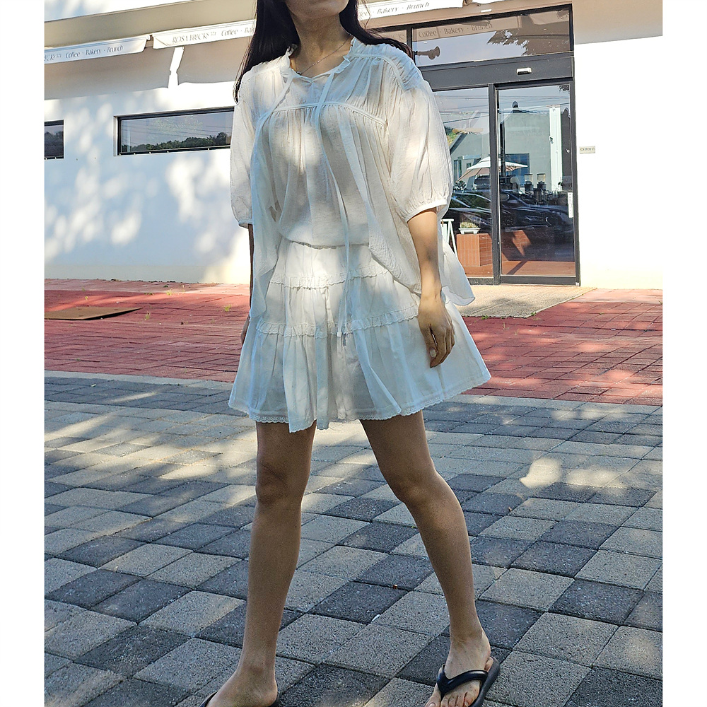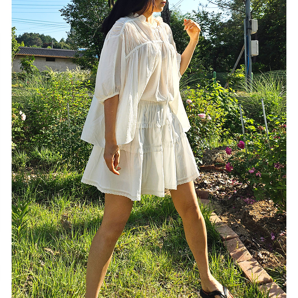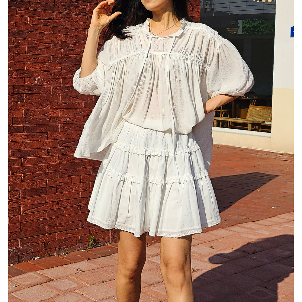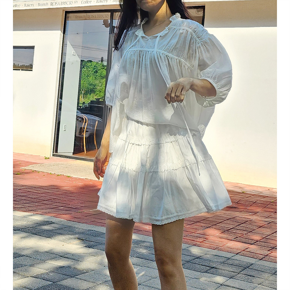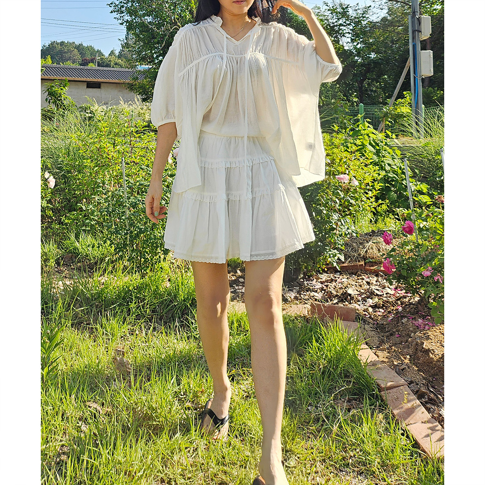 캉캉 볼륨 레이스 프릴 코튼 미니 스커트