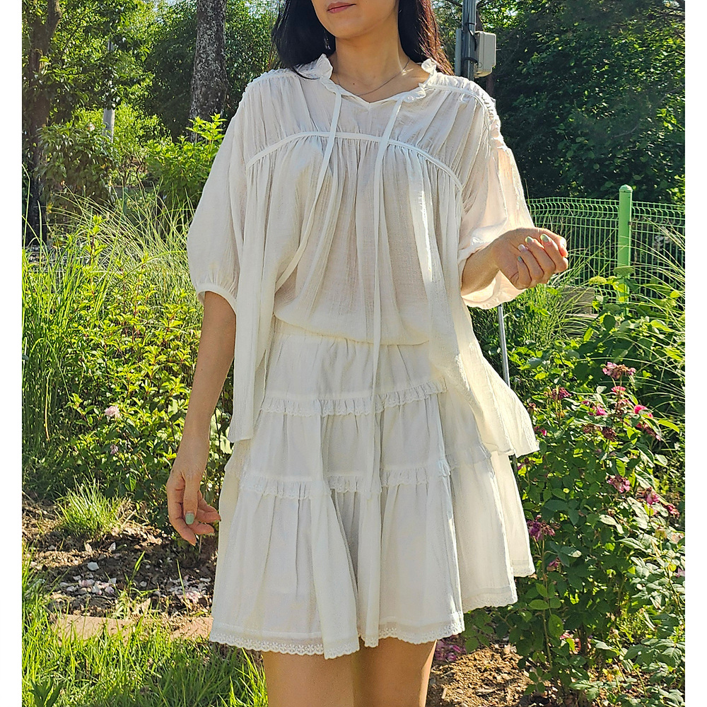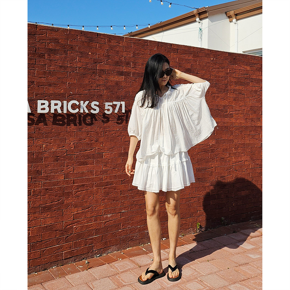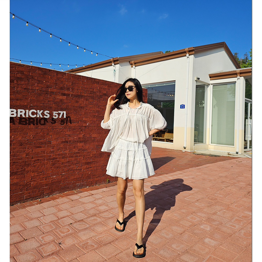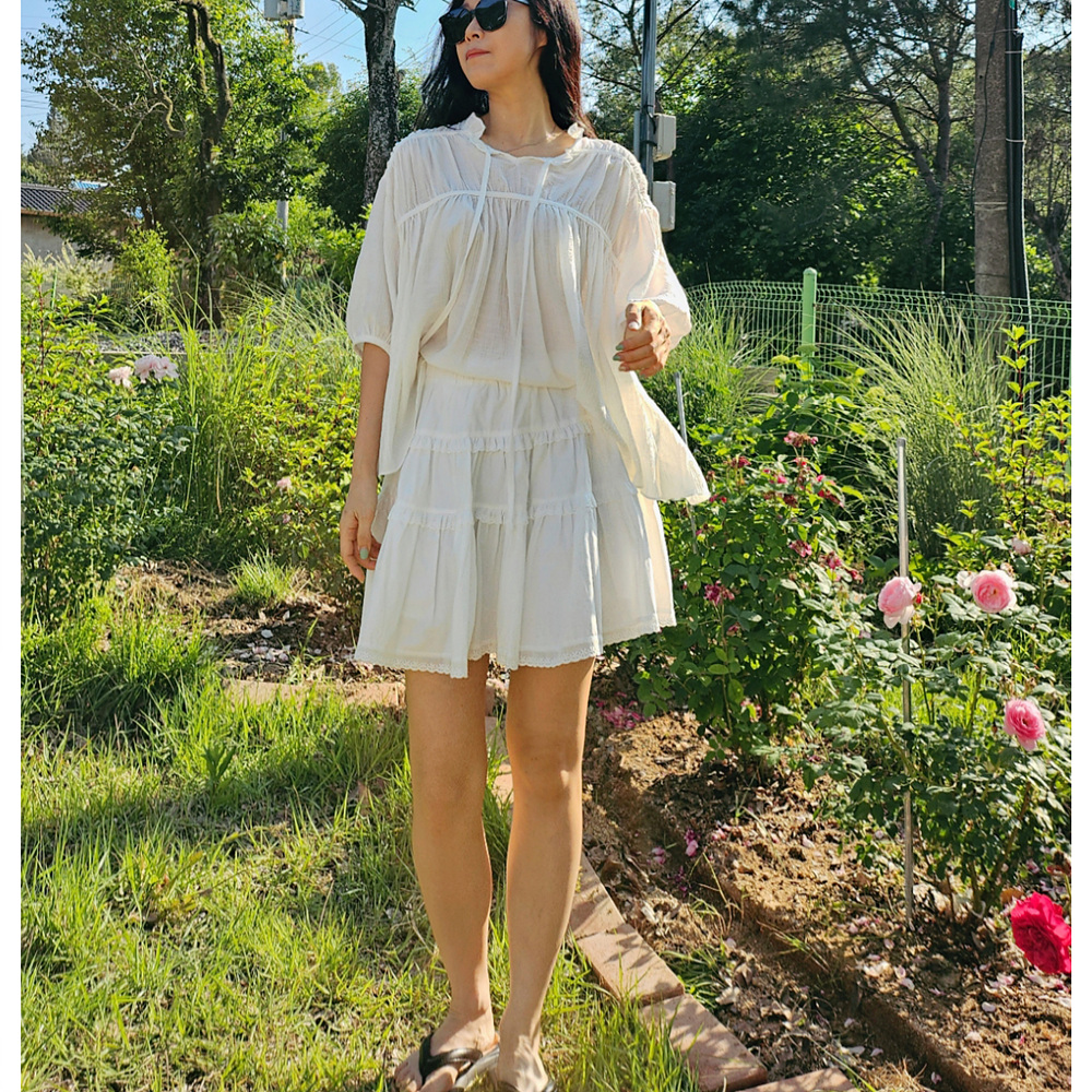 캉캉 볼륨 레이스 프릴 코튼 미니 스커트