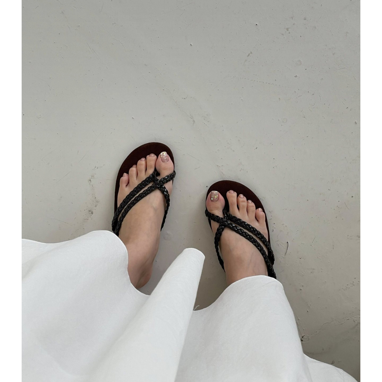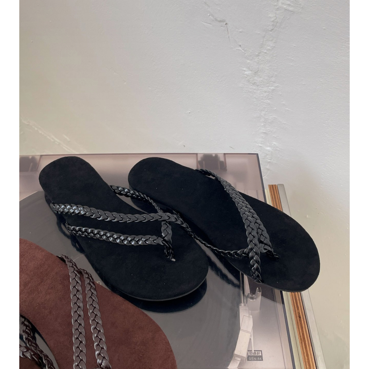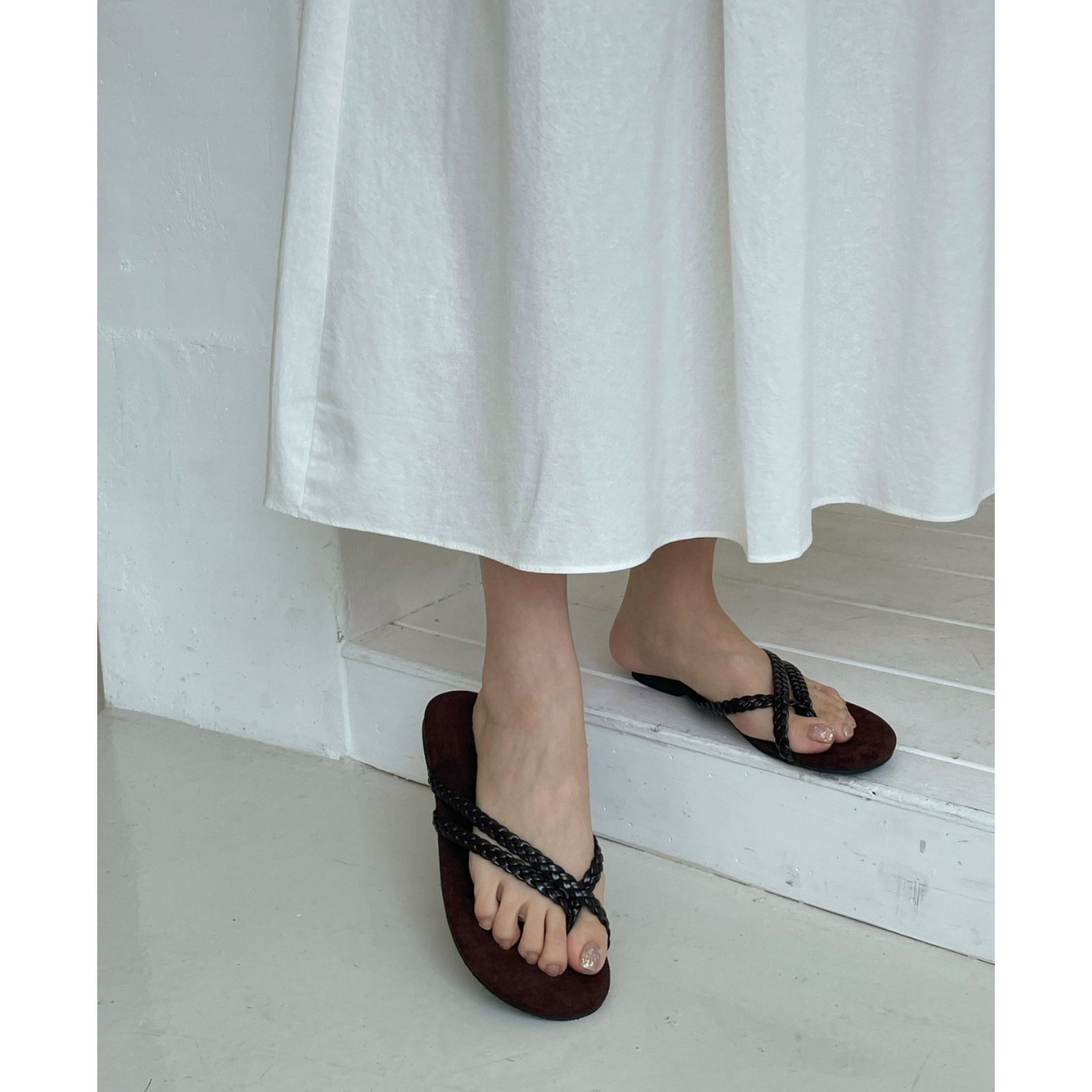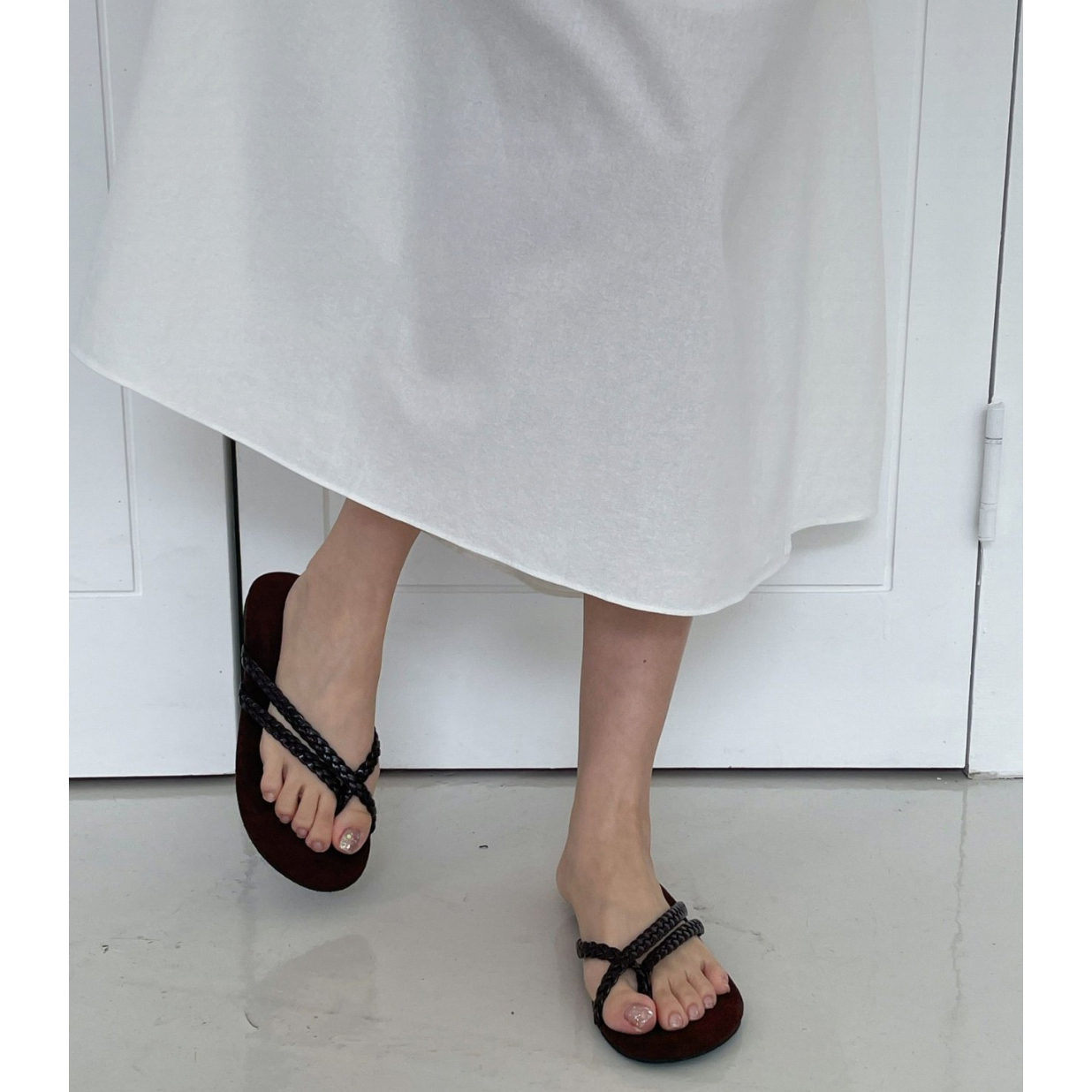 위빙 꼬임 매듭 사선 두줄 스트랩 쪼리 스웨이드 슬리퍼