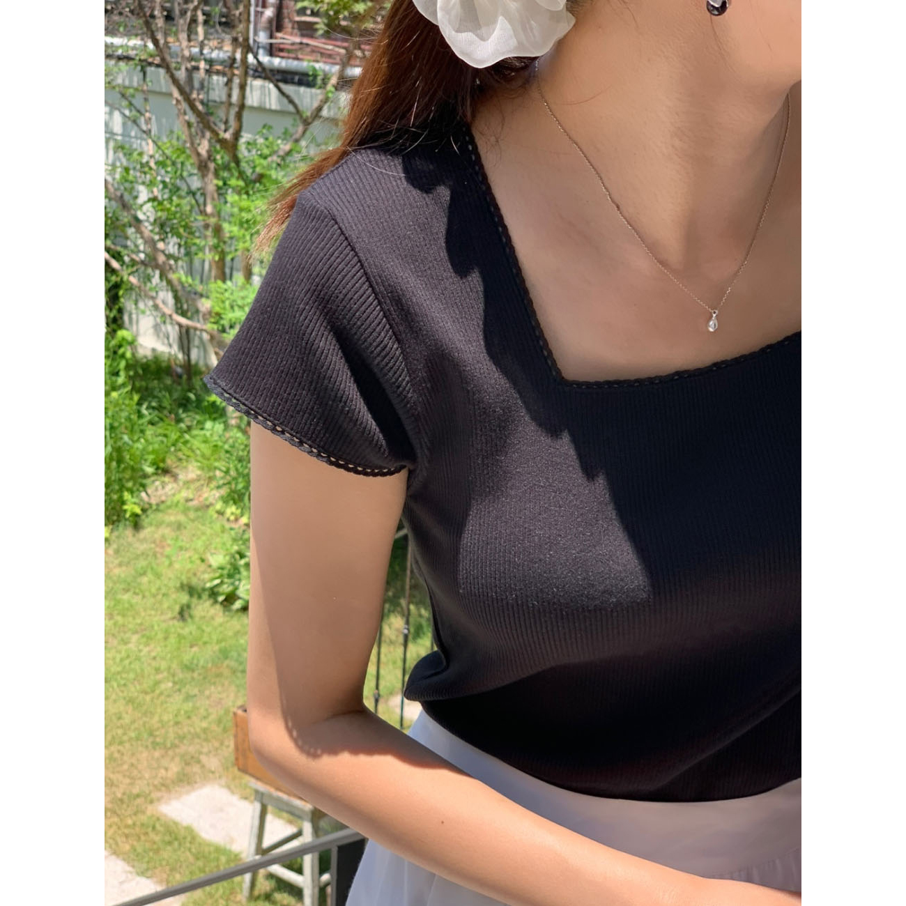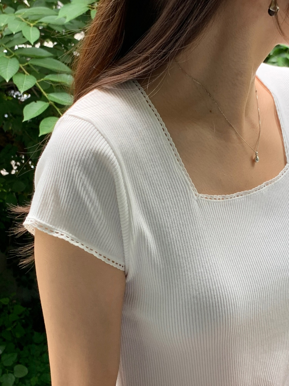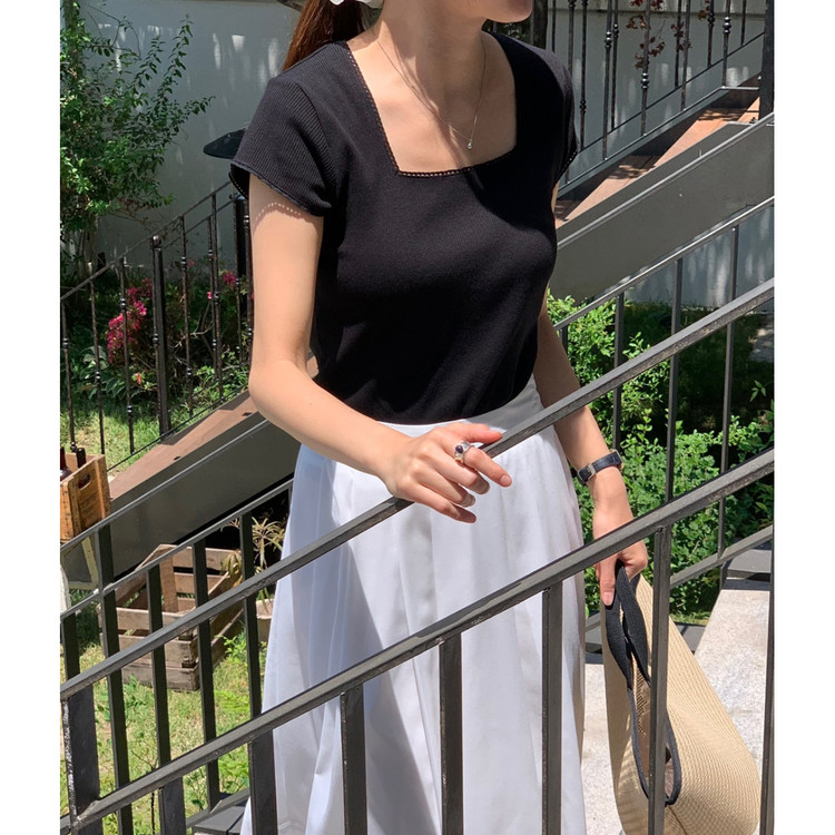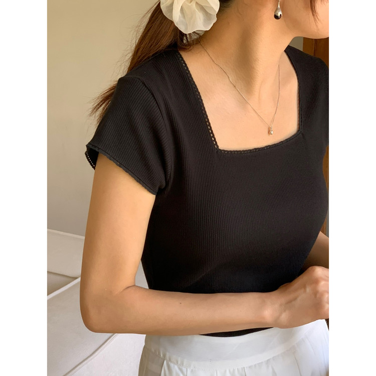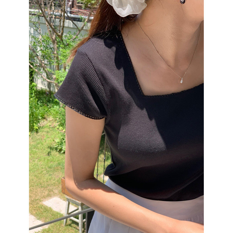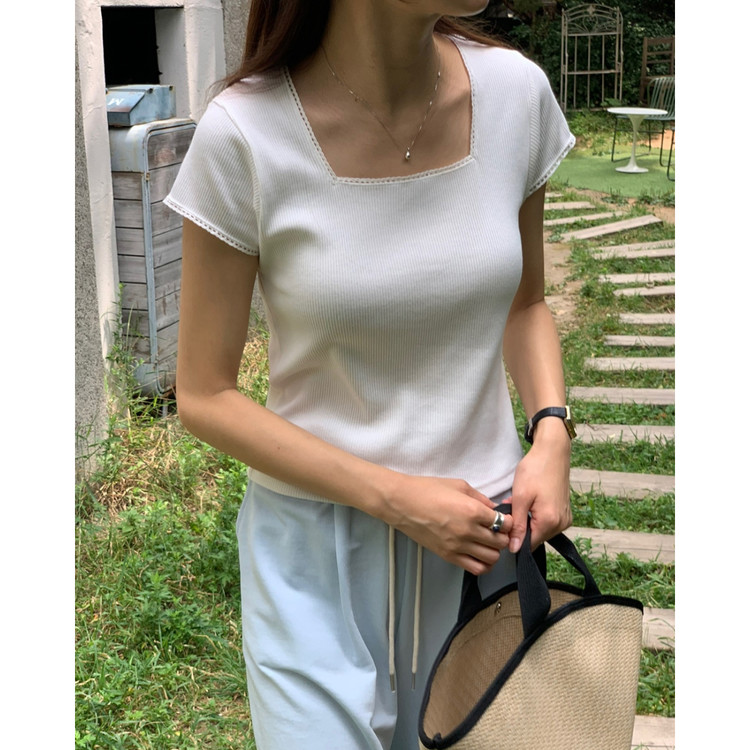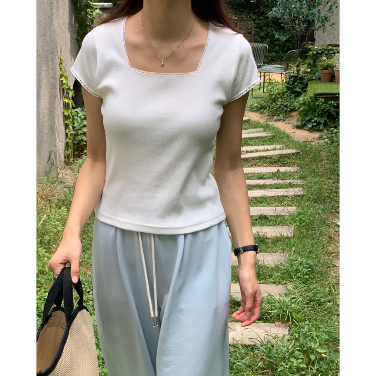 오키 레이스 트리밍 스퀘어넥 반팔 슬림 티