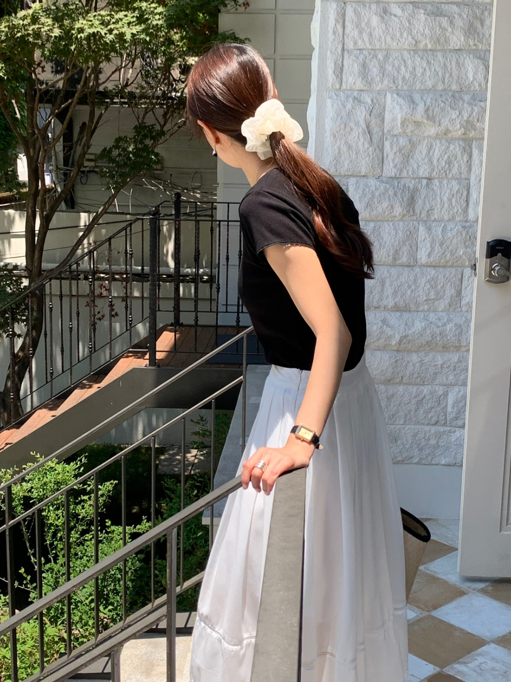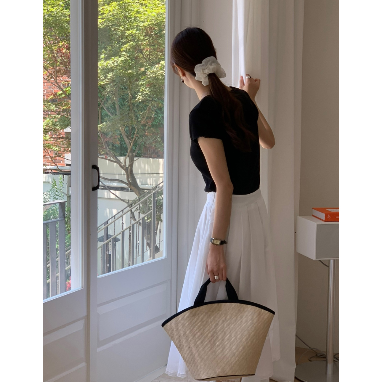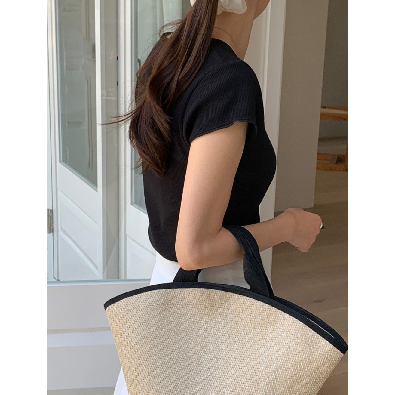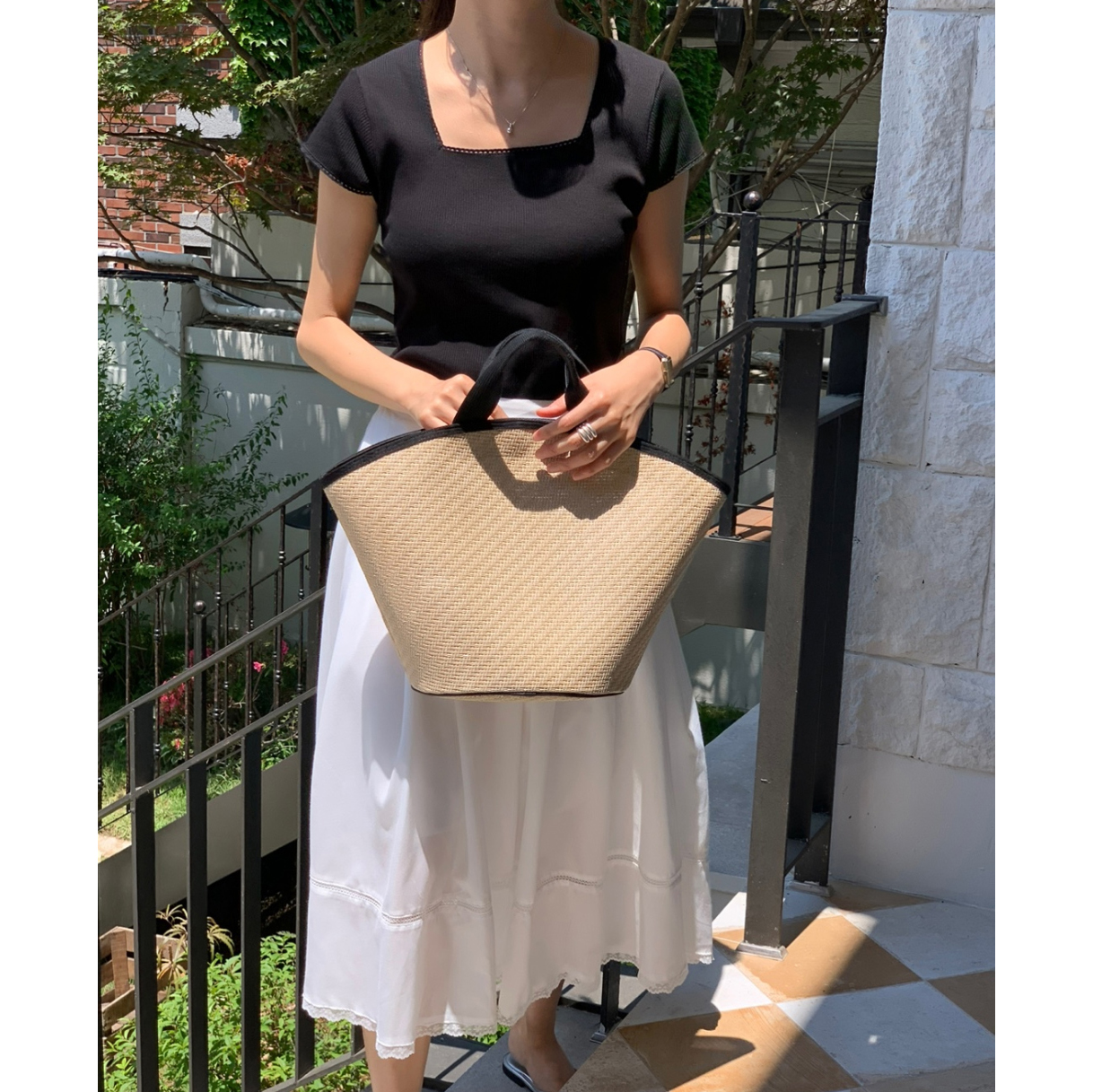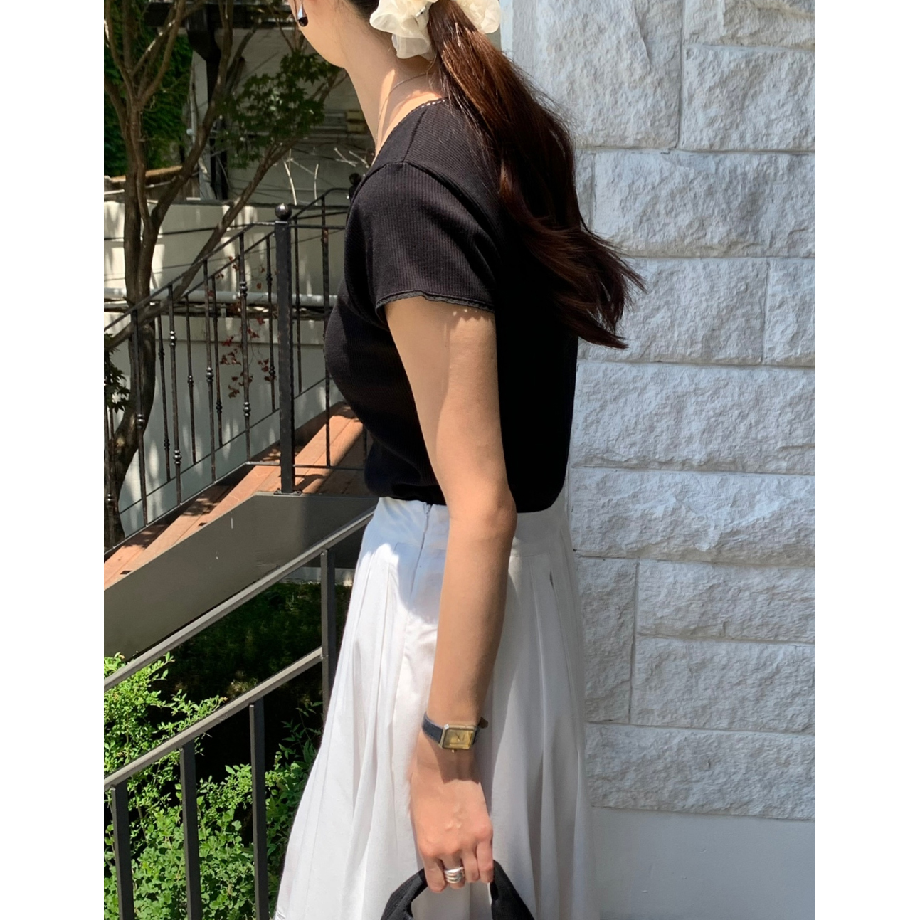 오키 레이스 트리밍 스퀘어넥 반팔 슬림 티